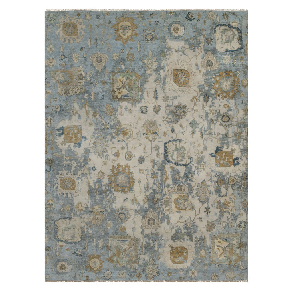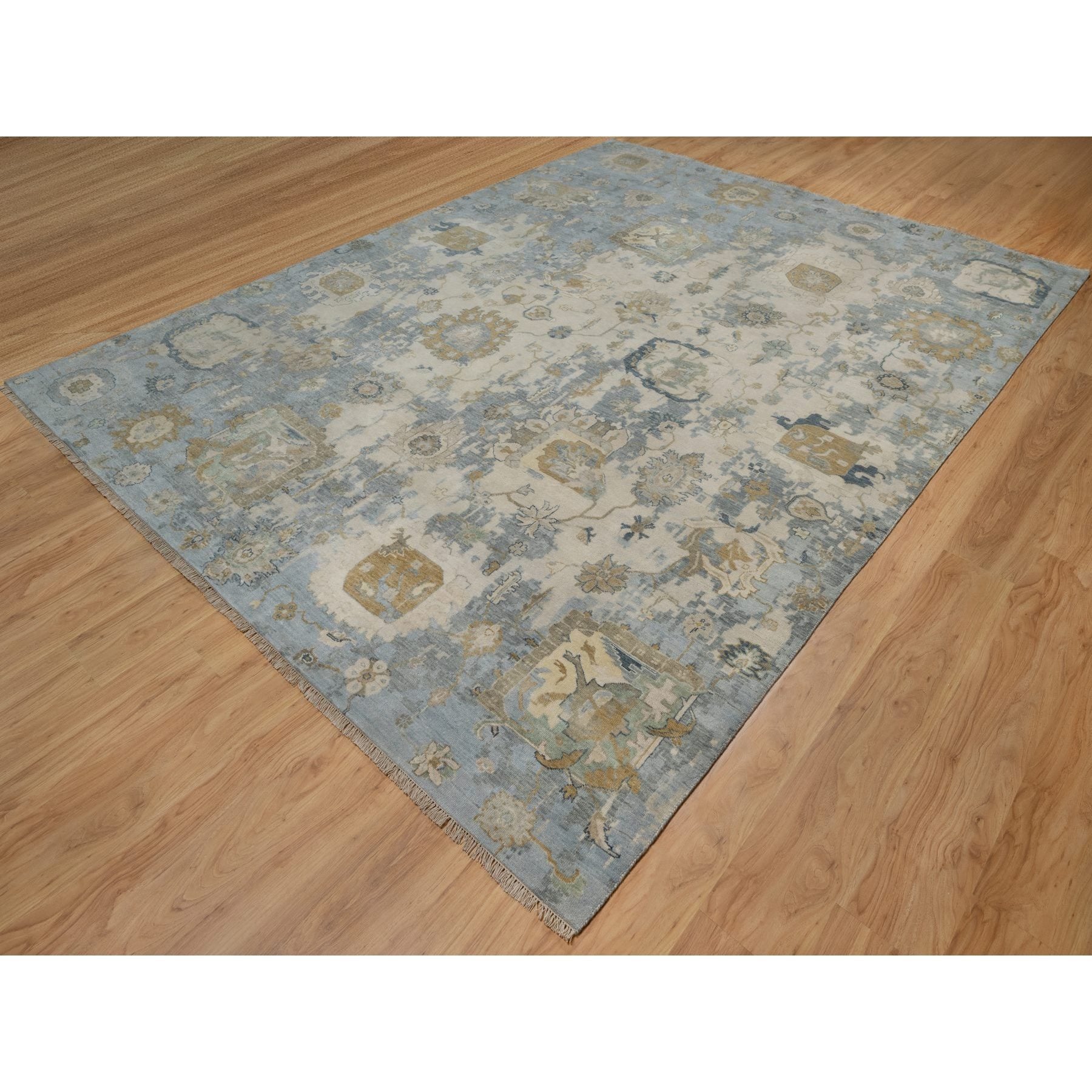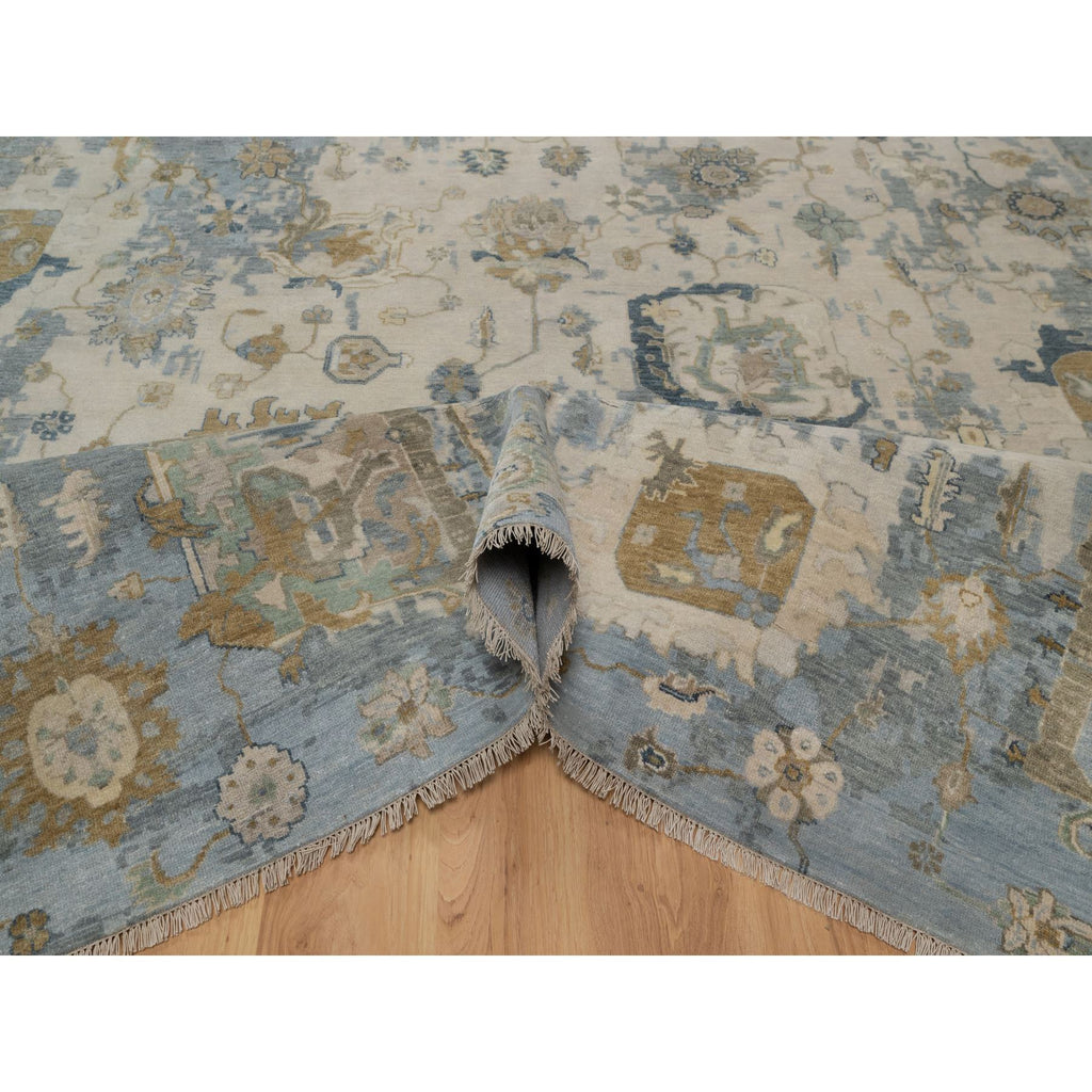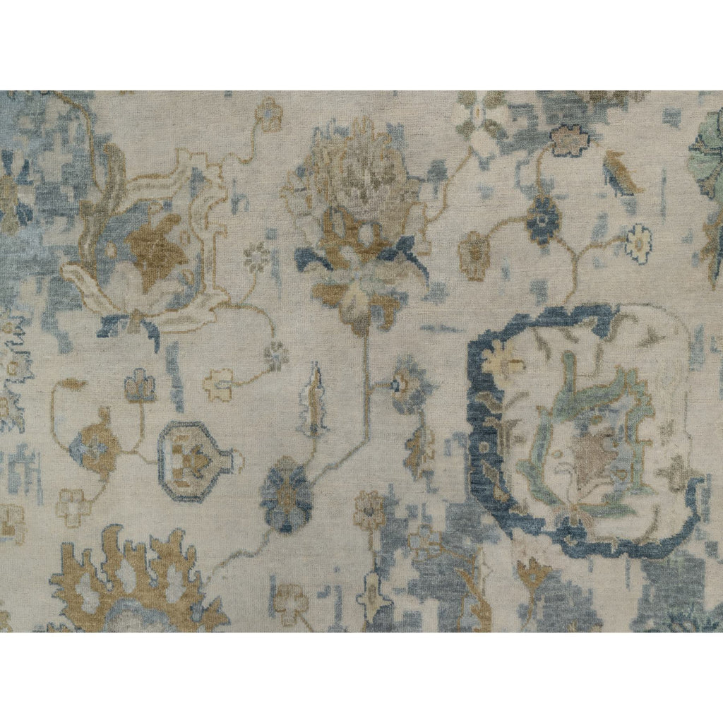9'2"x12' Swan White And Blue, Broken Pattern With Oushak Design, 100% Wool, Hand Knotted, Borderless, Oriental Rug FWR548544
