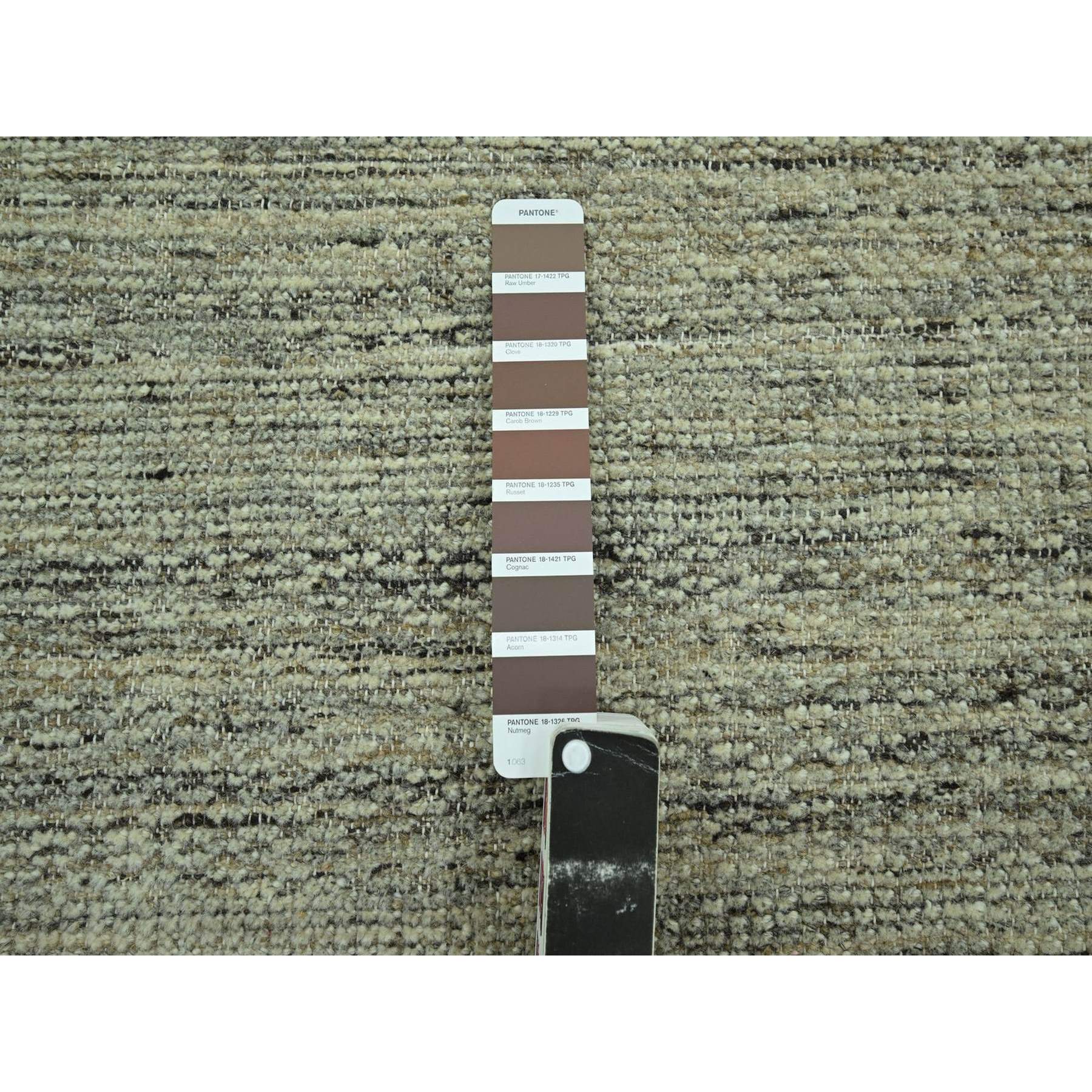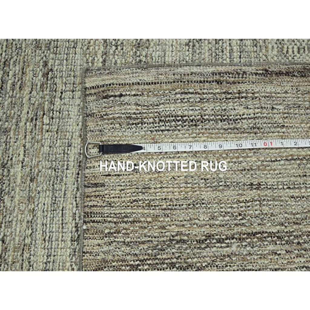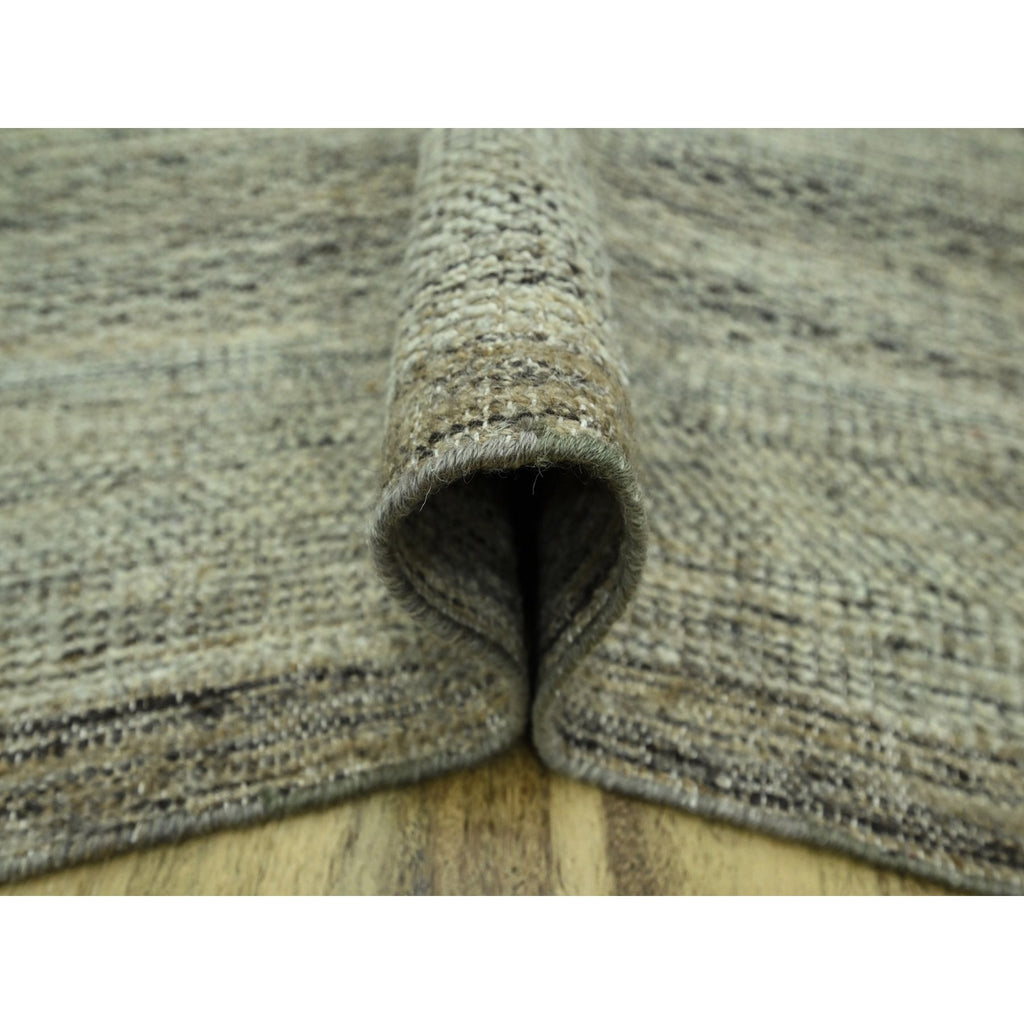 9'2"x12' Umber Brown With Beige, Hand Knotted, Oxidized And Distressed Grass Design With Exposed Warps, Natural Wool, Oriental Rug FWR460212