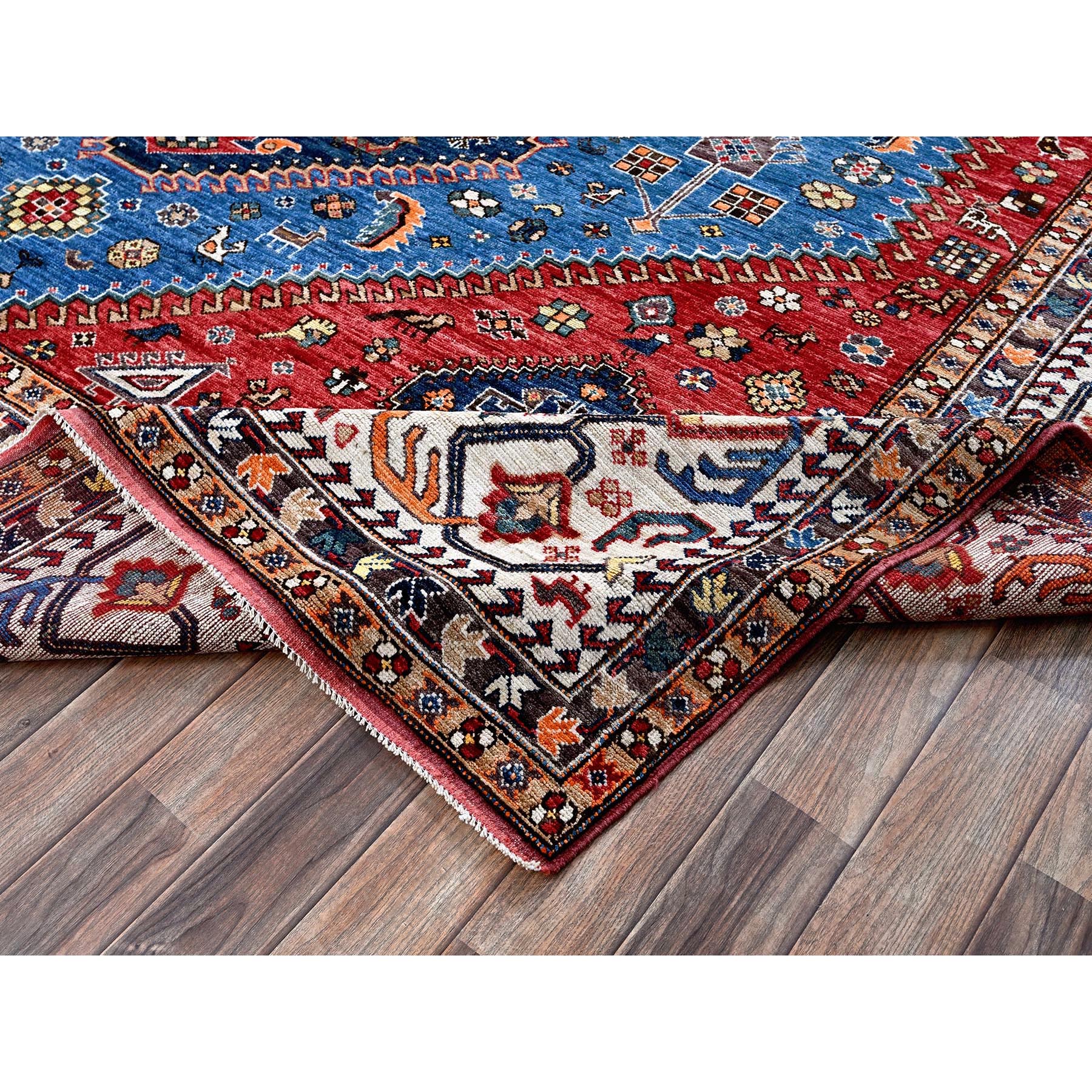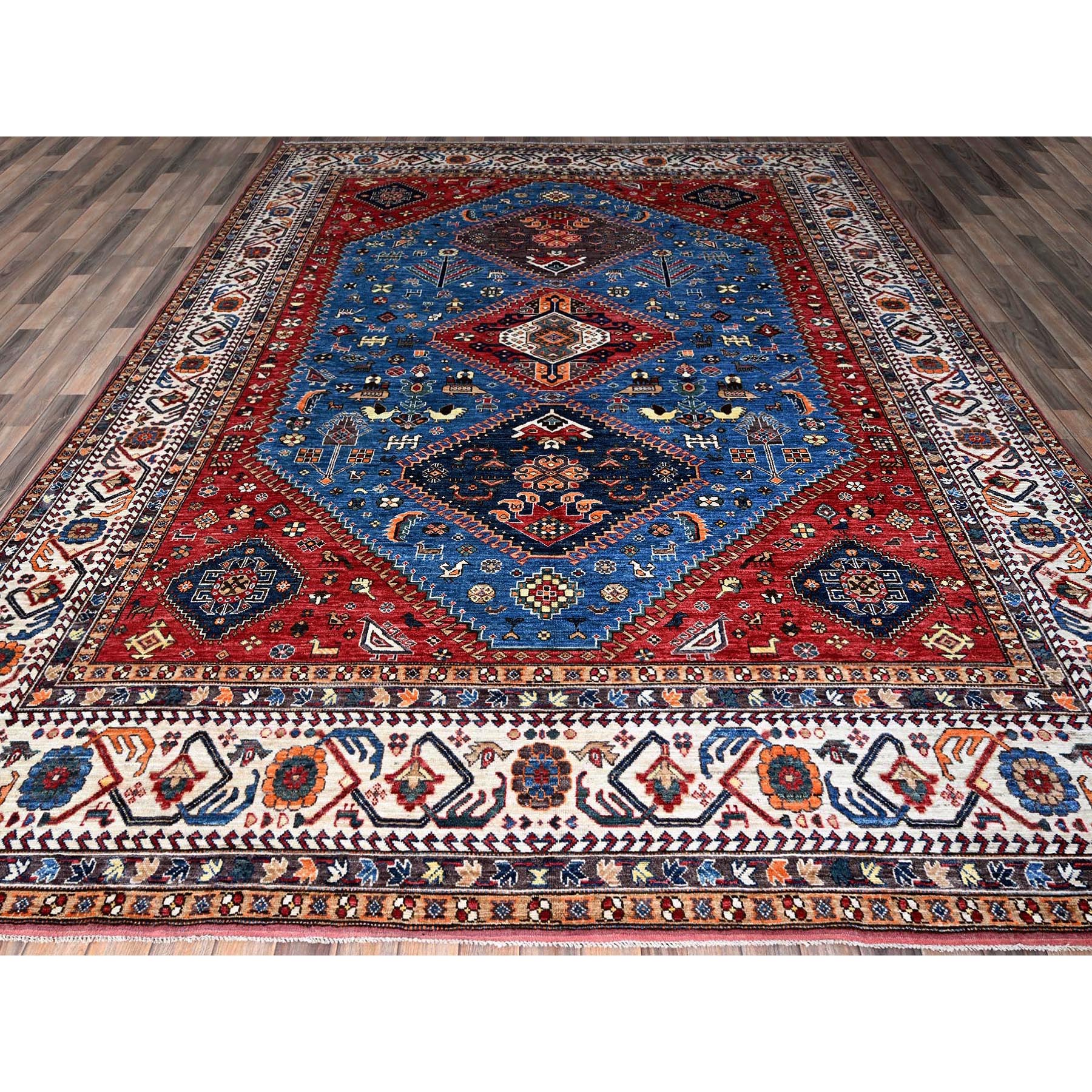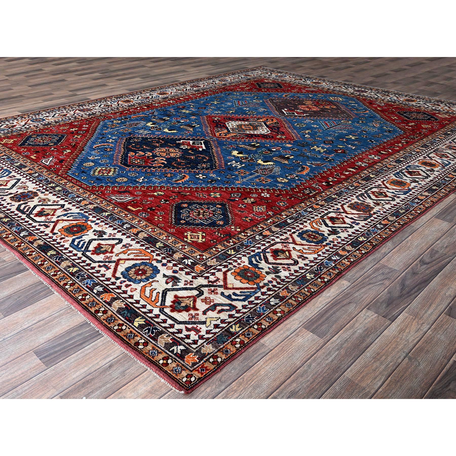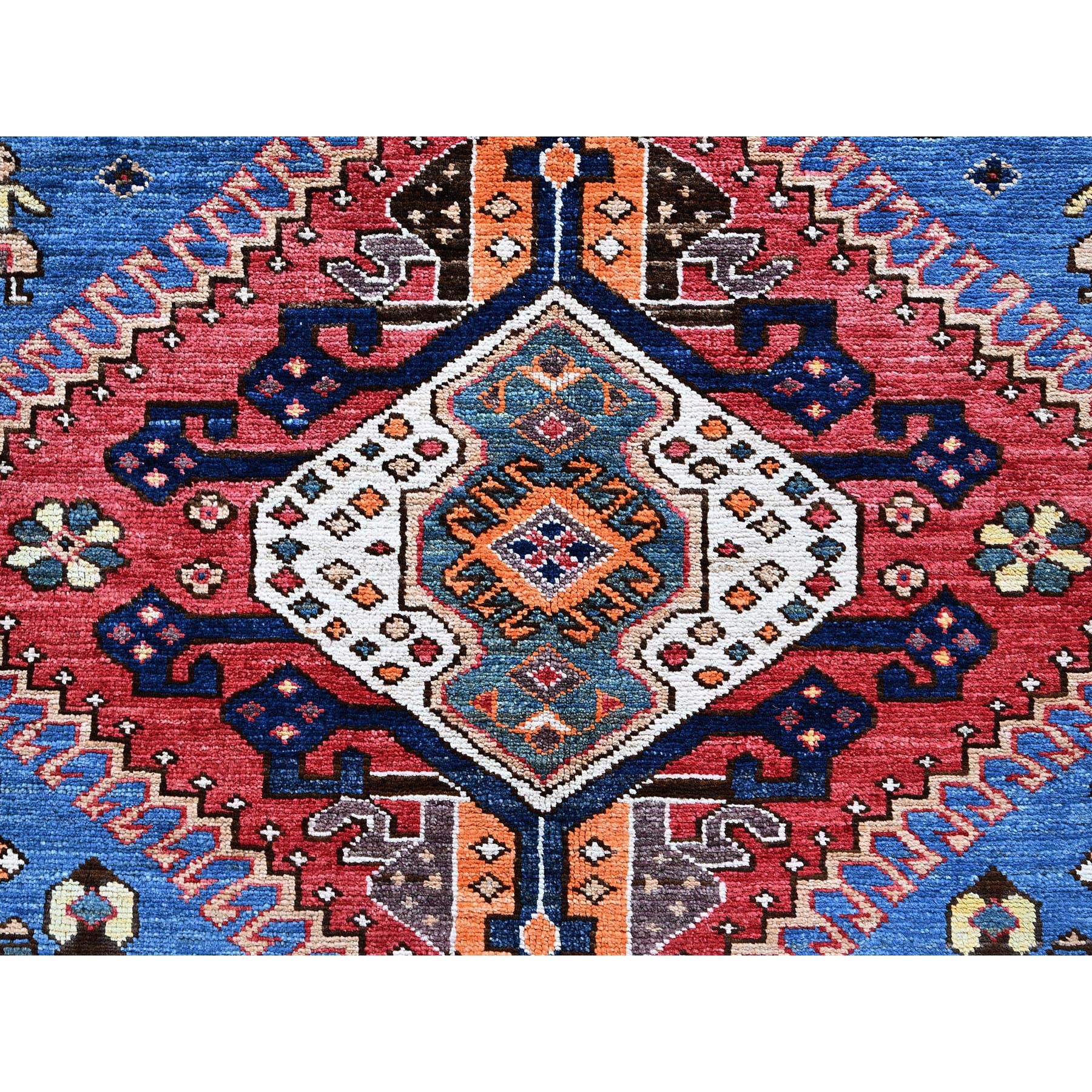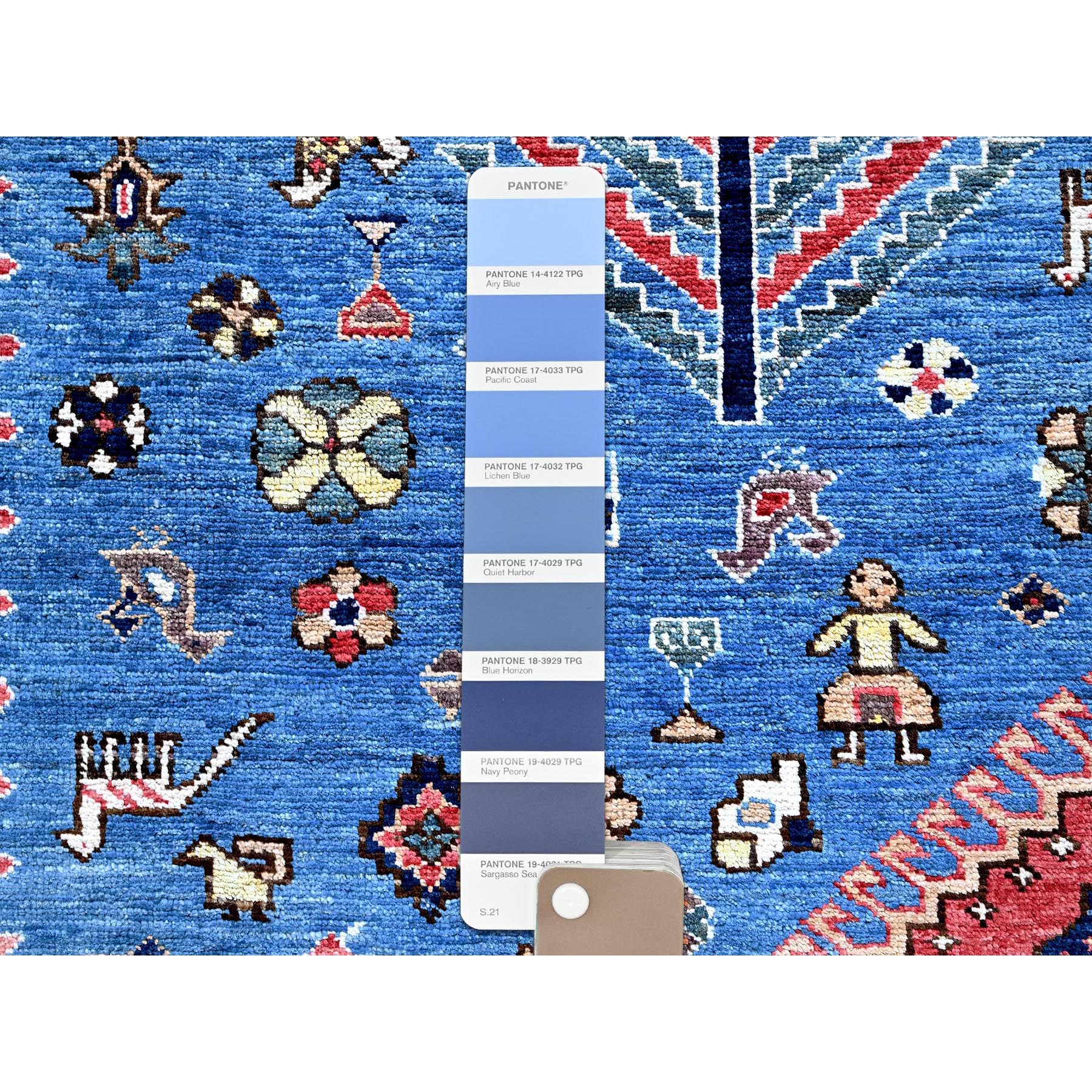9'3"x11'7" Carolina Blue, Afghan Ersari With Turkish Knot, Caucasian Design Revival, Ancient Bird Figurines, Vegetable Dyes, Hand Knotted, Pure Wool, Oriental Rug FWR3408