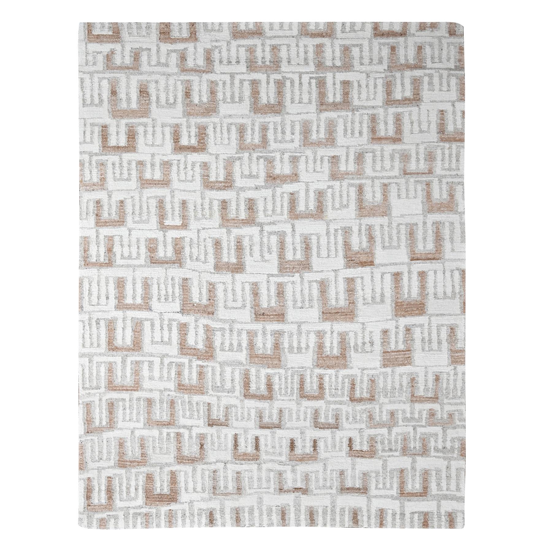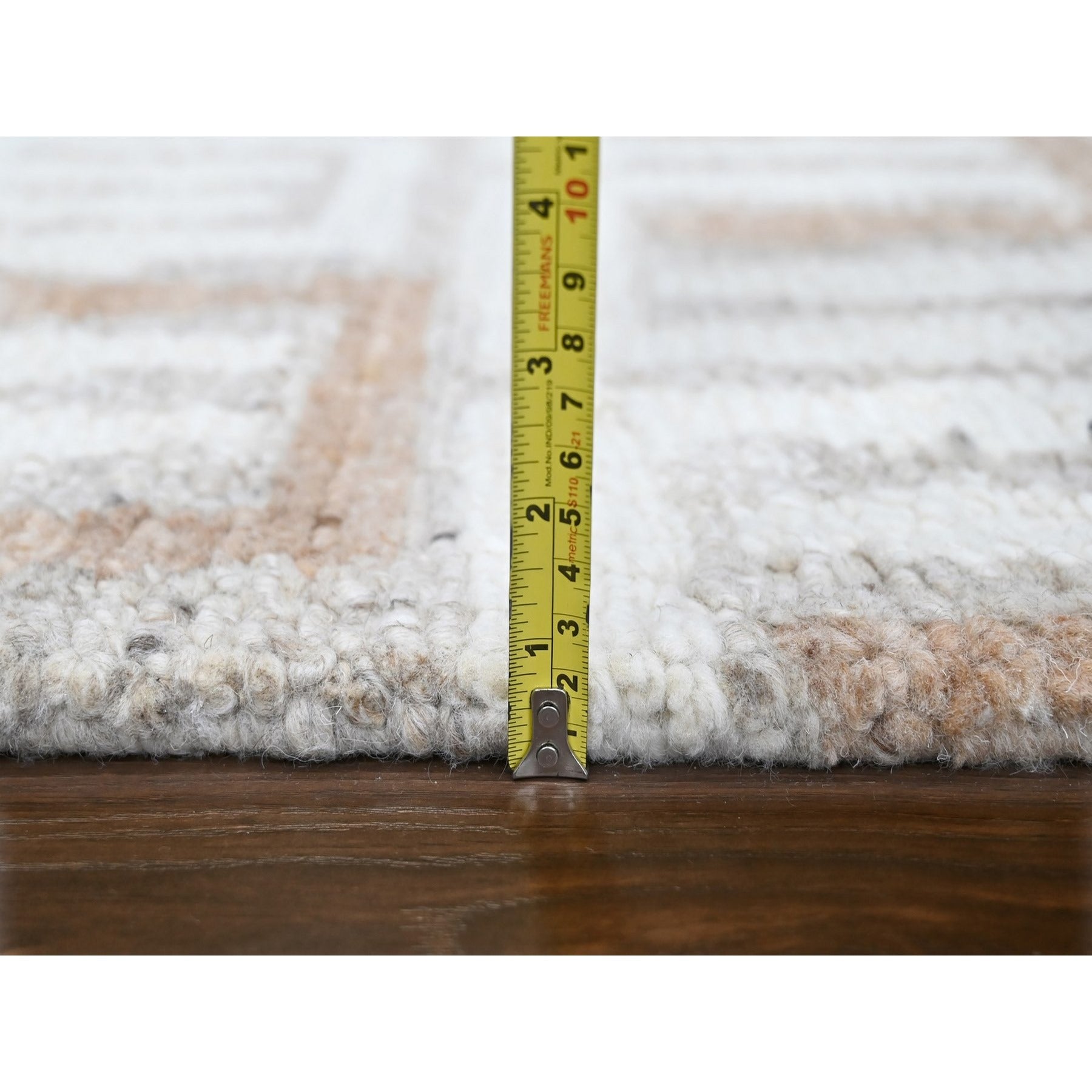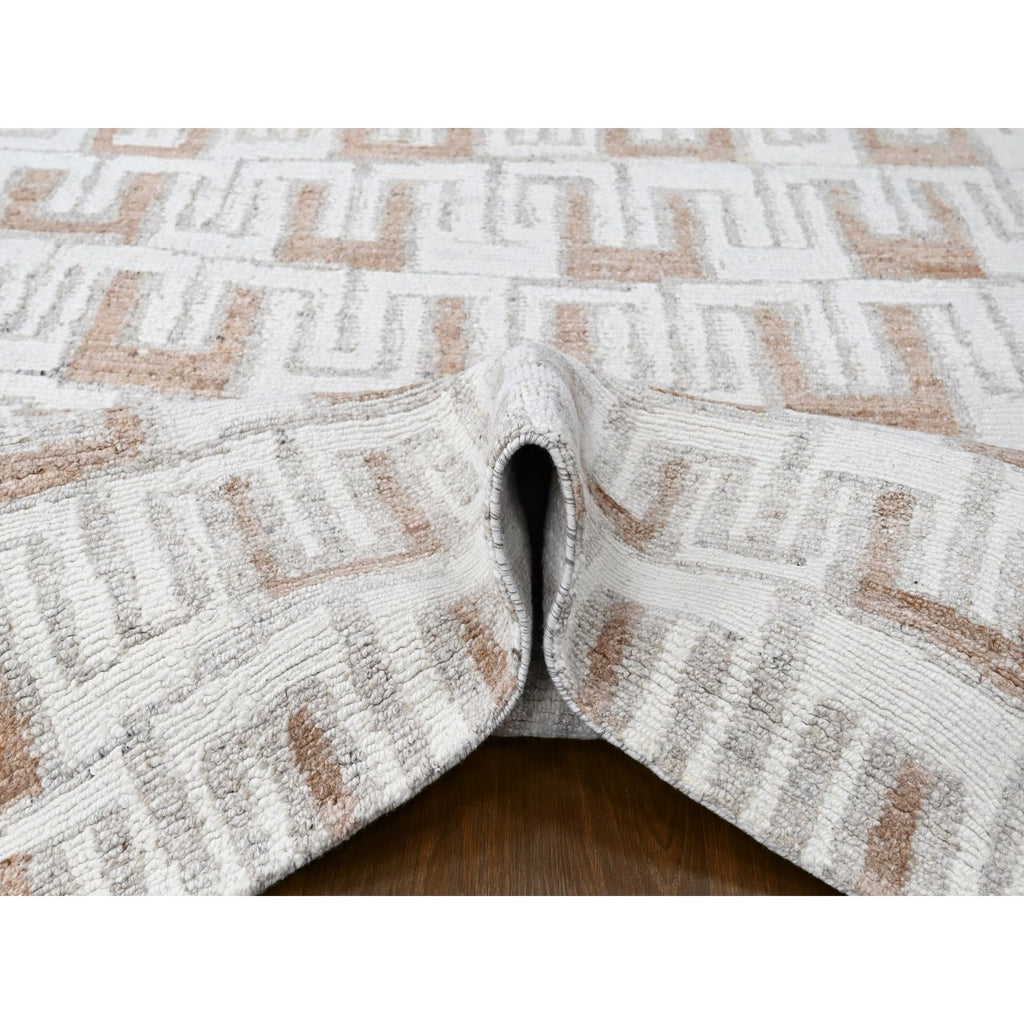 9'3"x11'9" Bone White, Minimalist Swedish Design, Hand Knotted, Organic Wool, Oriental Rug FWR61992