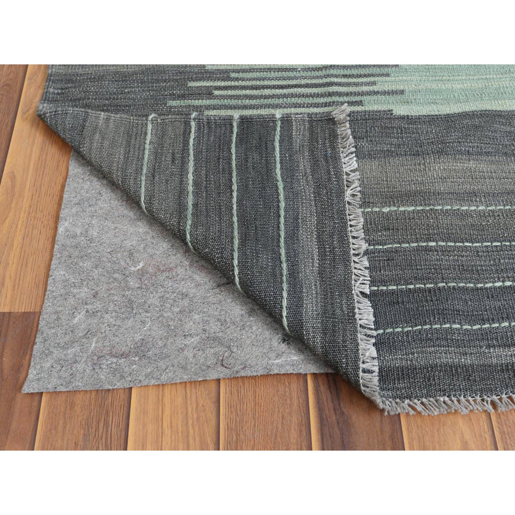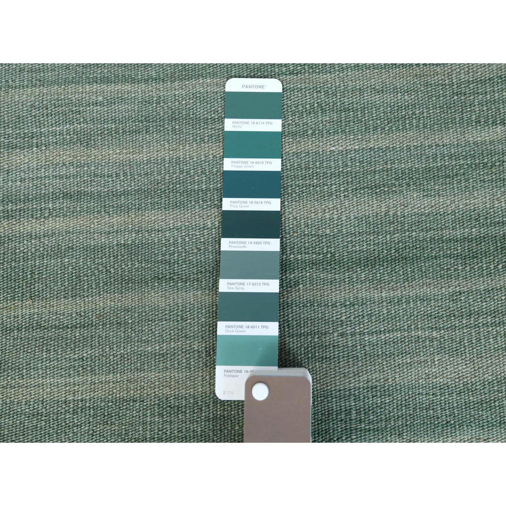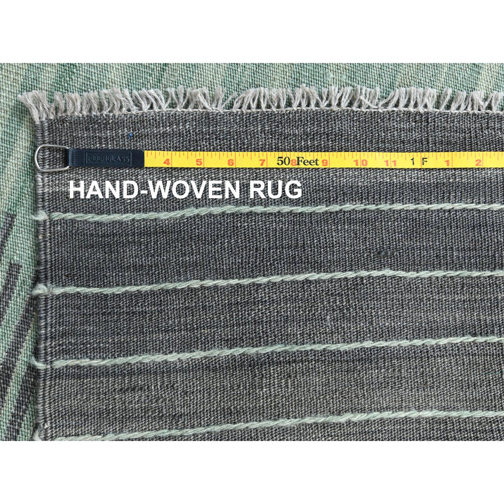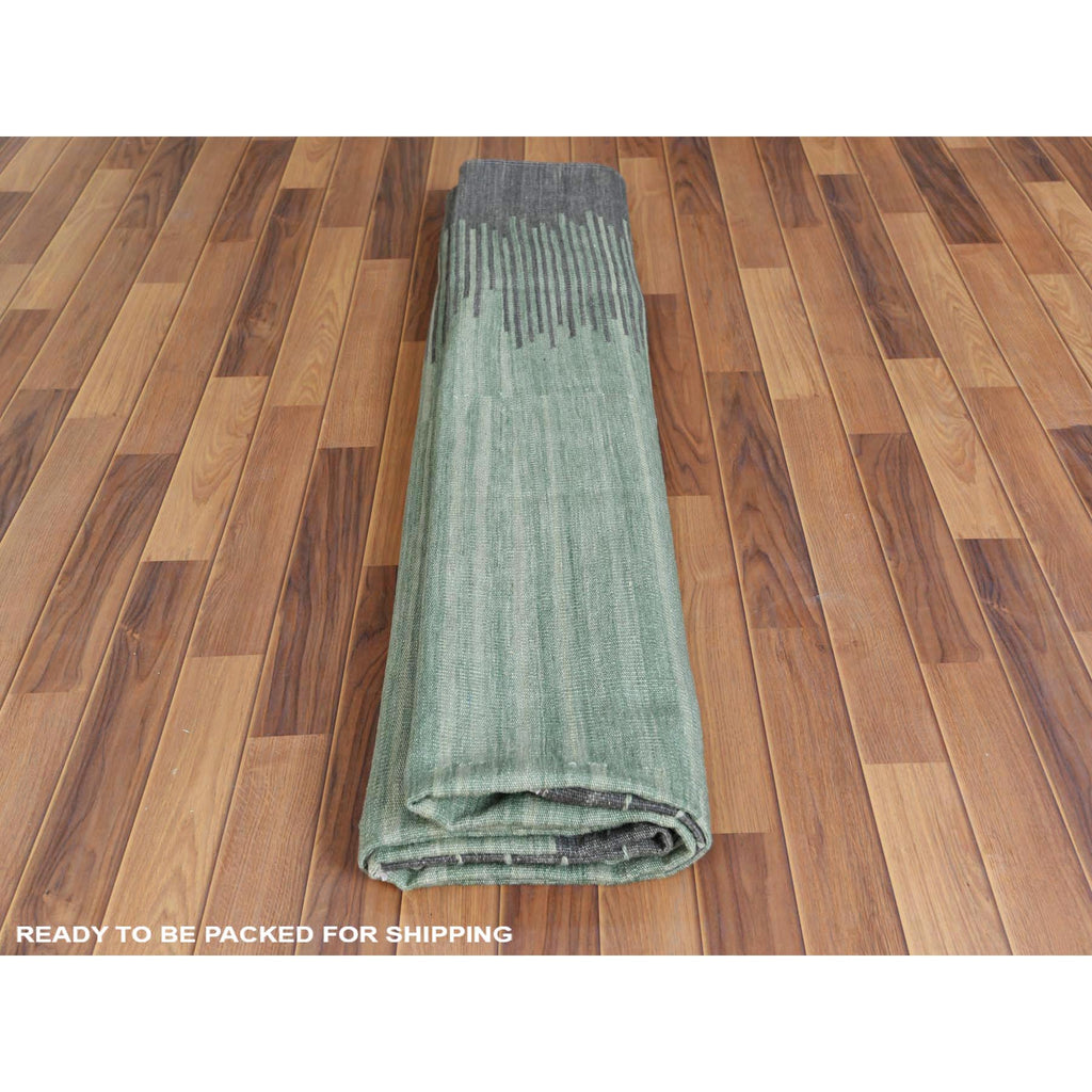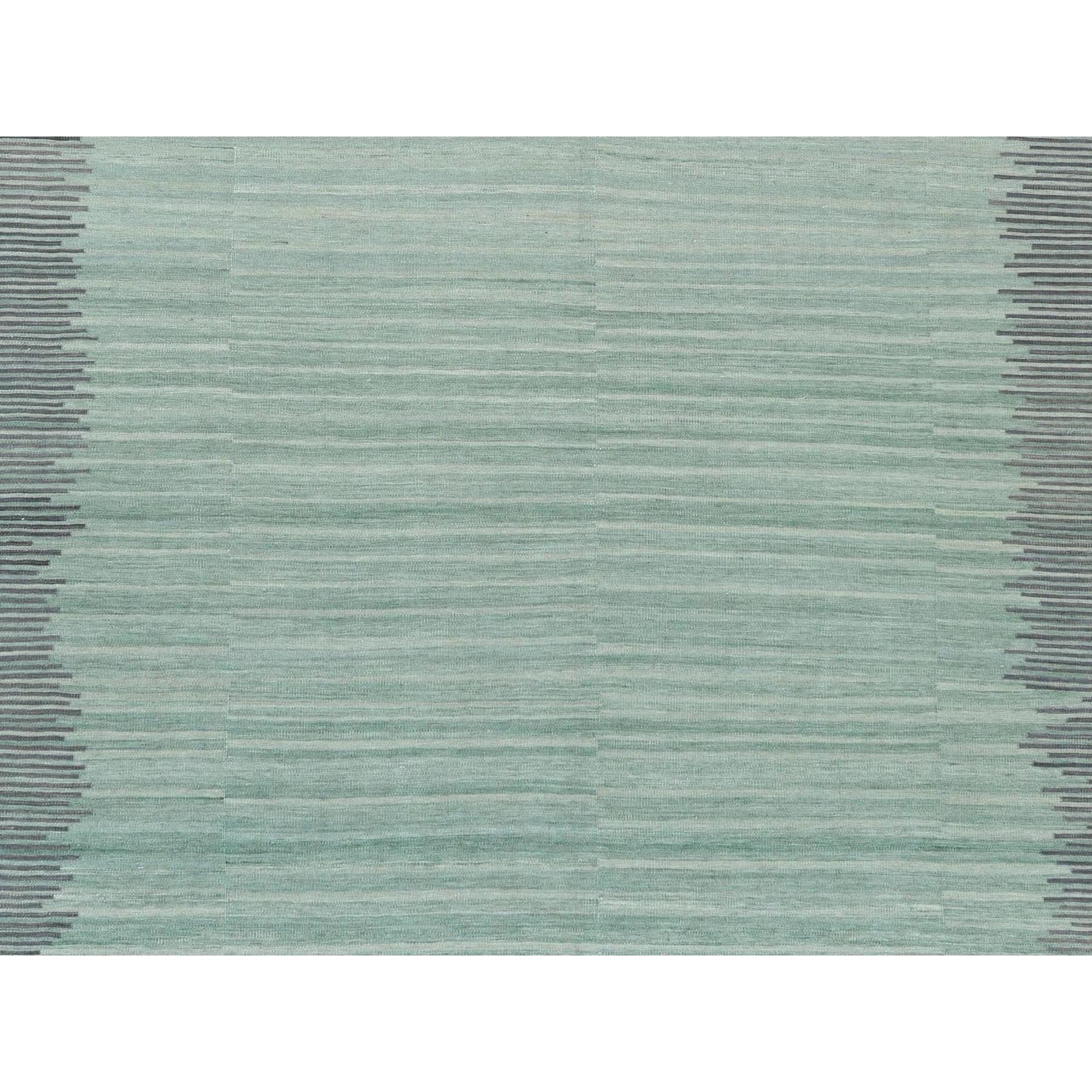 9'3"x12'1" Hand Woven Nomadic Design Light Green Flat Weave Kilim Natural Wool Reversible Oriental Rug FWR360132