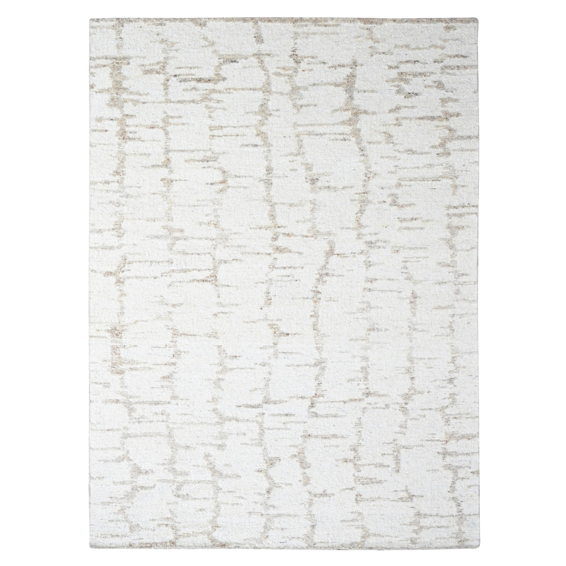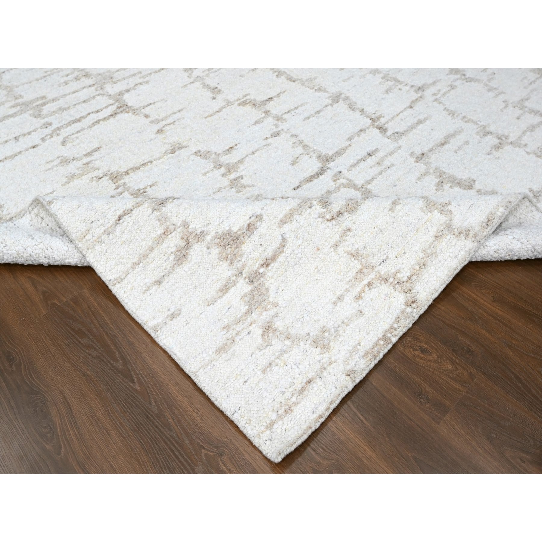 9'3"x12'2" Bone White, Minimalist Swedish Design, Hand Knotted, 100% Wool, Oriental Rug FWR62166