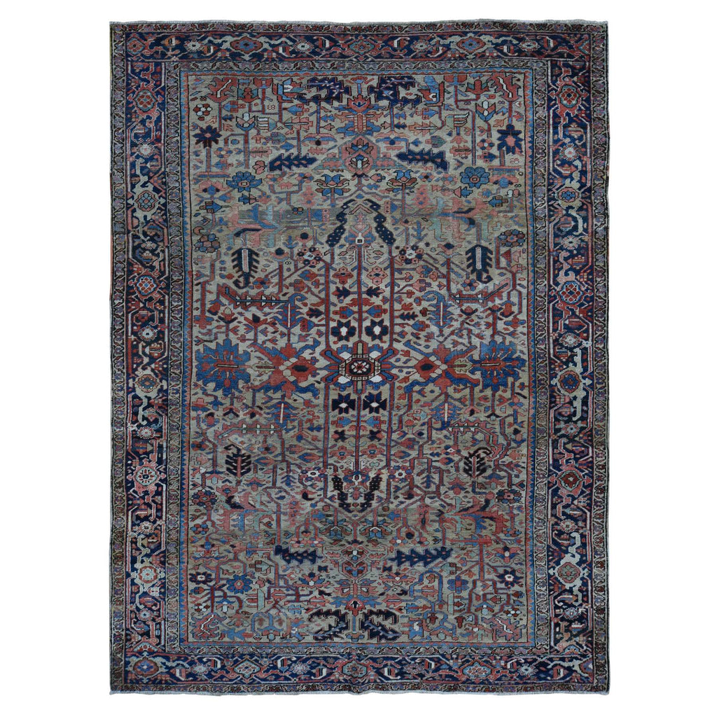 9'3"x12'4" Beige, Antique Persian Heriz With All Over Design, Pure Wool, Good Condition, Hand Knotted, Clean, Sides And Ends Professionally Secured, Oriental Rug FWR527508