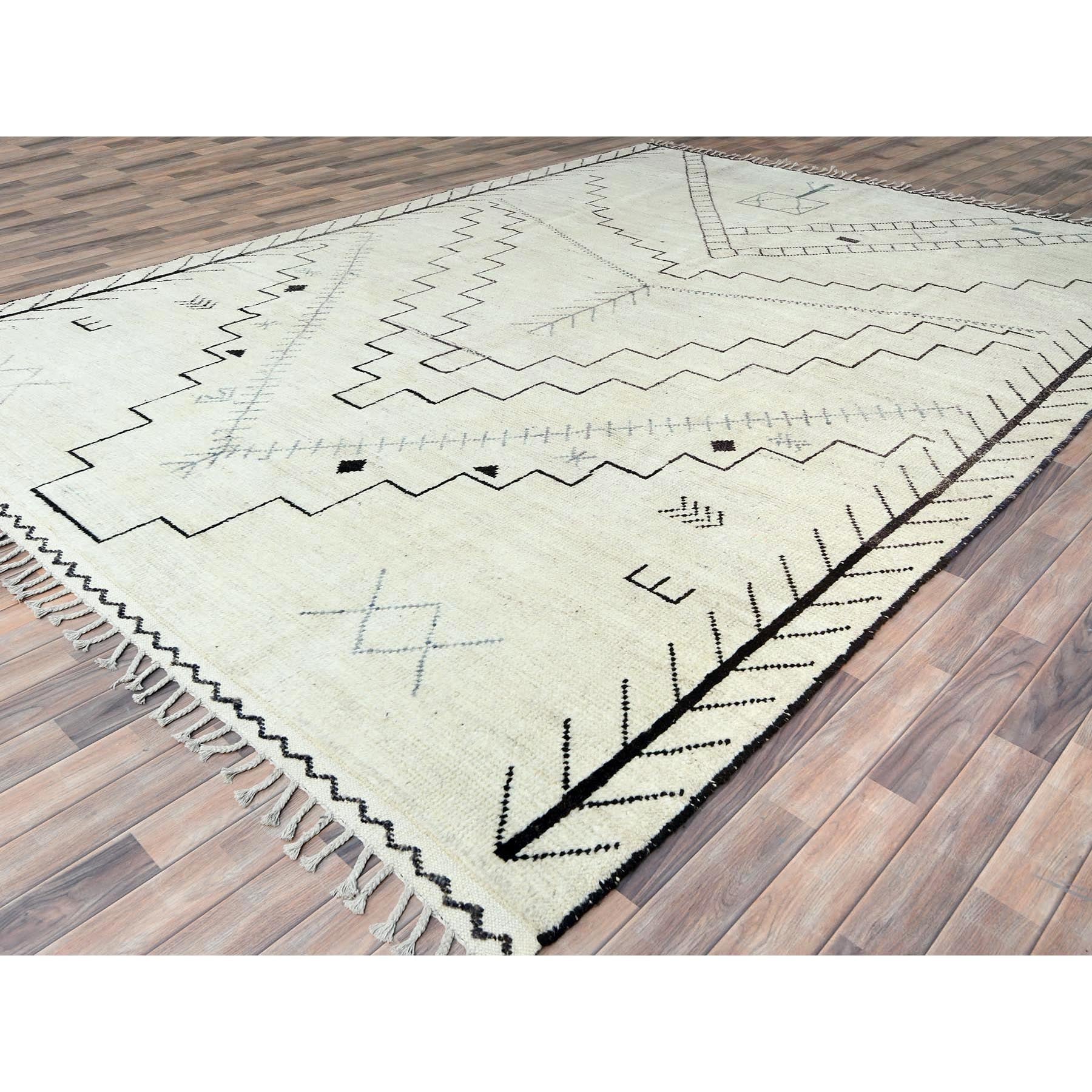 9'3"x12'6" Ivory, Ben Ourain Moroccan Berber Influence Design, Natural Dyes, Natural Wool, Hand Knotted Oriental Rug FWR497760