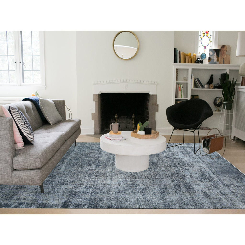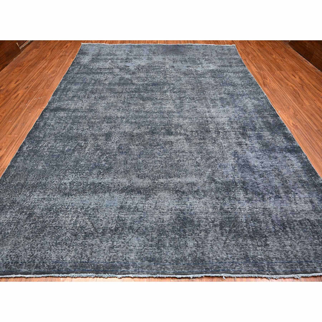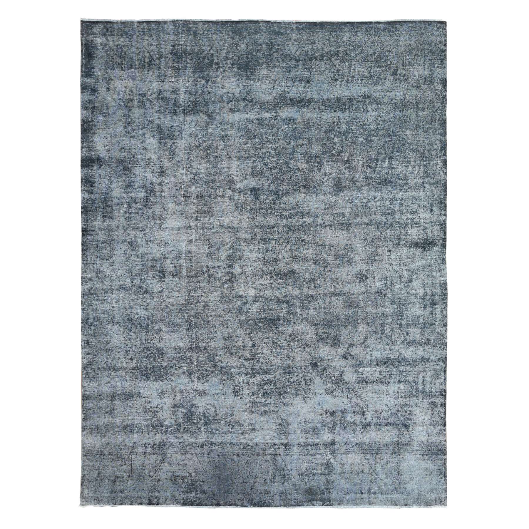 9'3"x12'6" Zombie Gray, Worn Wool, Hand Knotted, Broken Design, Distressed Look, Vintage Persian Kerman, Overdyed And Secured, Oriental Rug FWR537918