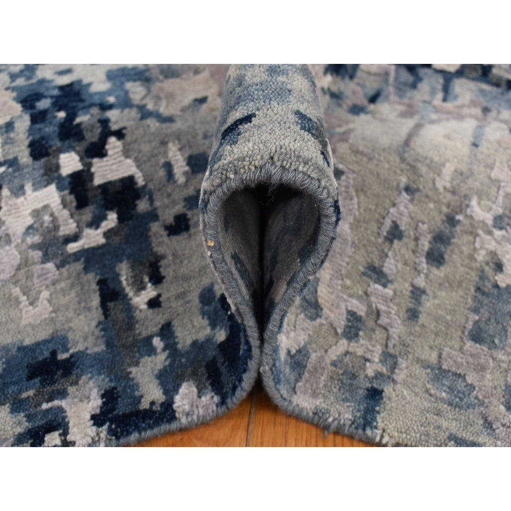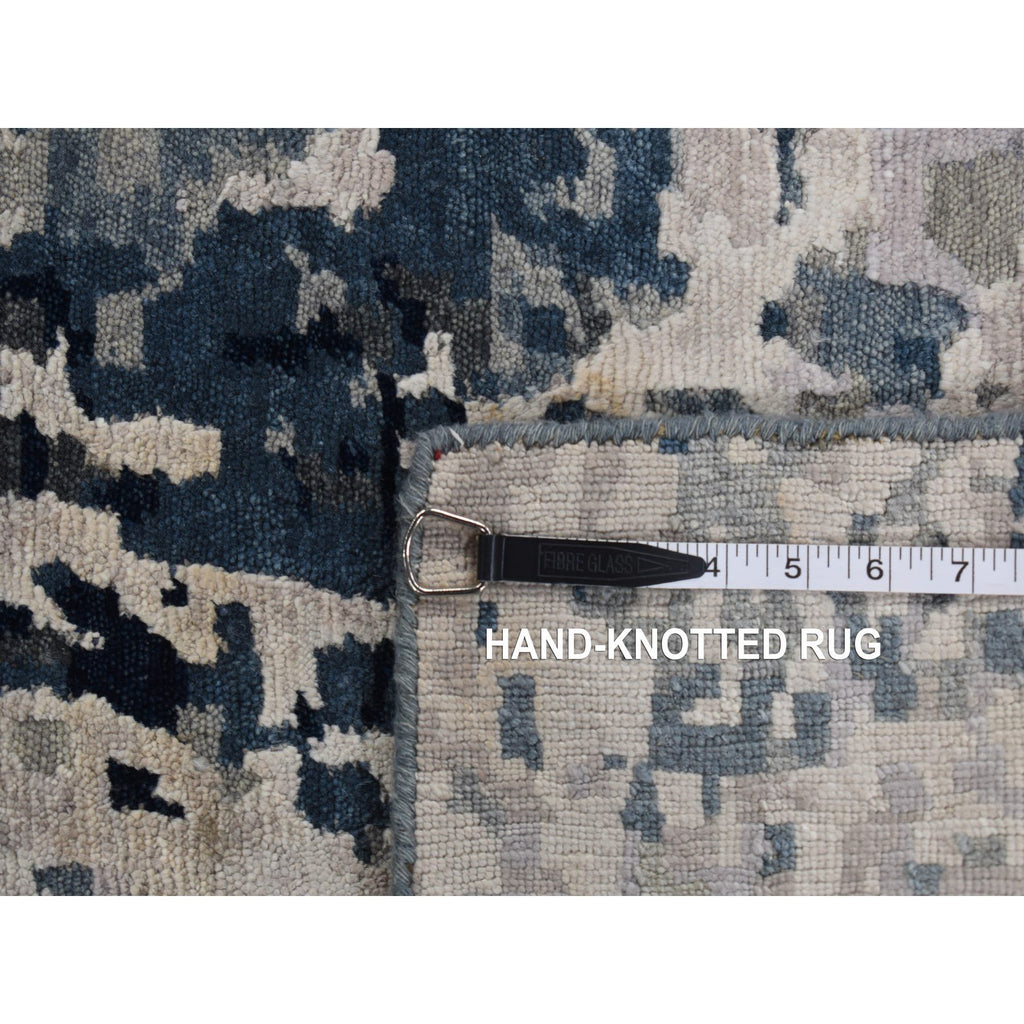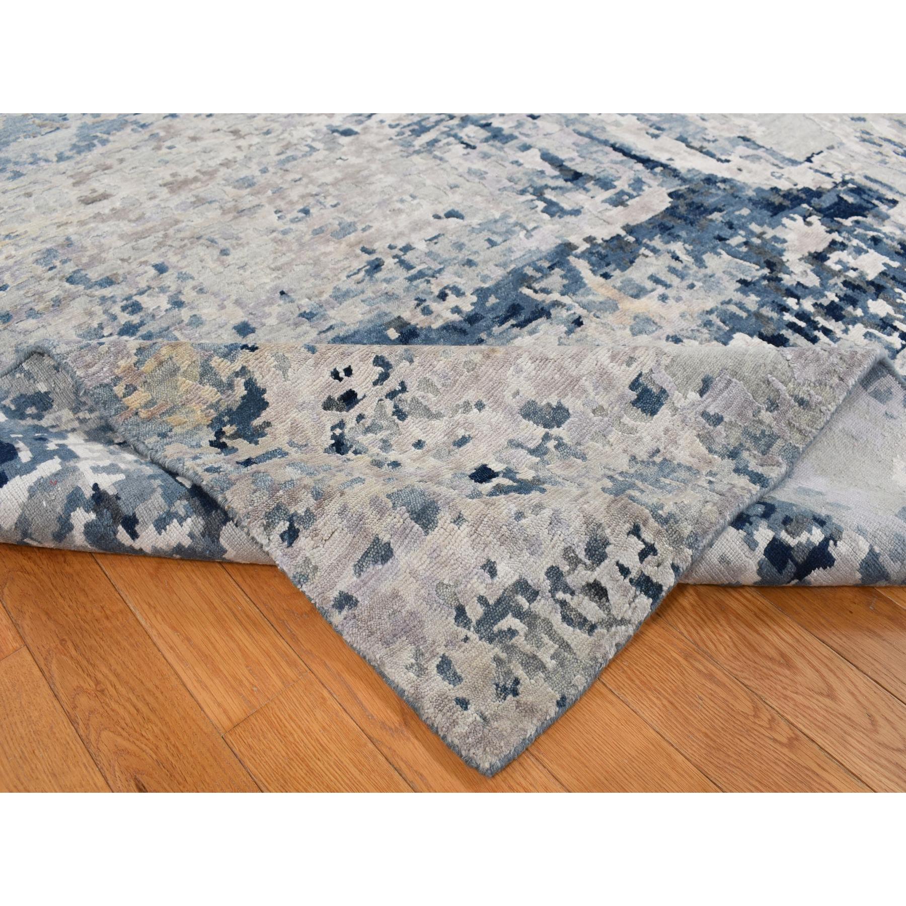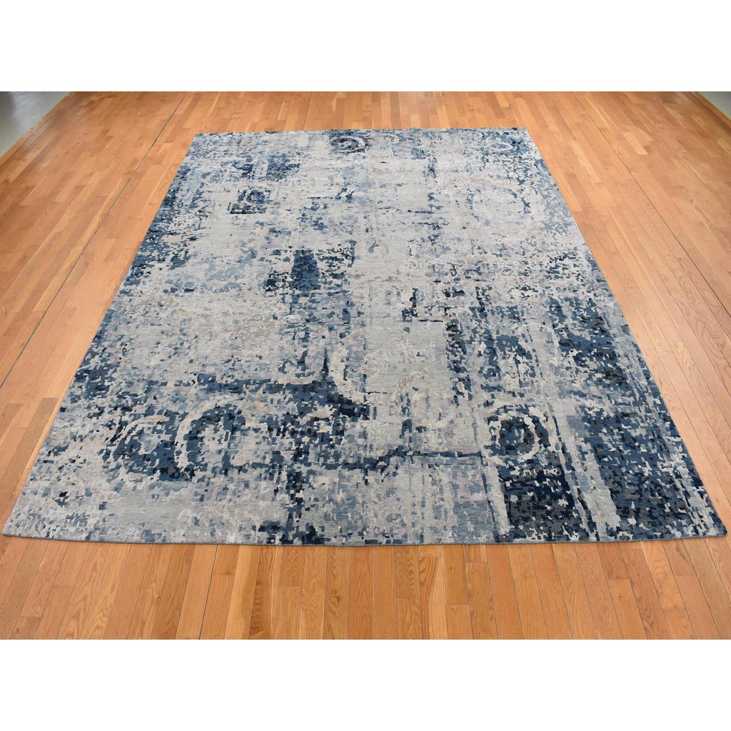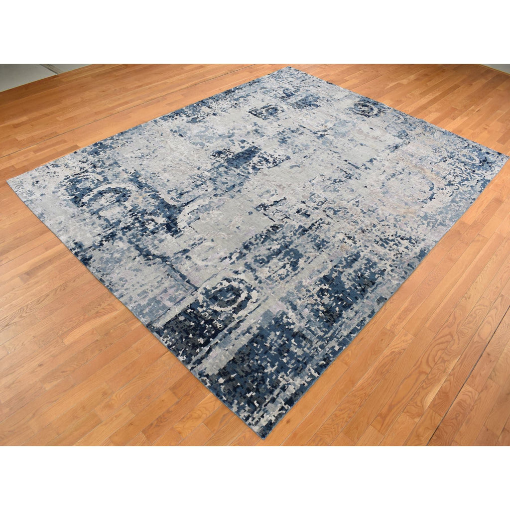 9'3"x12' Arsenic Gray, Hand Knotted, Broken And Erased Circles Design, Wool And Silk, Hi-lo Pile, Oriental Rug FWR522720