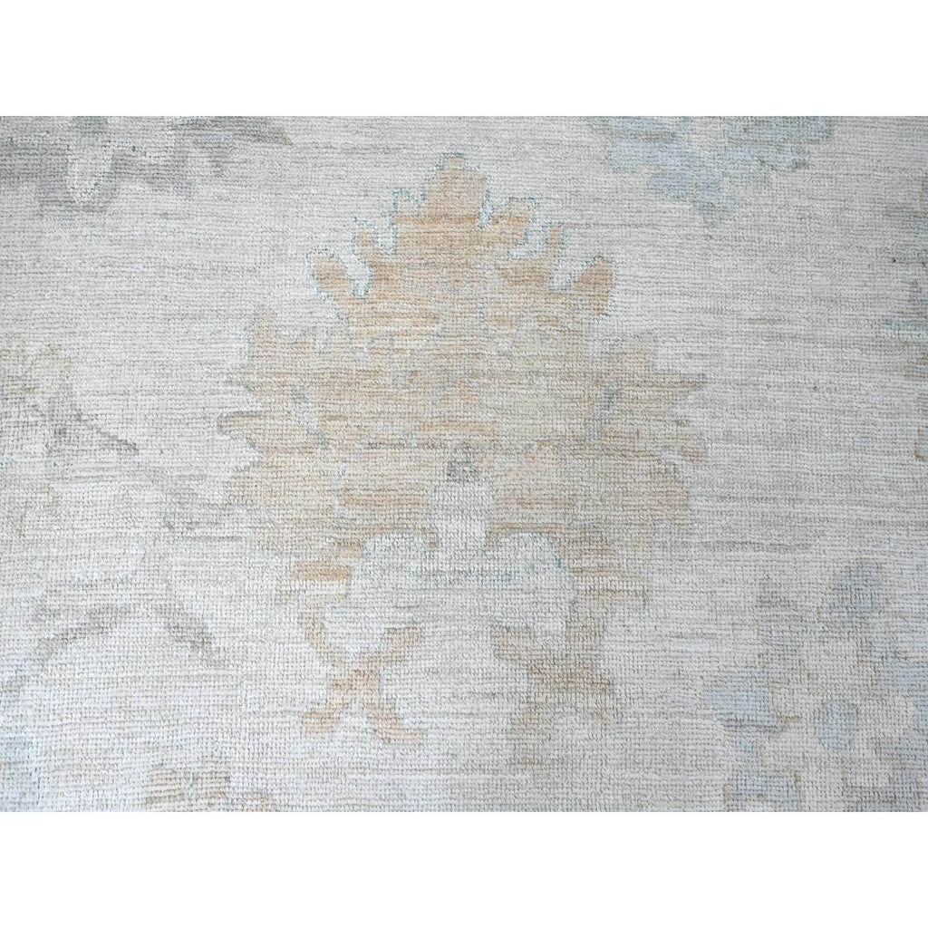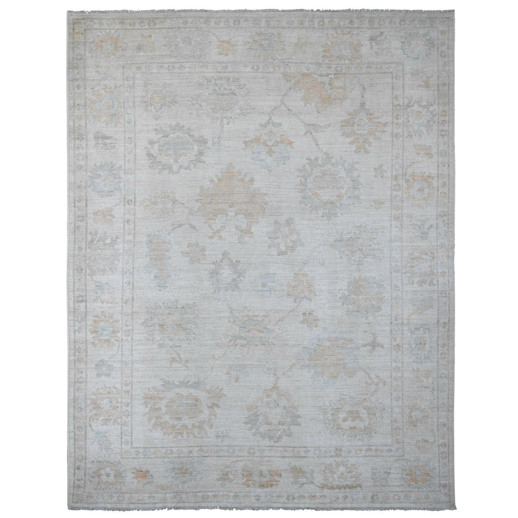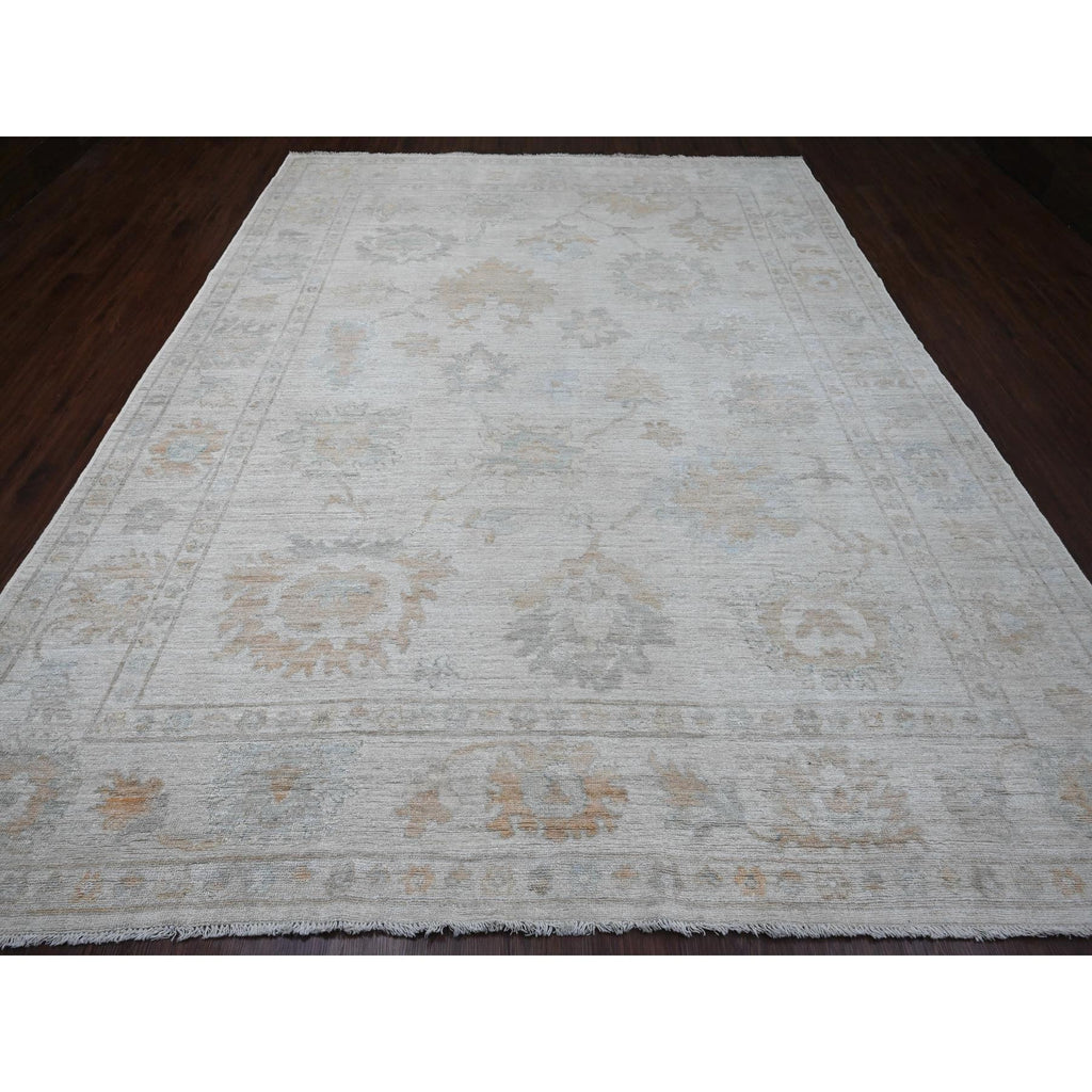 9'3"x12' Chiffon White, Afghan Angora Oushak With Muted Colors Floral Design, Hand Knotted, Vegetable Dyes, 100% Wool, Oriental Rug FWR122754