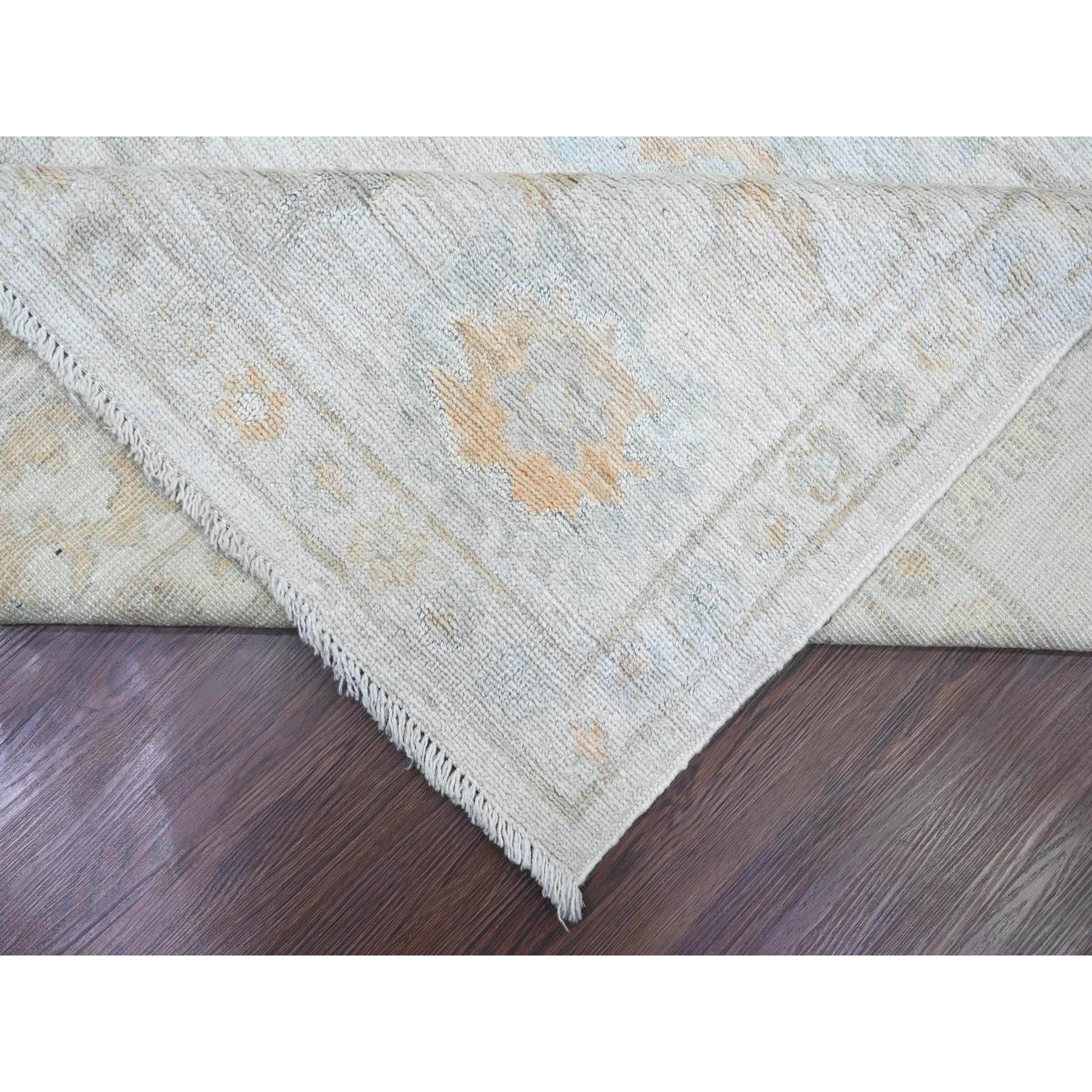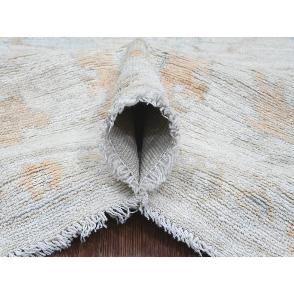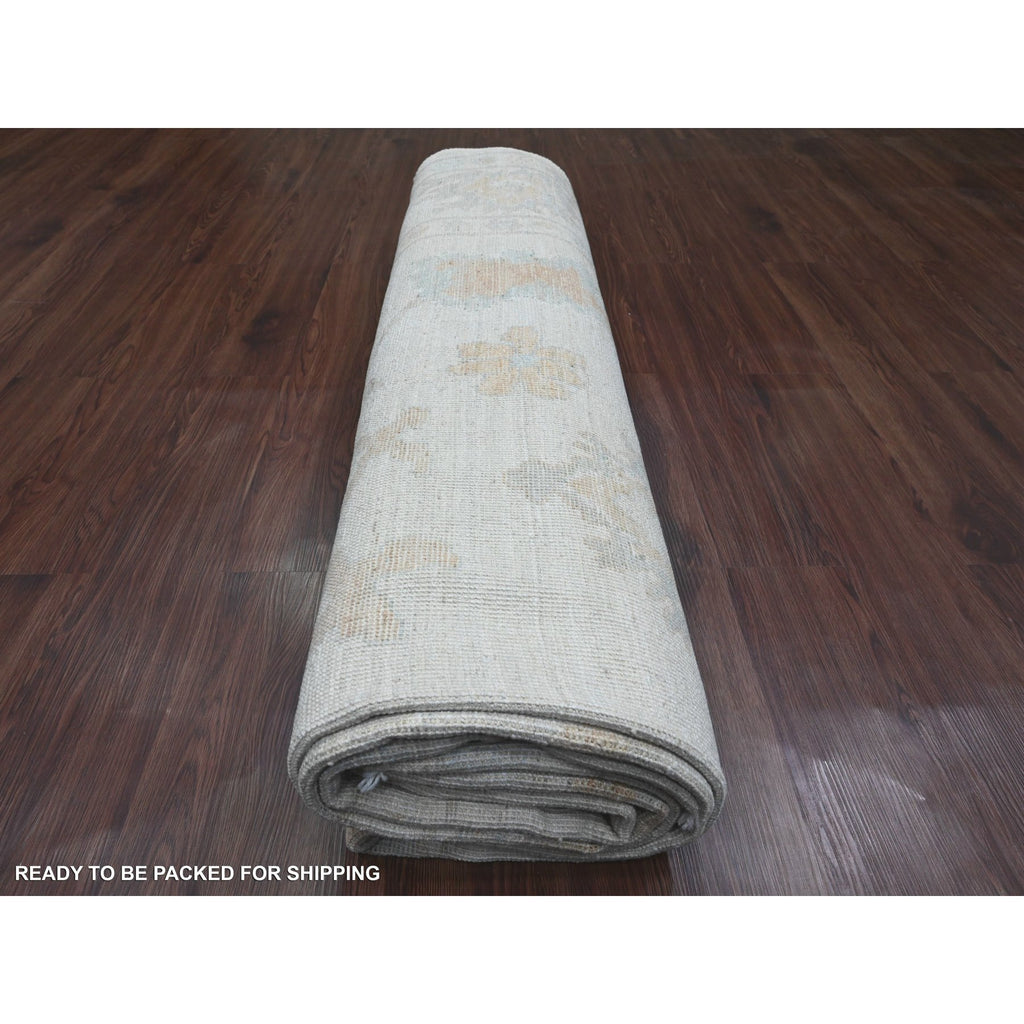 9'3"x12' Chiffon White, Afghan Angora Oushak With Muted Colors Floral Design, Hand Knotted, Vegetable Dyes, 100% Wool, Oriental Rug FWR122754