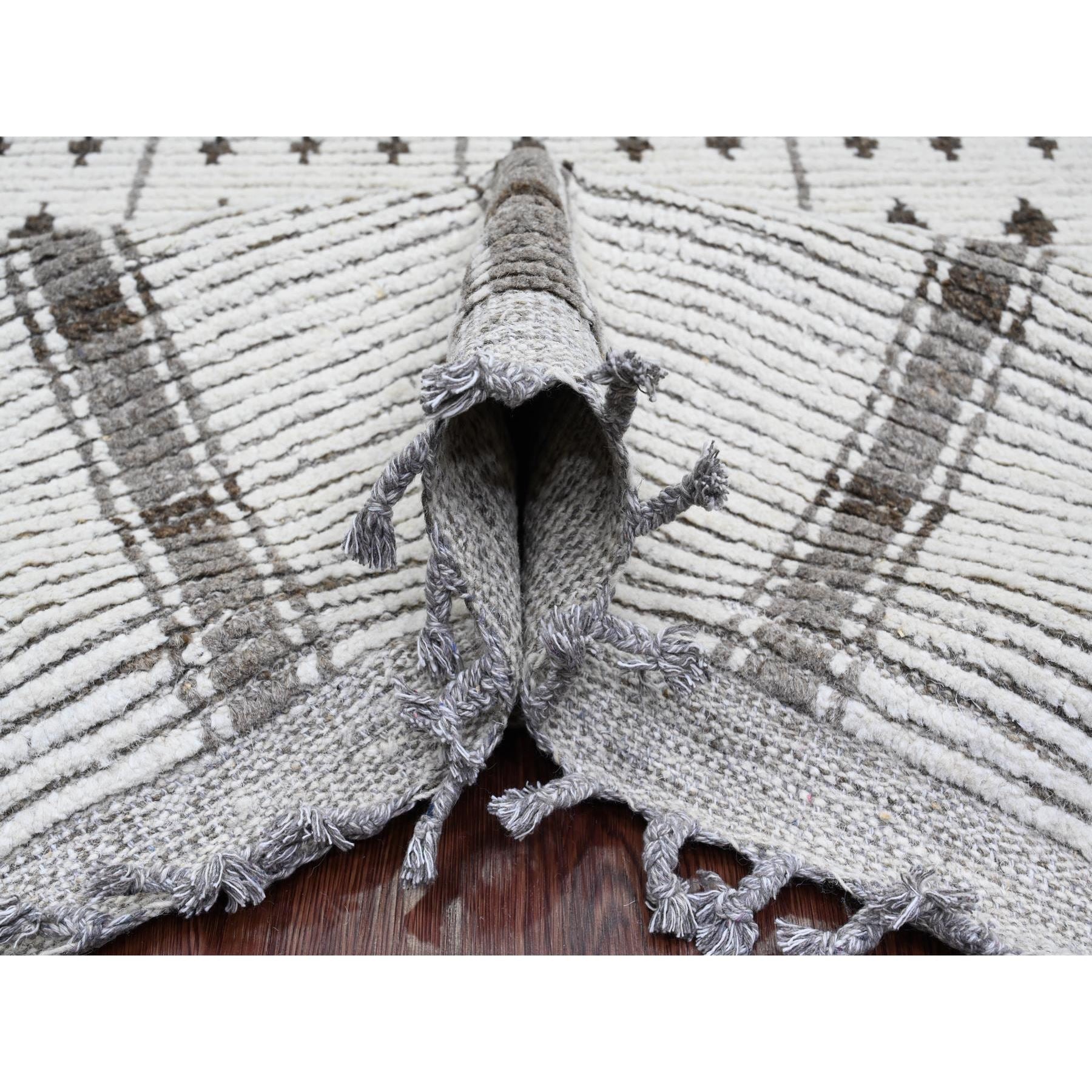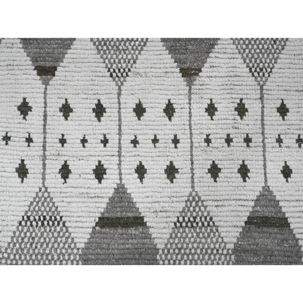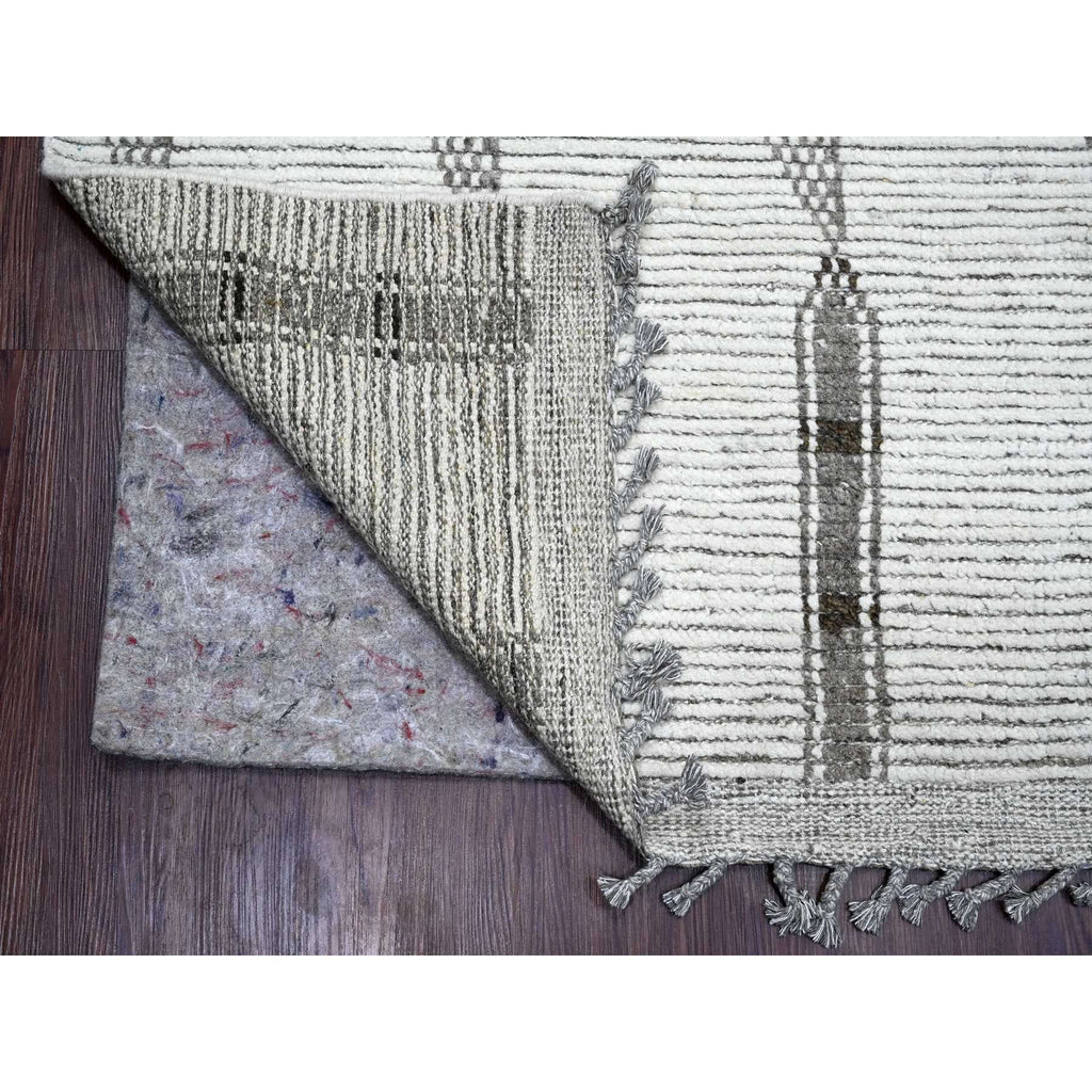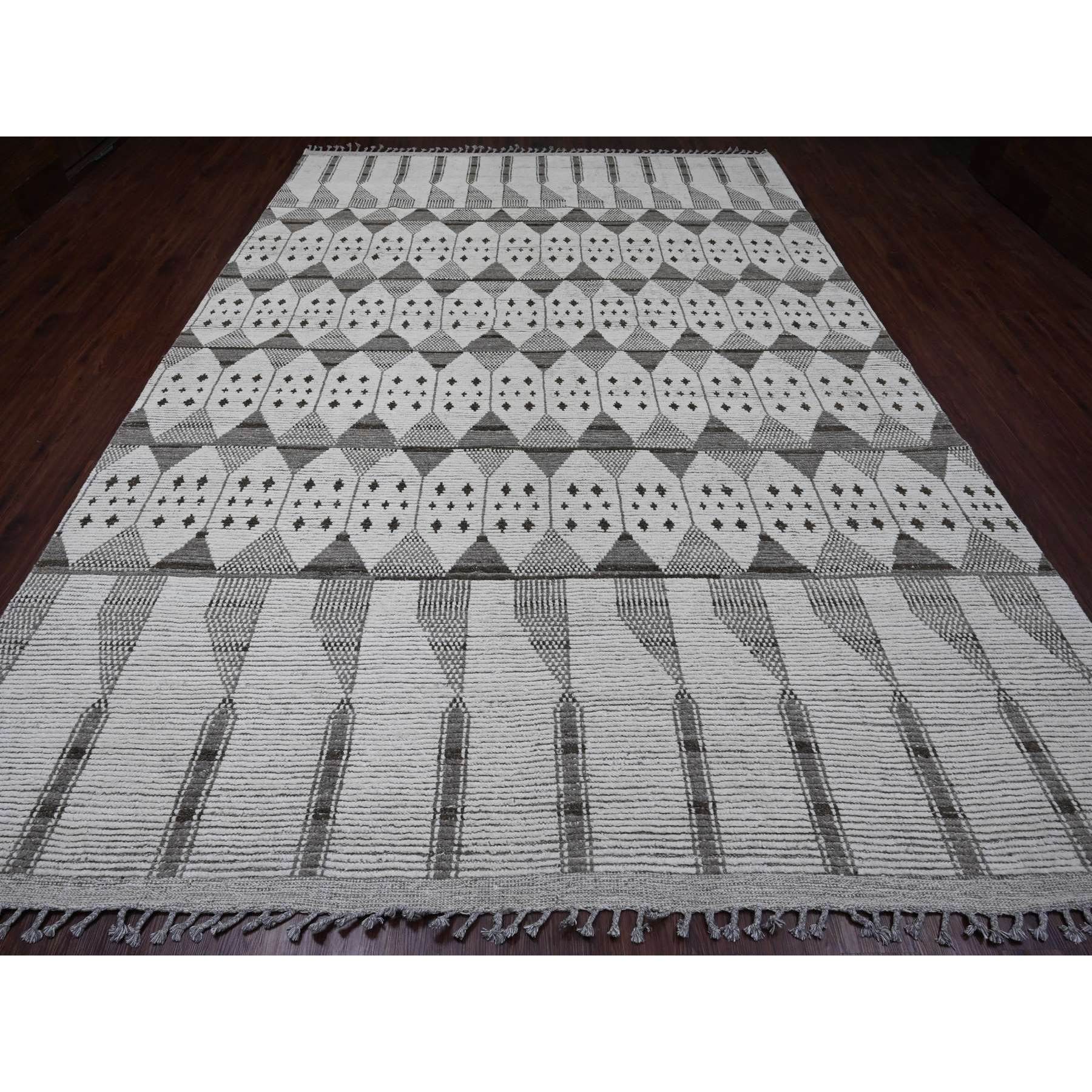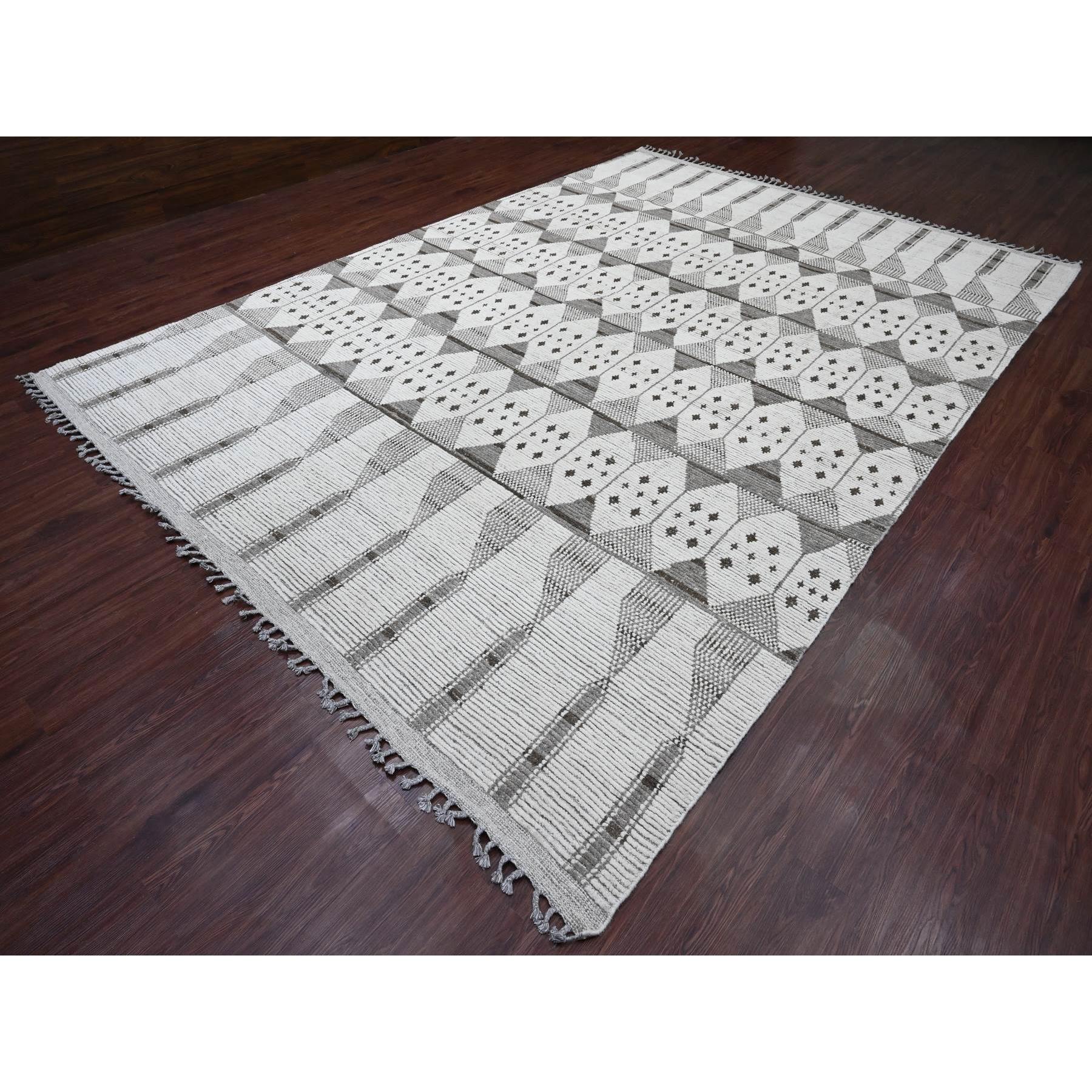 9'3"x13'2" Cotton White, Moroccan Weave With Geometric Pattern, Soft Wool, Hand Knotted, Tone On Tone, Textured Pile, Oriental Rug FWR124992