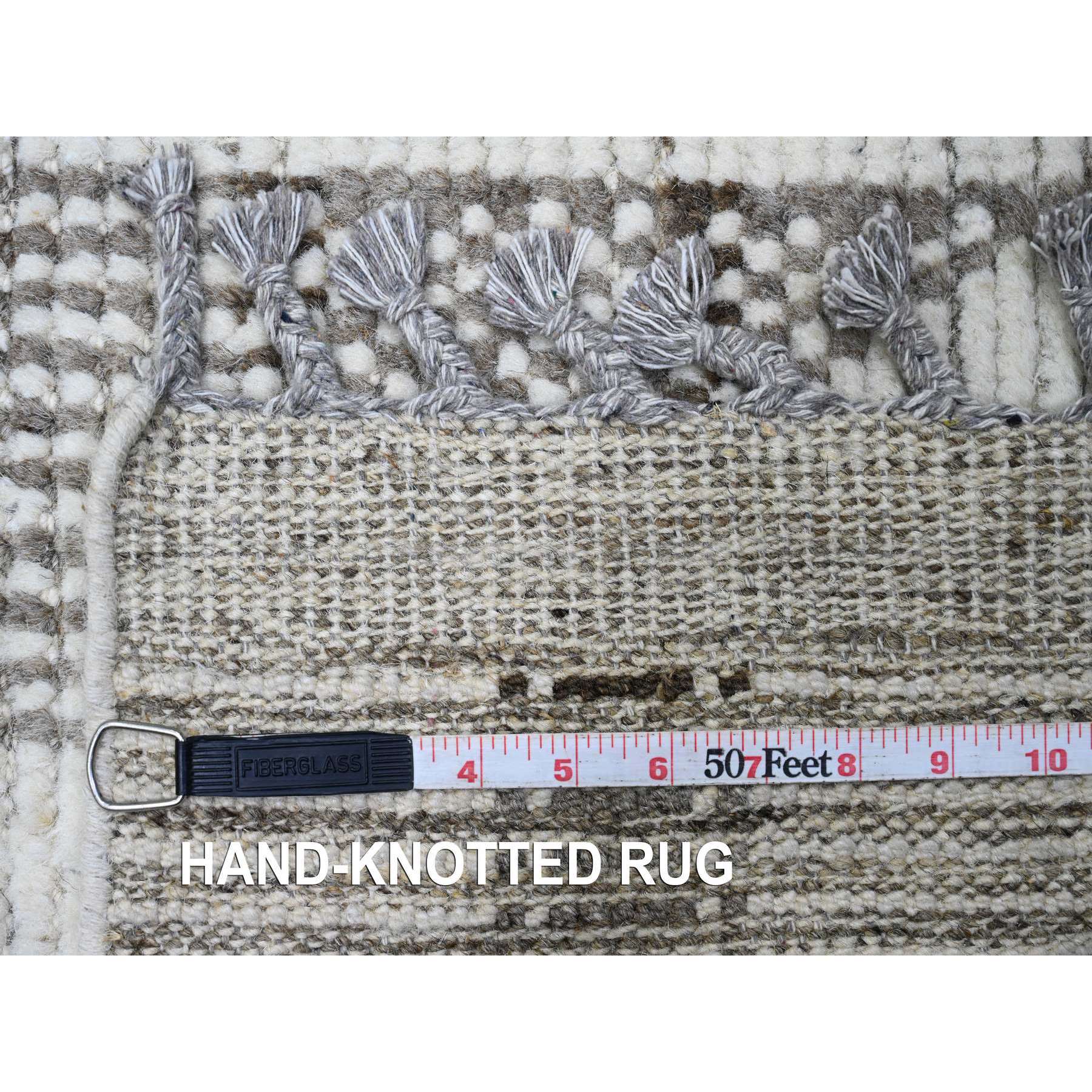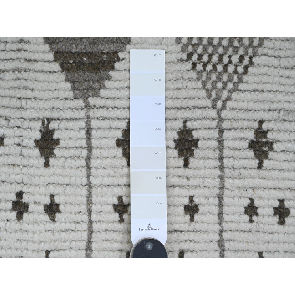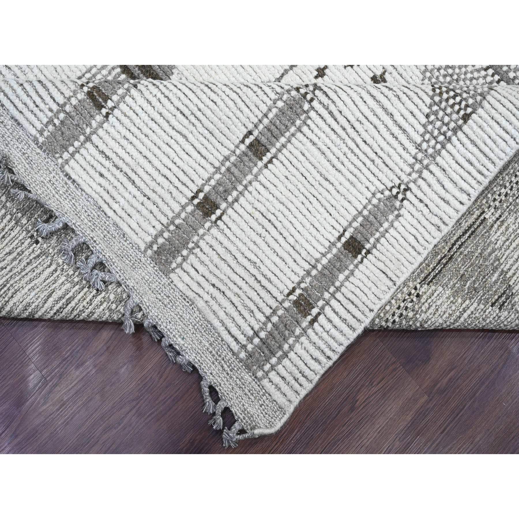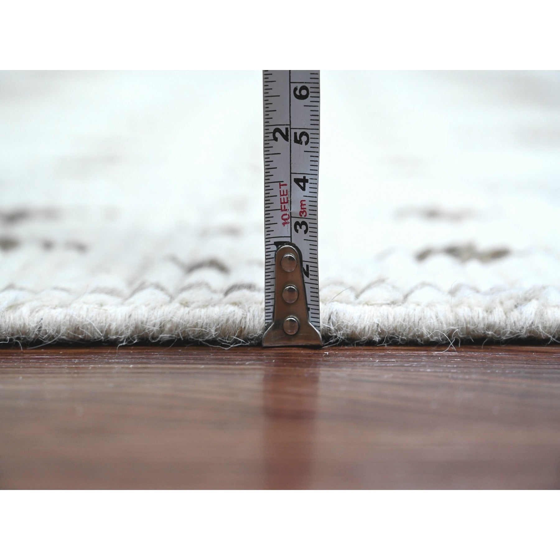 9'3"x13'2" Cotton White, Moroccan Weave With Geometric Pattern, Soft Wool, Hand Knotted, Tone On Tone, Textured Pile, Oriental Rug FWR124992