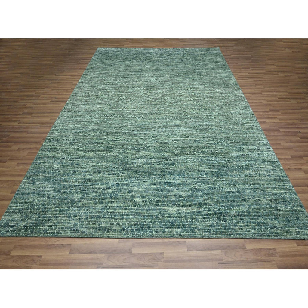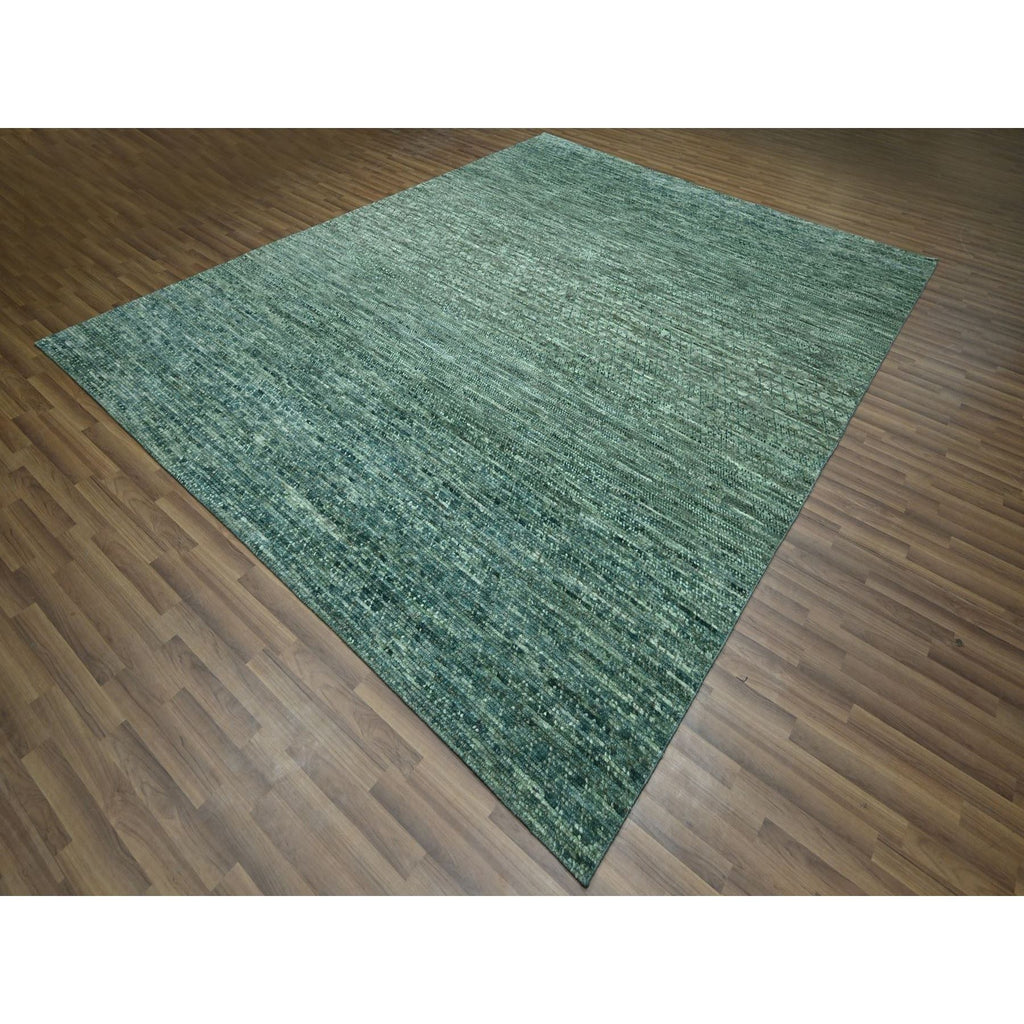 9'4"x11'9" Sage Green, Hand Knotted, Grass Design With Looped Pile, Pure Wool, Oriental Rug FWR460770