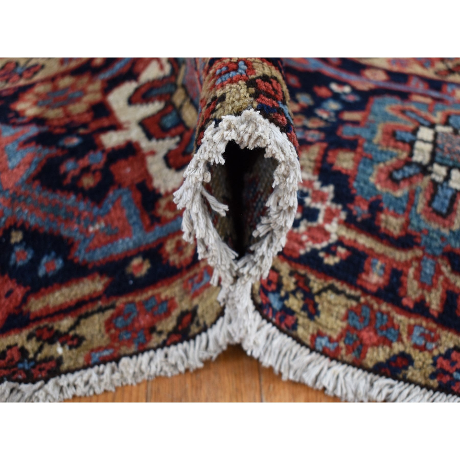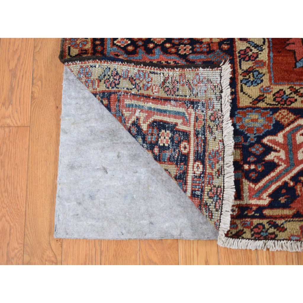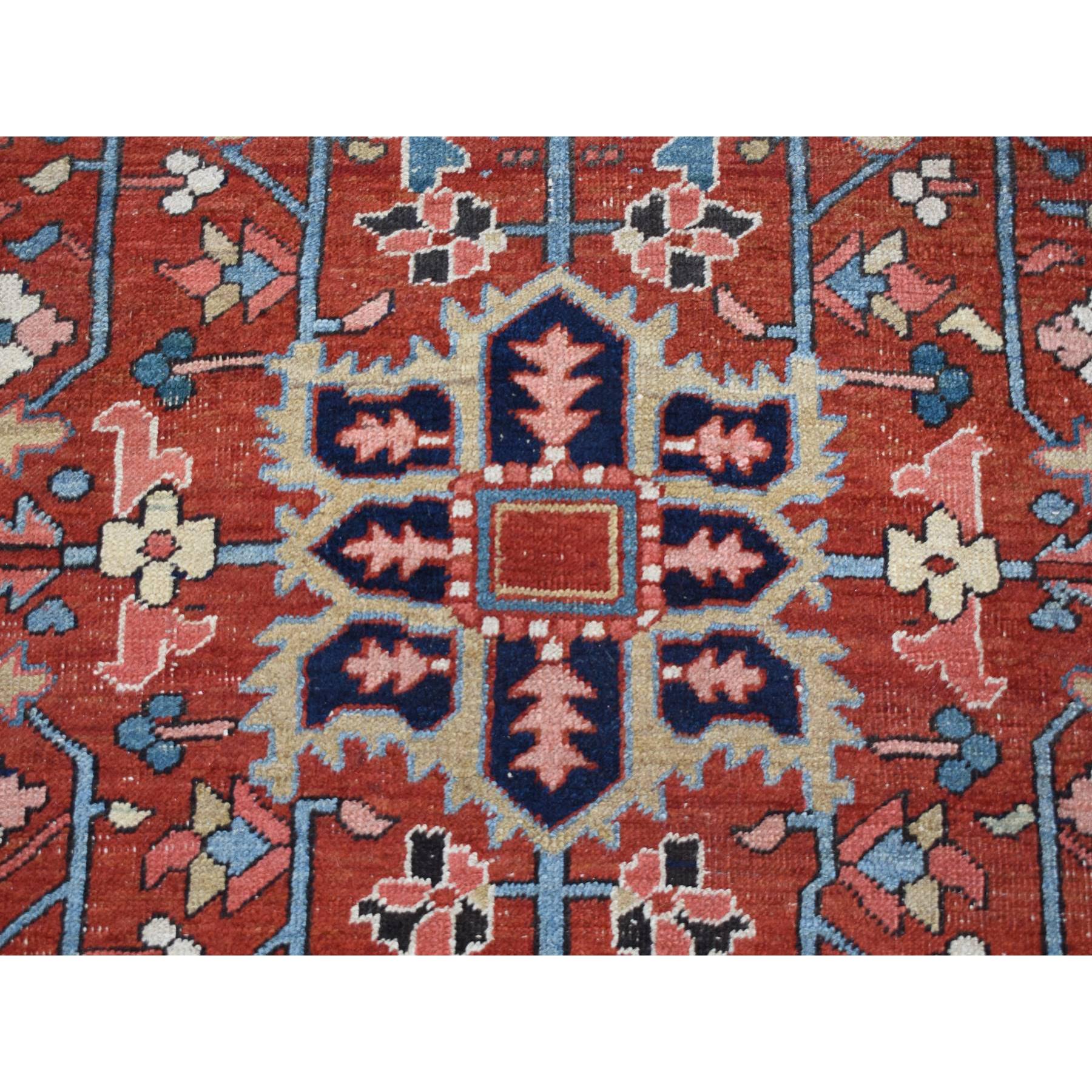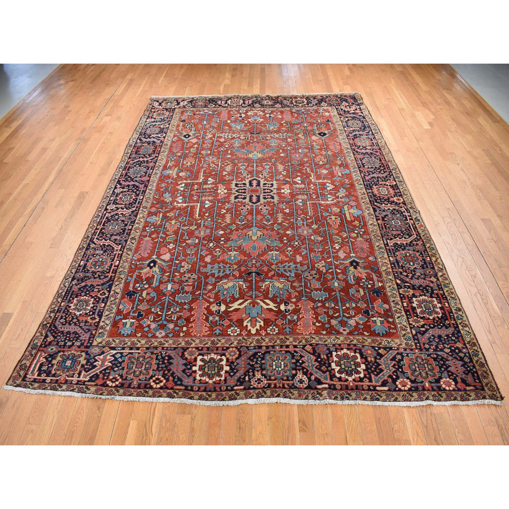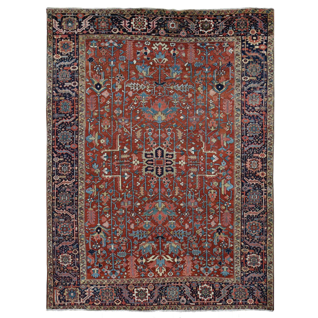 9'4"x12'10" Barn Red, Antique Persian Heriz With Small Geometric Flower Center Medallion, Hand Knotted, Pure Wool, Clean With Sides And Ends Professionally Secured, Good Condition, Oriental Rug FWR523860