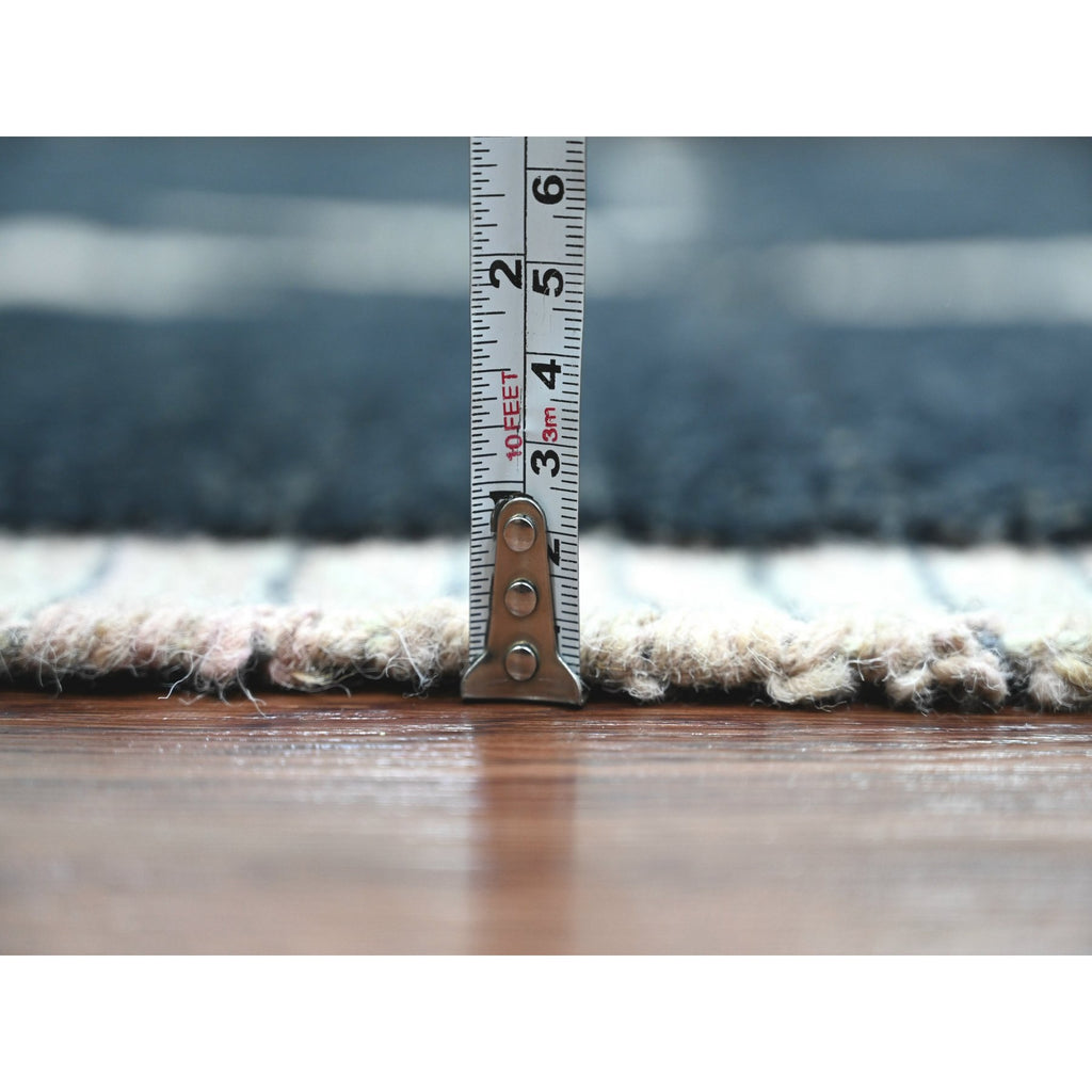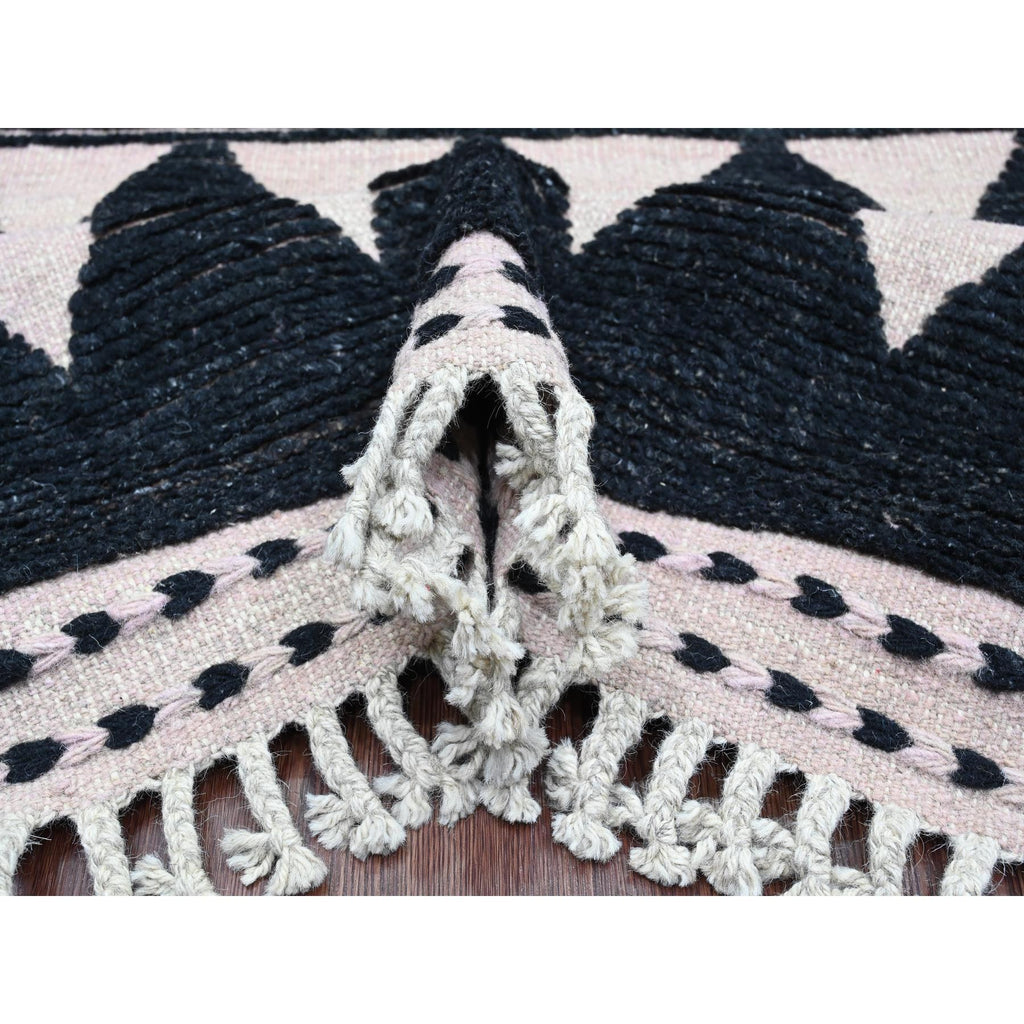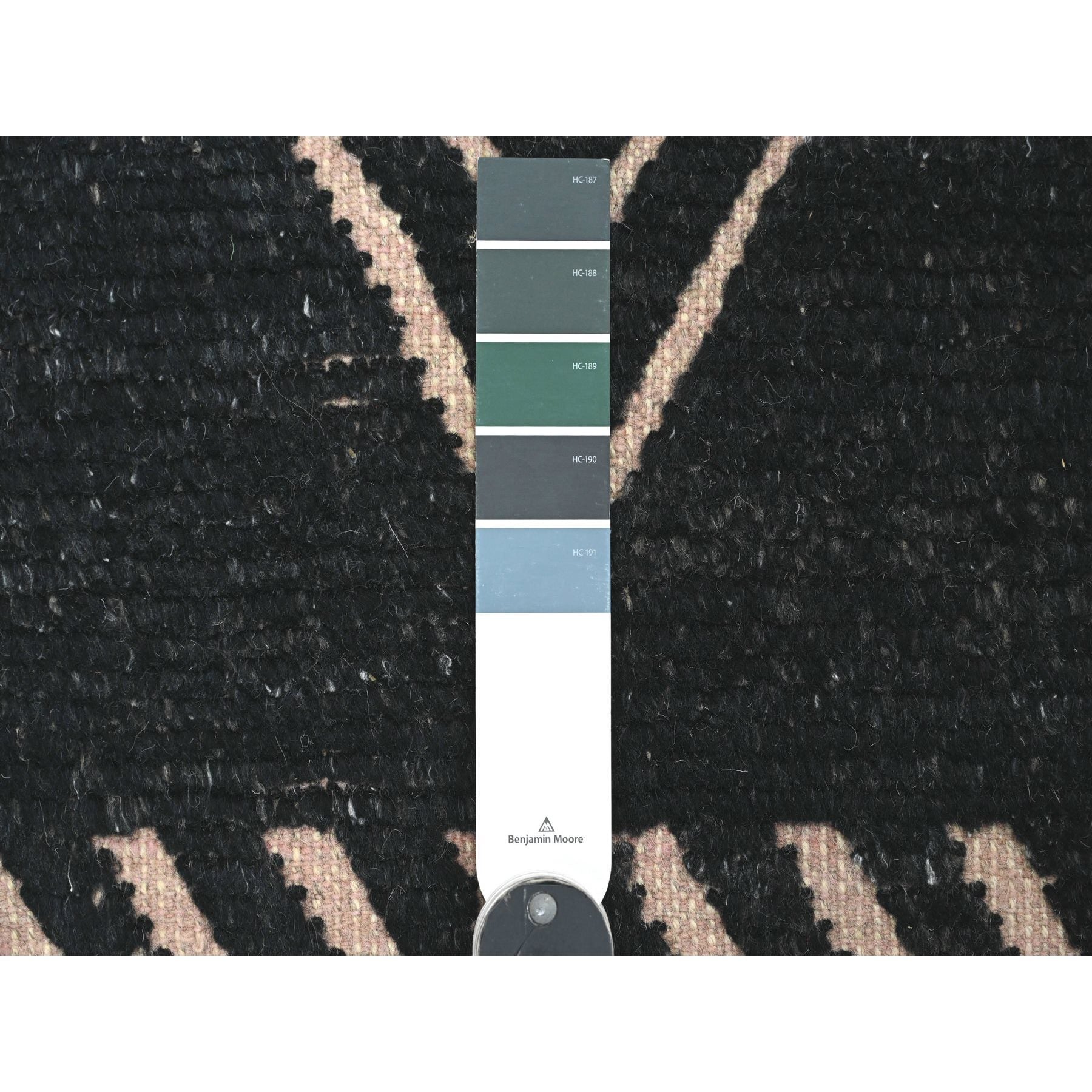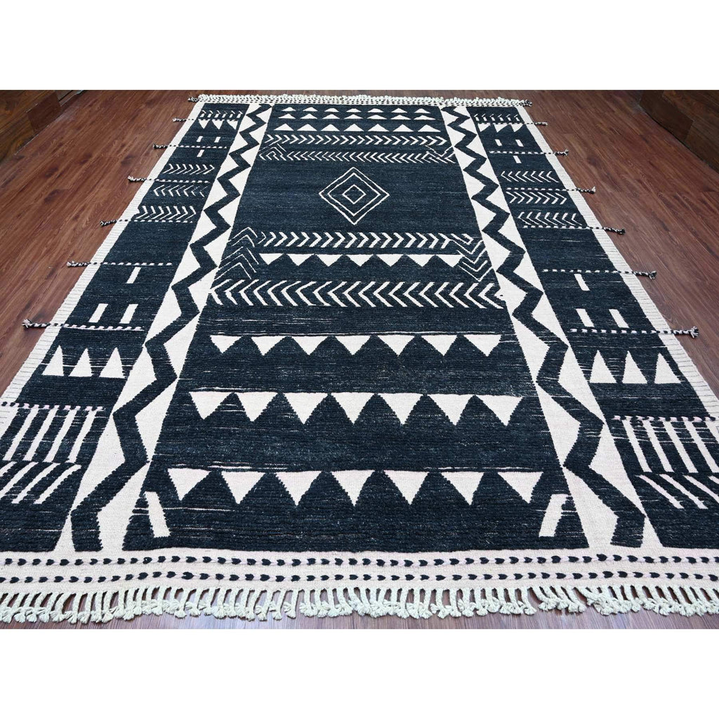 9'4"x12'10" Jade Black, Hand Knotted, Moroccan Weave With Geometric And Ethnic Design, Soft Wool, Tone On Tone, Textured Pile, Oriental Rug FWR123144