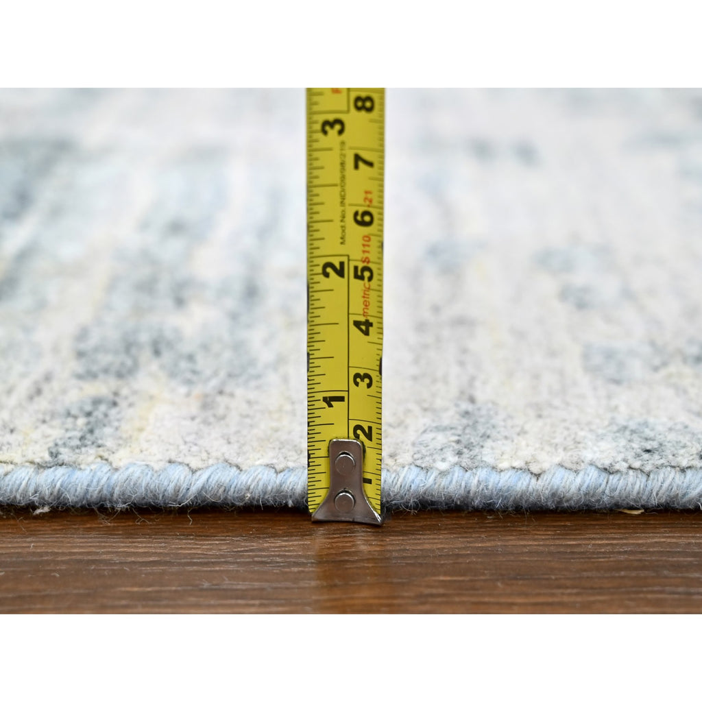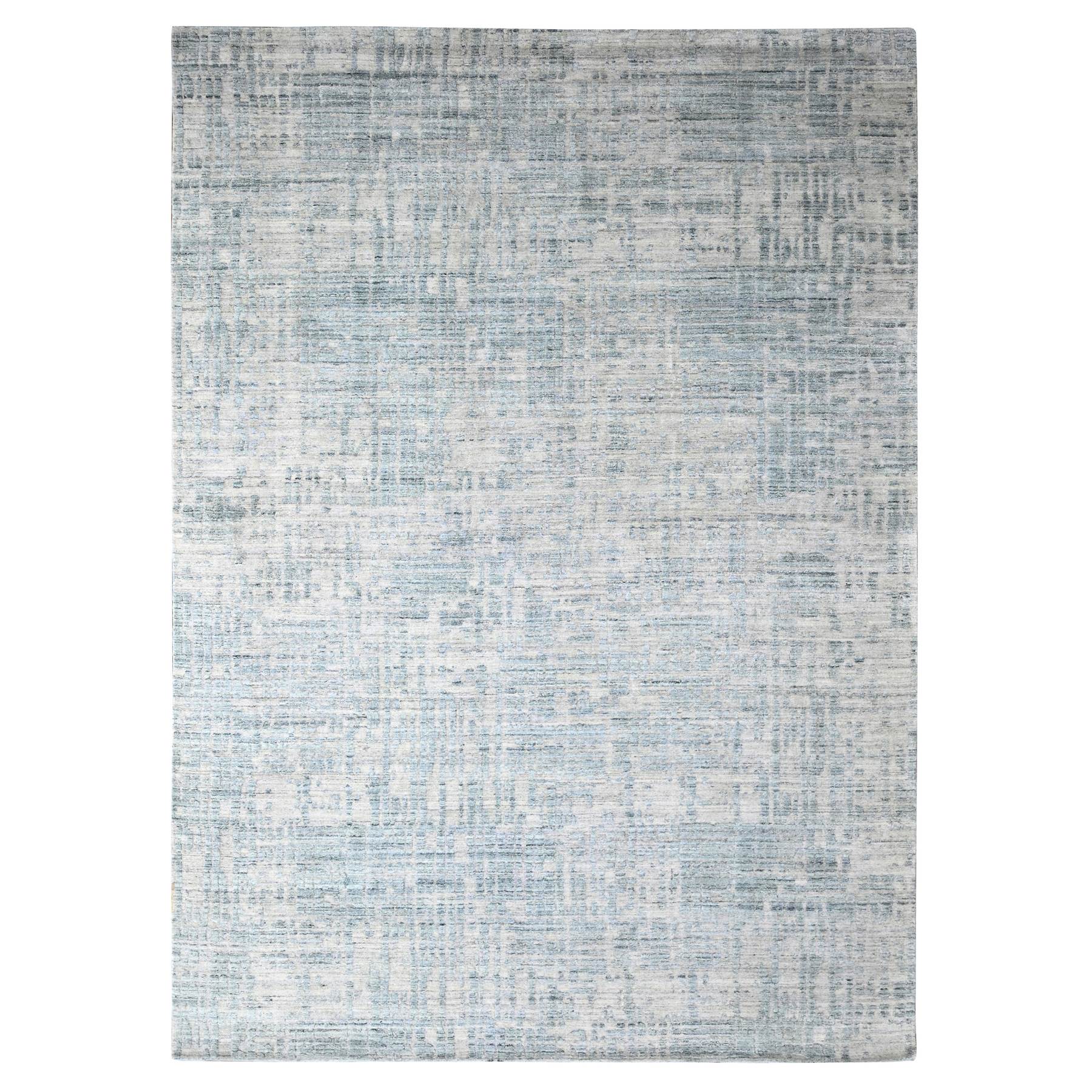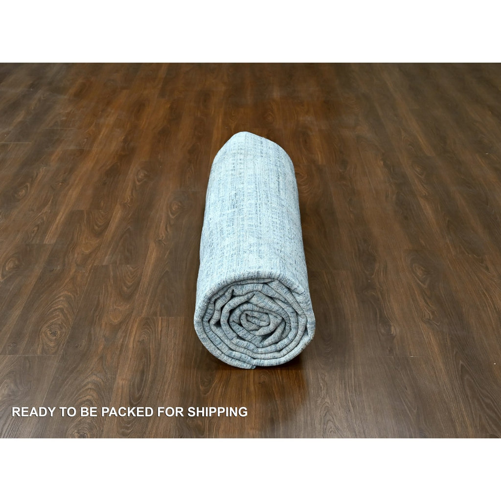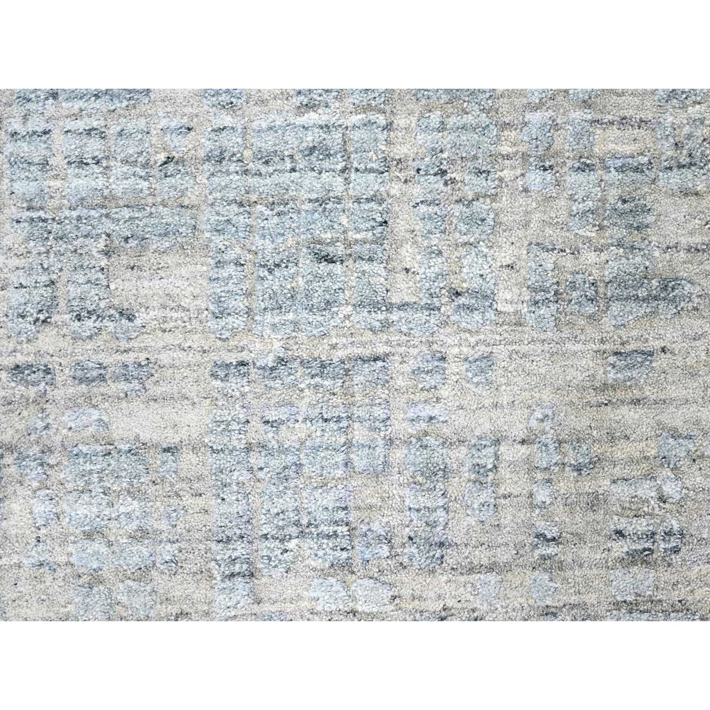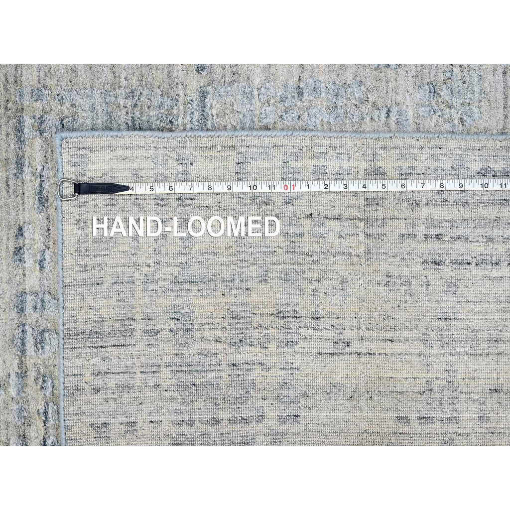 9'4"x13'6" Storm Gray, Modern Design, Hand Loomed, Wool And Plant Based Silk, Textured Pile, Oriental Rug FWR61740