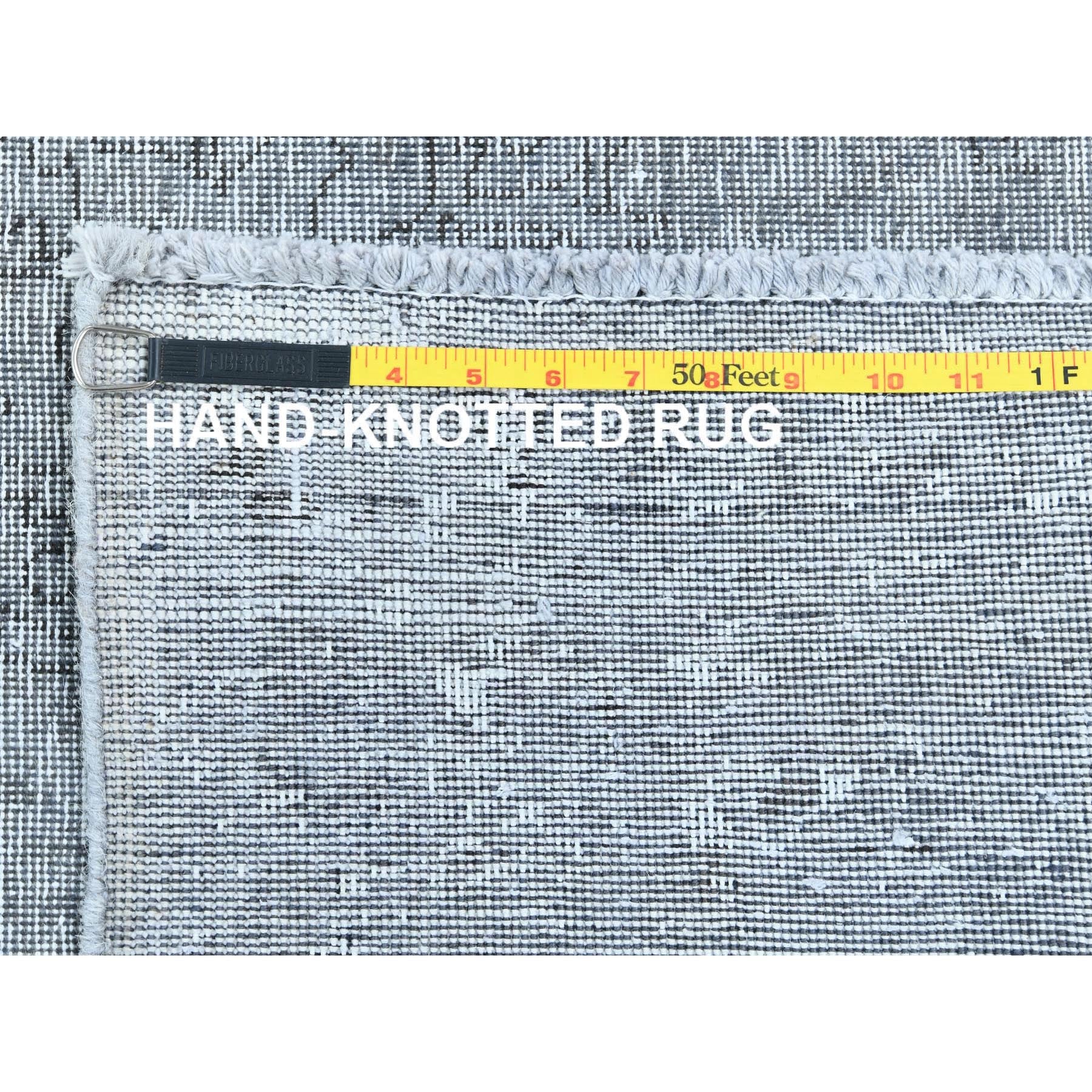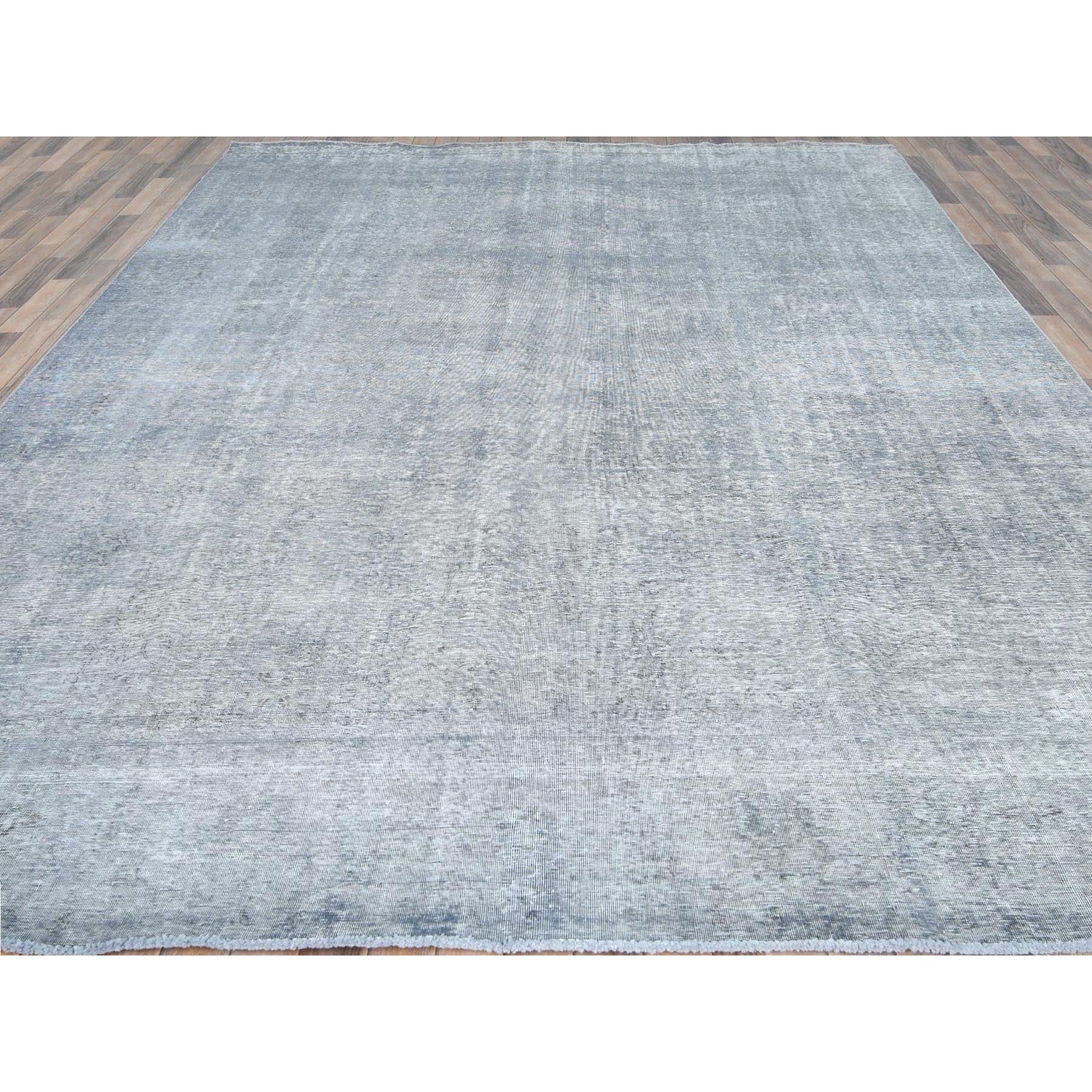 9'5"x12'2" Light Gray, Shaved Down Rustic Look, Worn Wool Hand Knotted, Vintage Persian Tabriz, Oriental Rug FWR492582