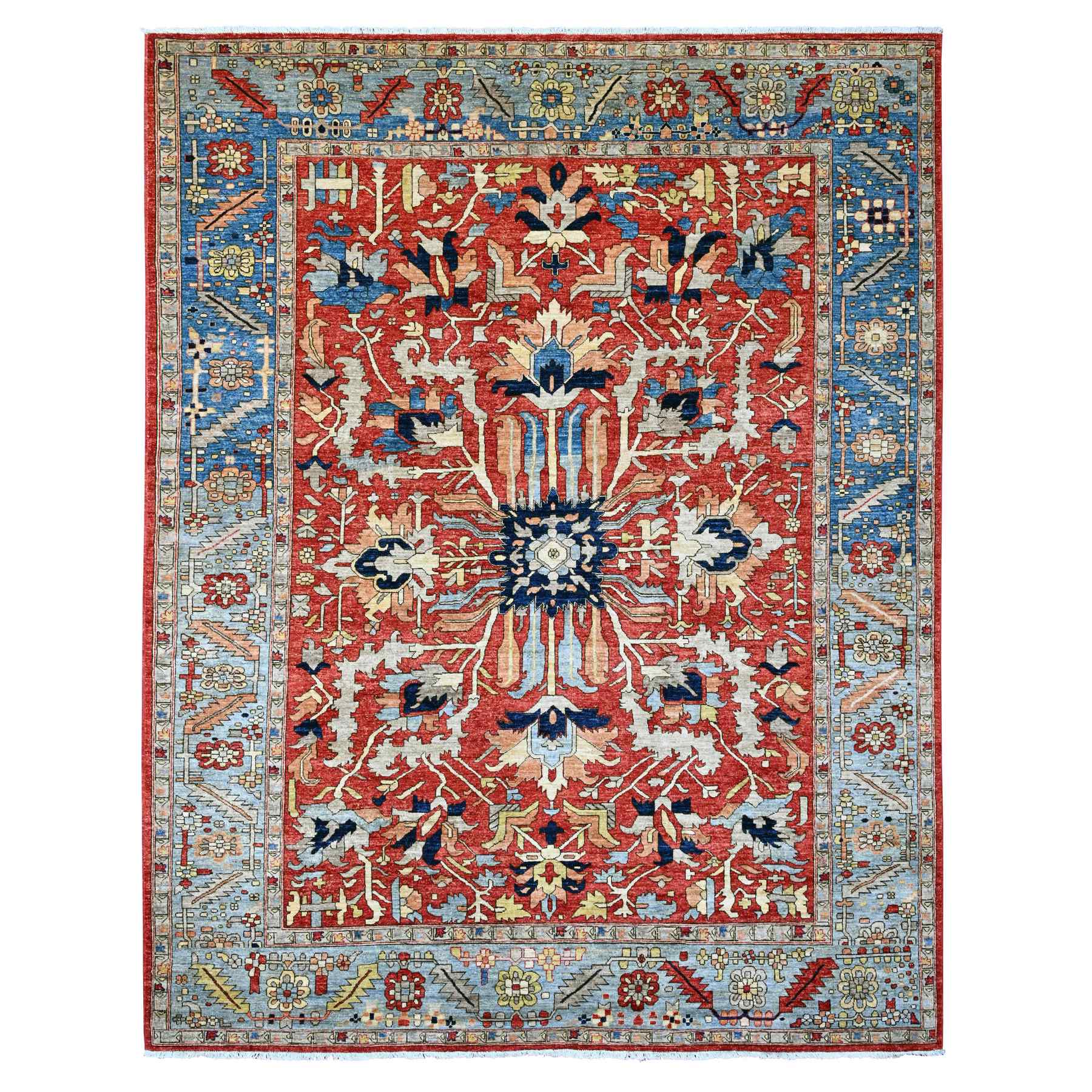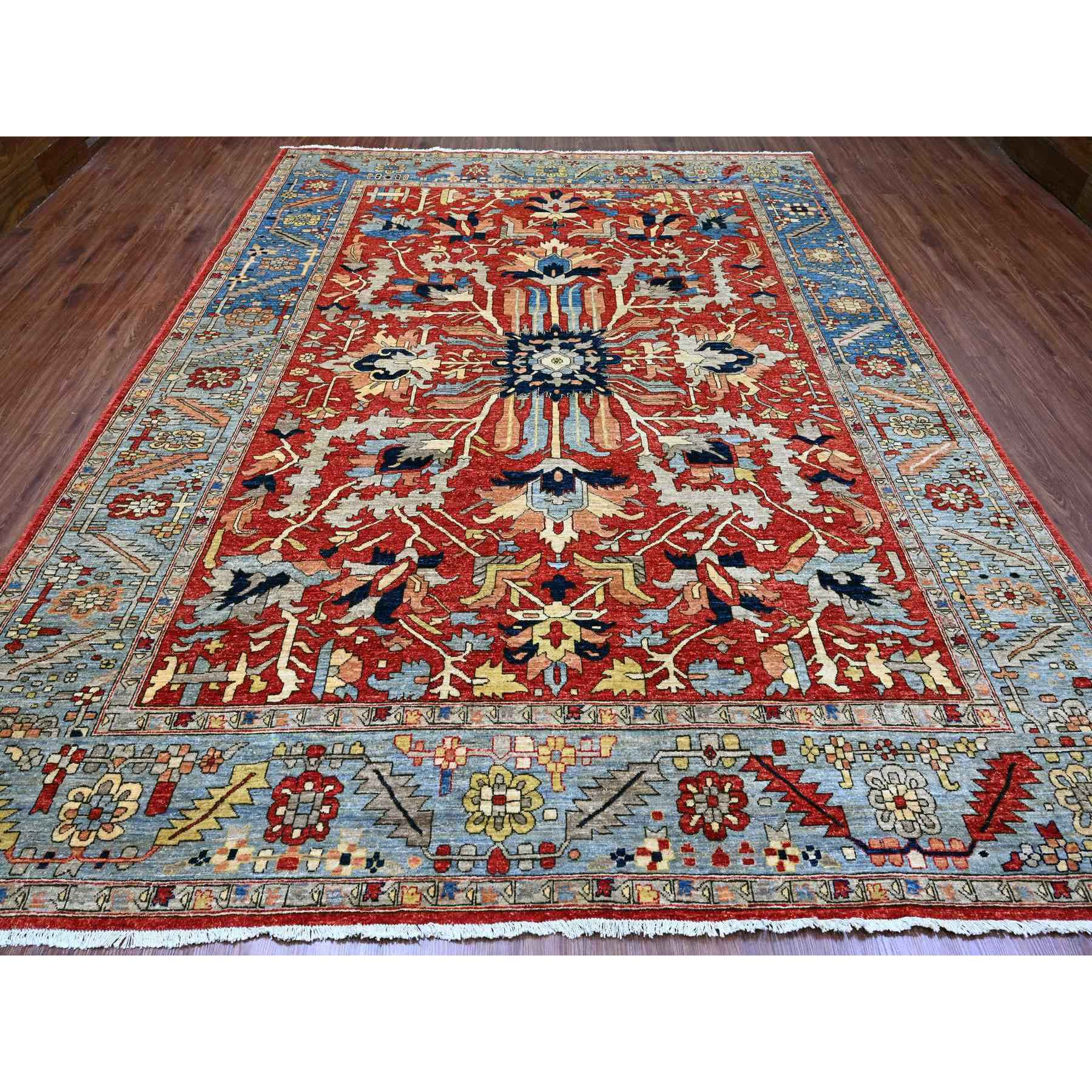 9'6"x12' Crimson Red, Hand Knotted, Aryana Collection With Heriz Design, Distinct Abrash, Vegetable Dyes, 100% Wool, Oriental Rug FWR120510