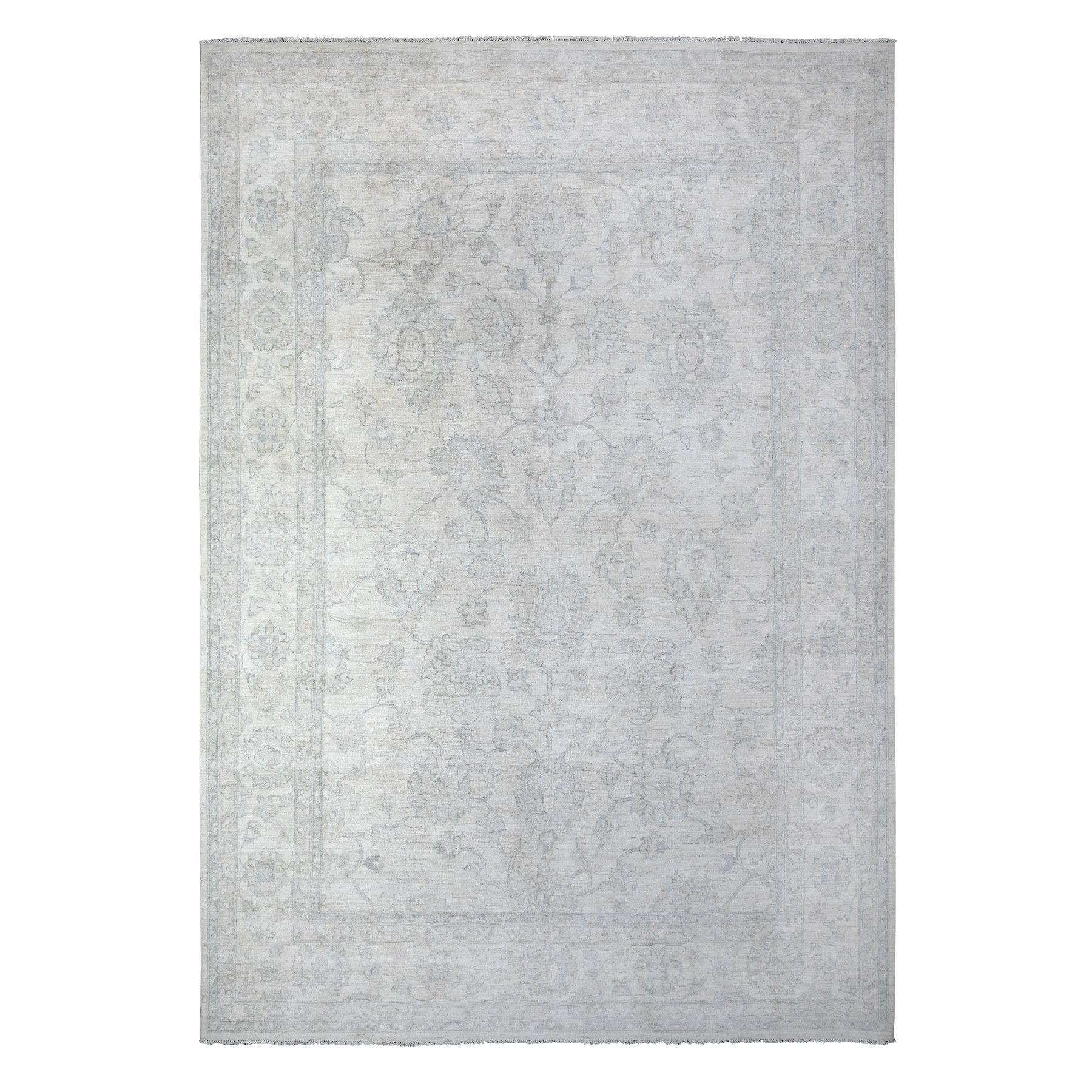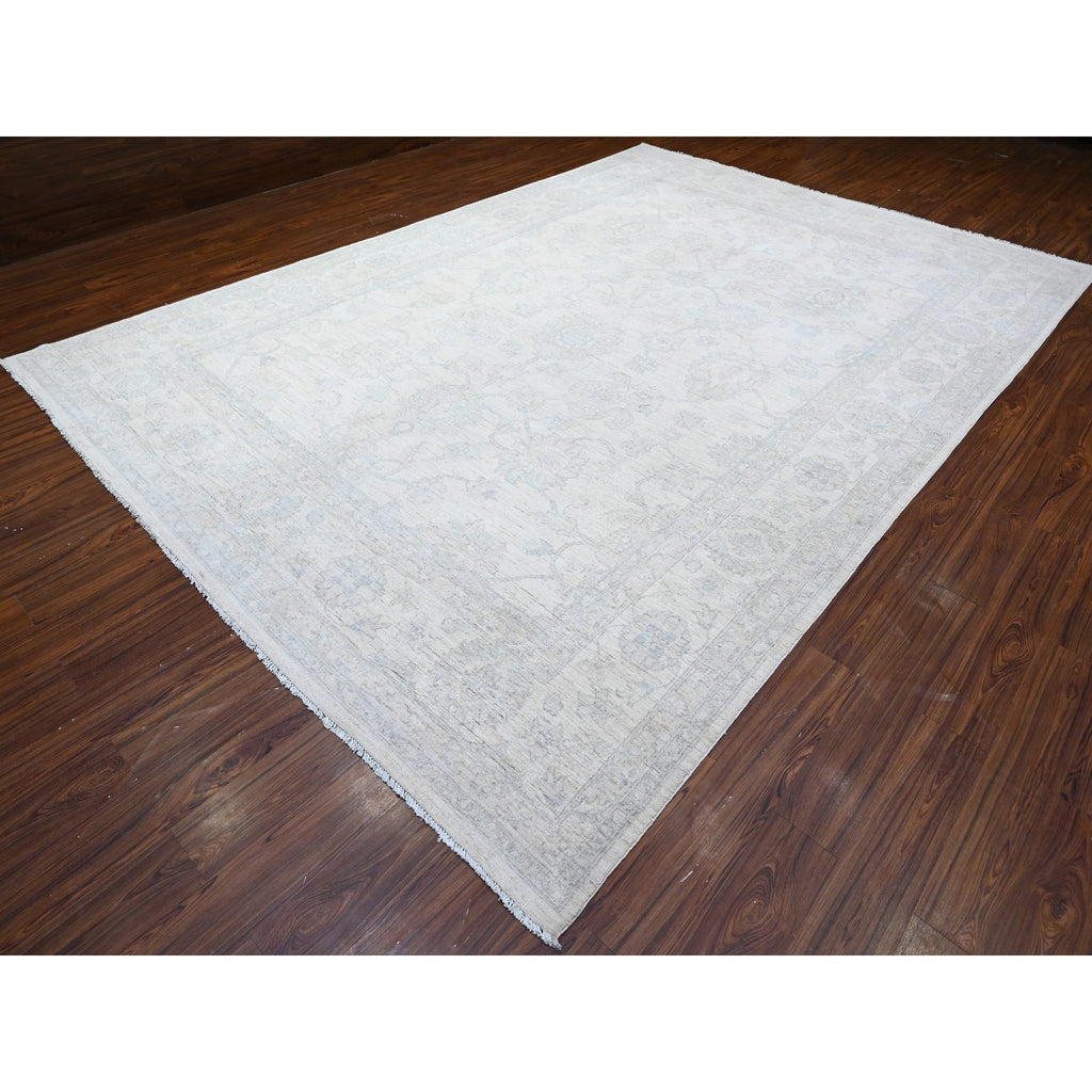 9'7"x13'10" City Loft White, Faded Washed Out Peshawar, Hand Knotted, Organic Wool, Oriental Rug FWR531570