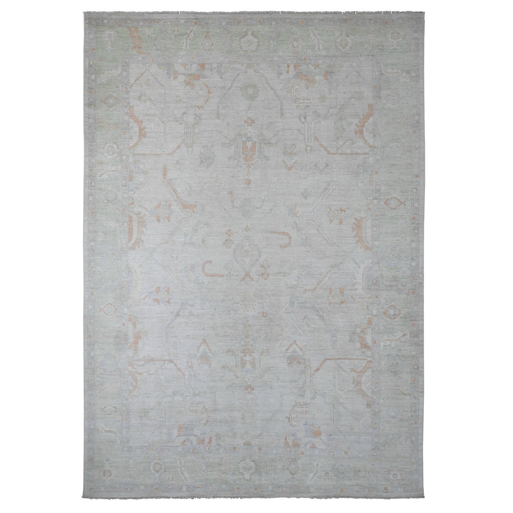 9'7"x13'6" Chiffon White, Afghan Angora Oushak With All Over Vines Design, Natural Dyes, 100% Wool, Hand Knotted, Oriental Rug FWR121428