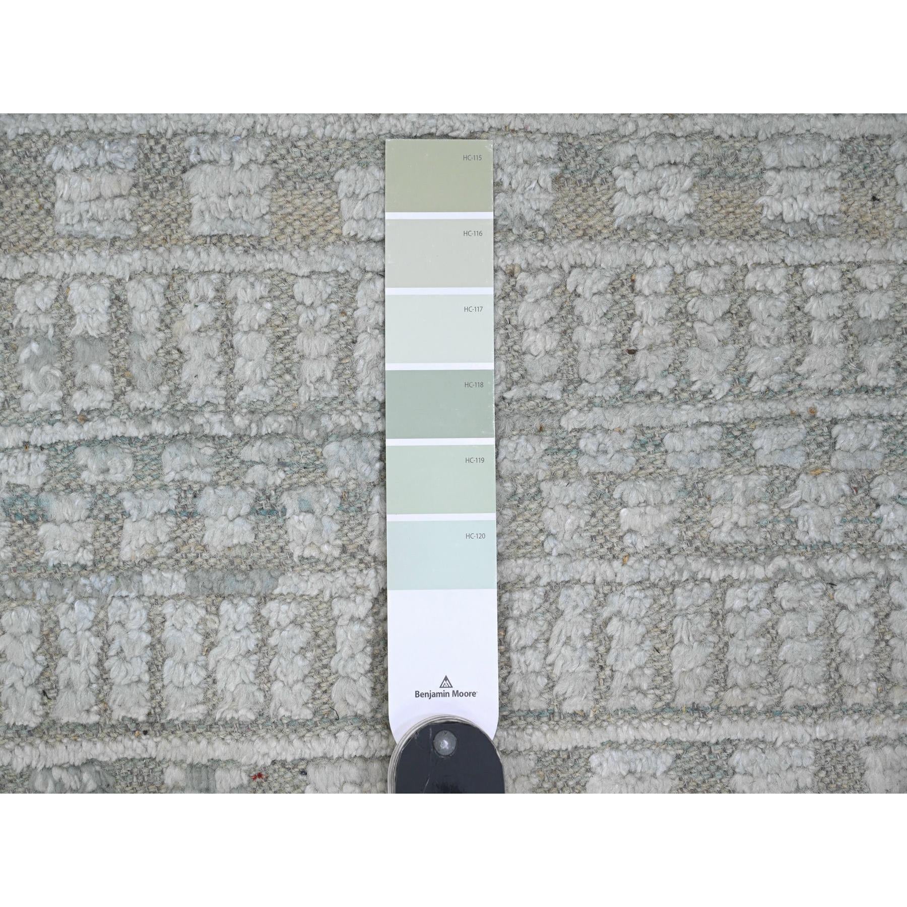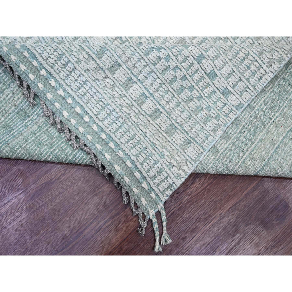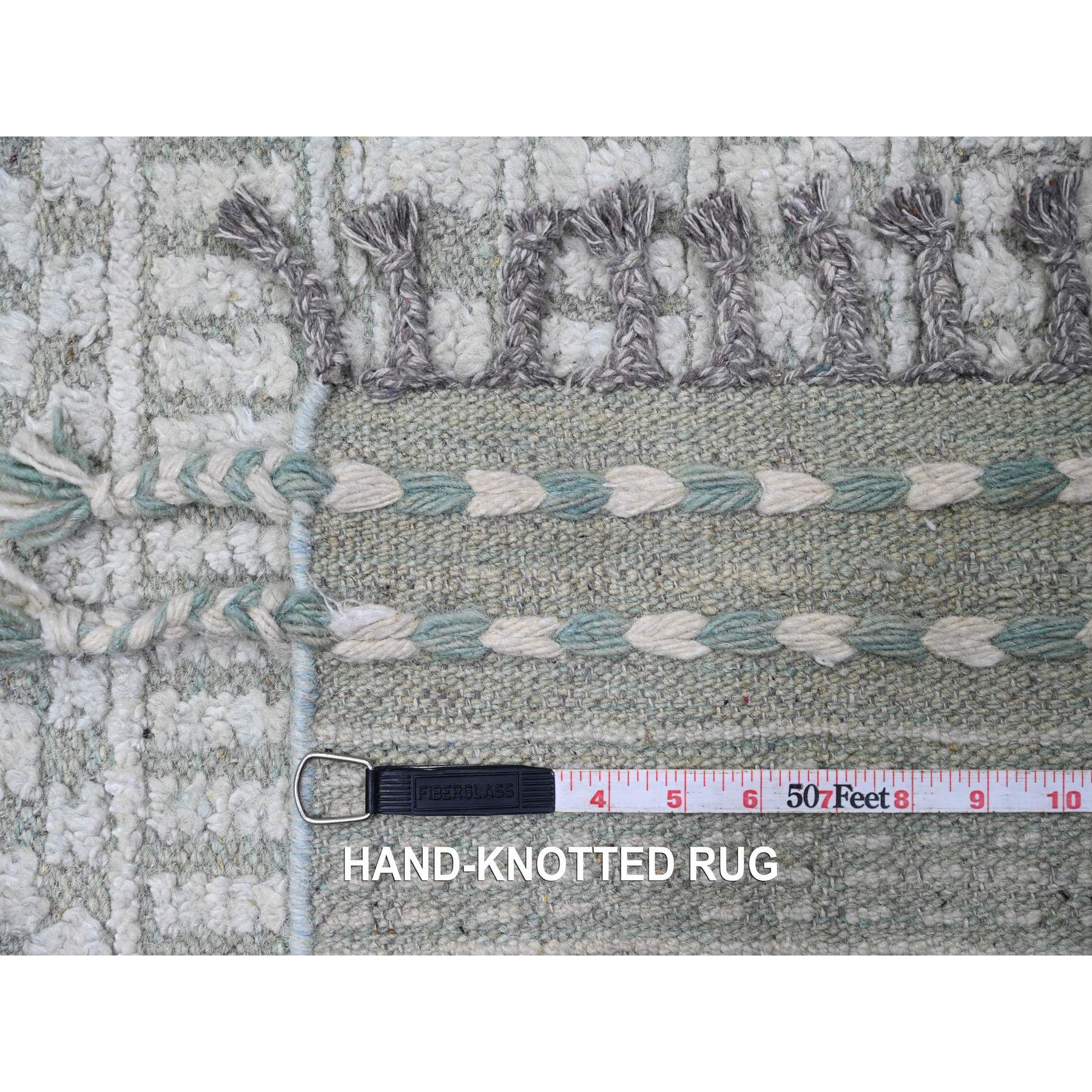 9'7"x14'3" Light Green, Moroccan Weave With Geometric Pattern, Hand Knotted, Soft Wool, Tone On Tone, Textured Pile, Oriental Rug FWR124980