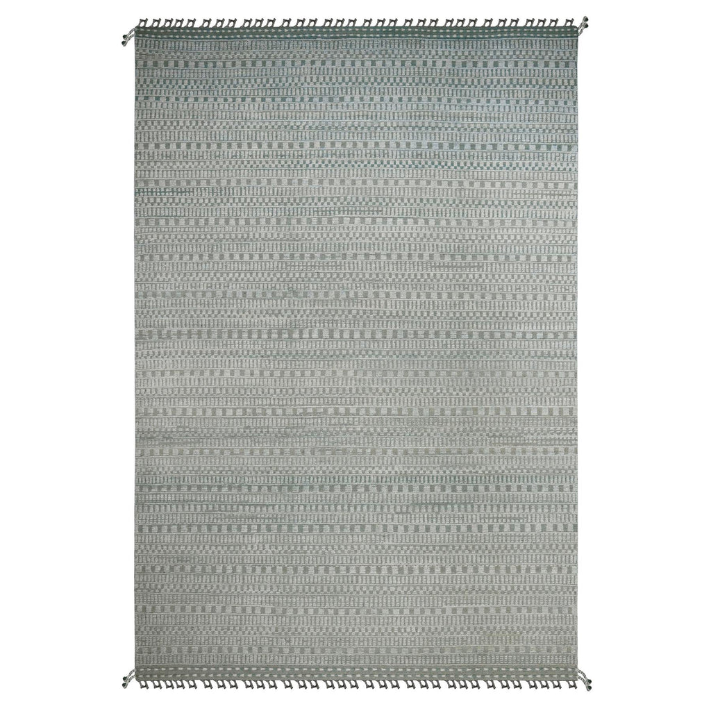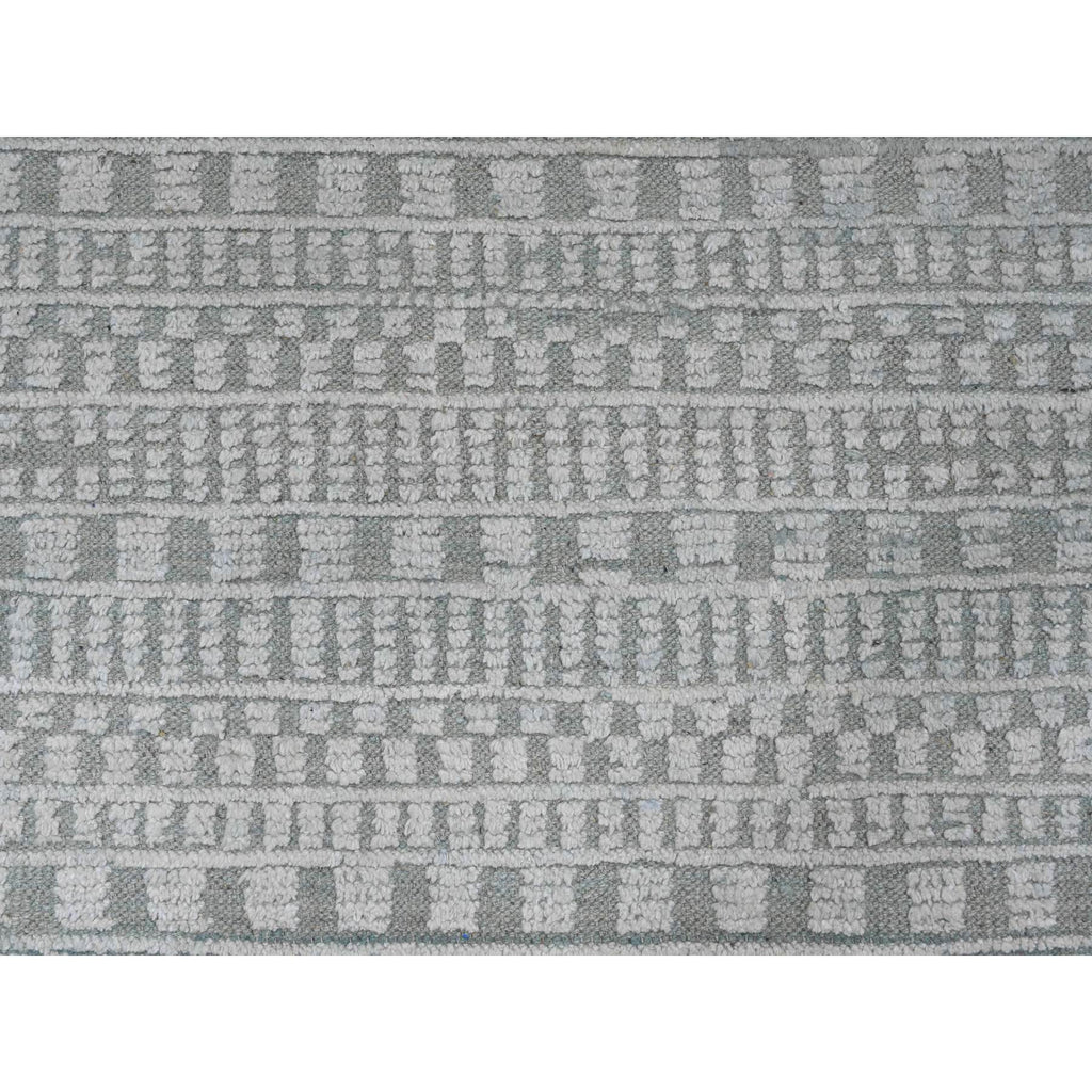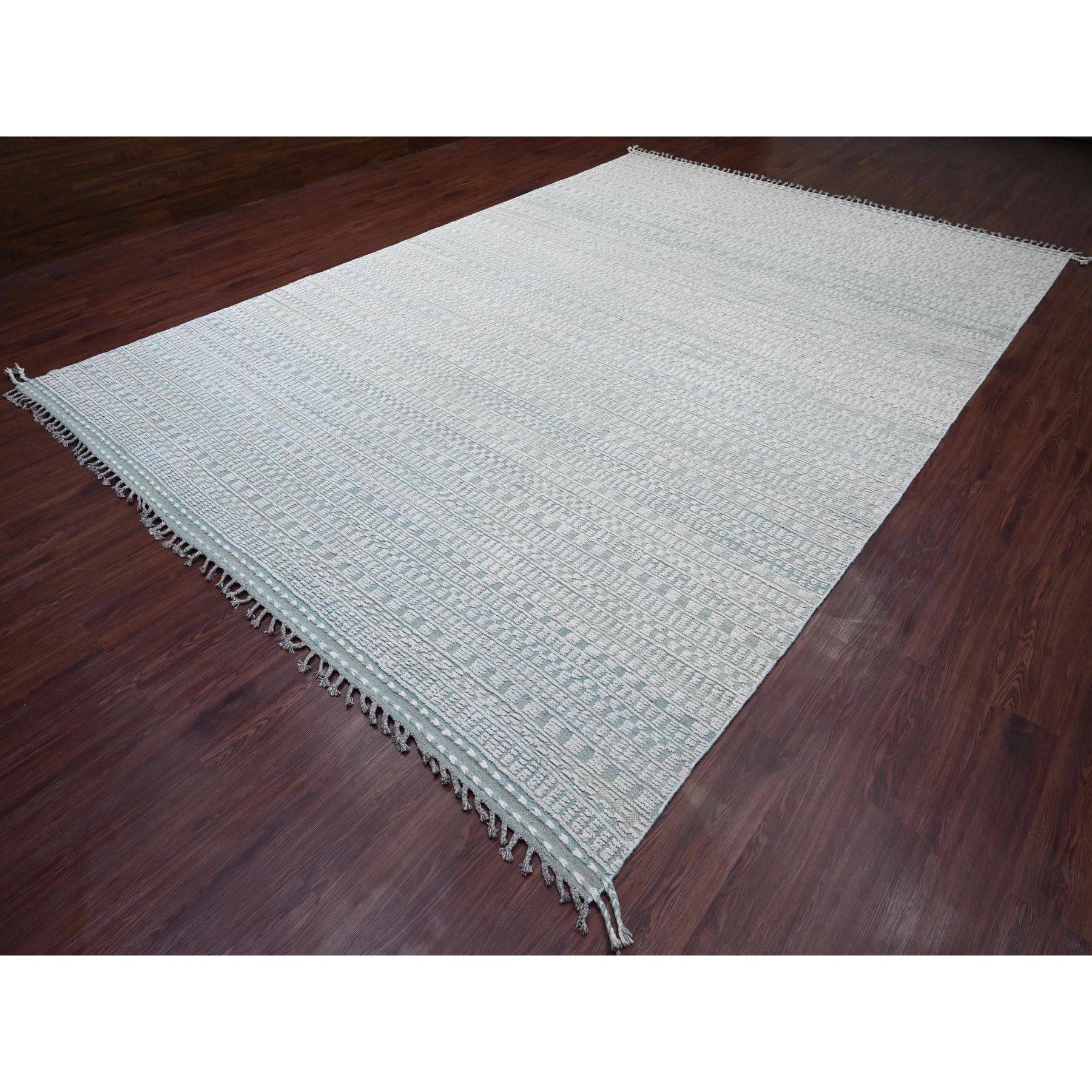 9'7"x14'3" Light Green, Moroccan Weave With Geometric Pattern, Hand Knotted, Soft Wool, Tone On Tone, Textured Pile, Oriental Rug FWR124980