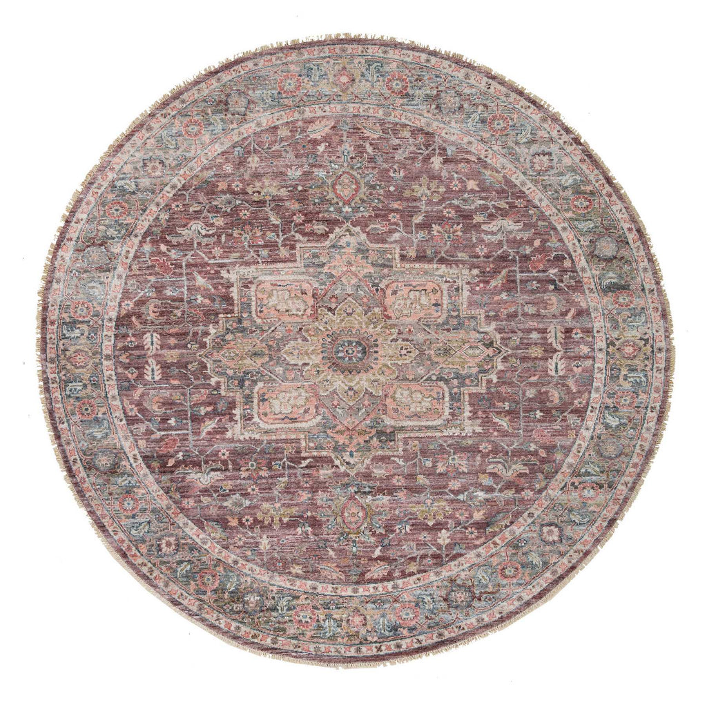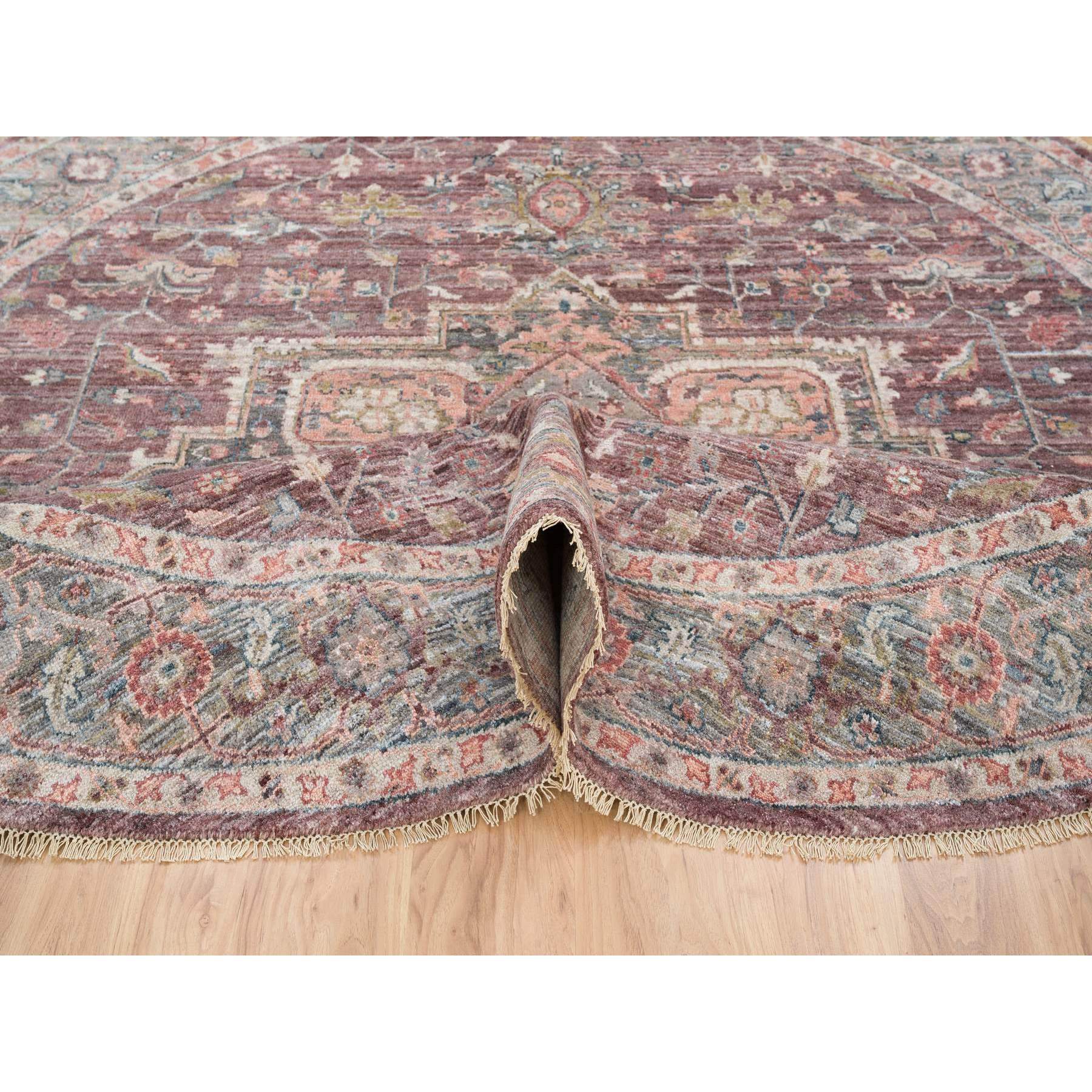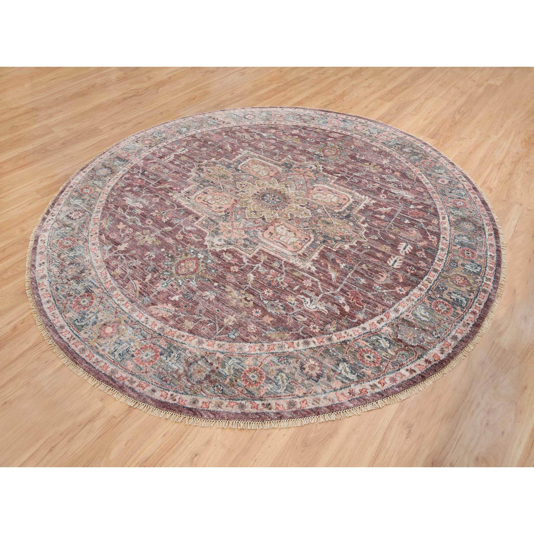 9'7"x9'7" Light Burgundy, Heriz Revival, Thick And Plush Soft Pile, Vegetable Dyes, Natural Wool, Hand Knotted, Round Oriental Rug FWR393798
