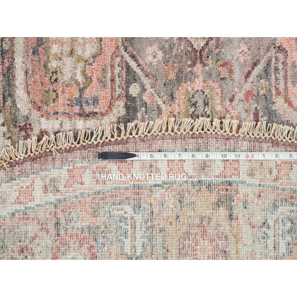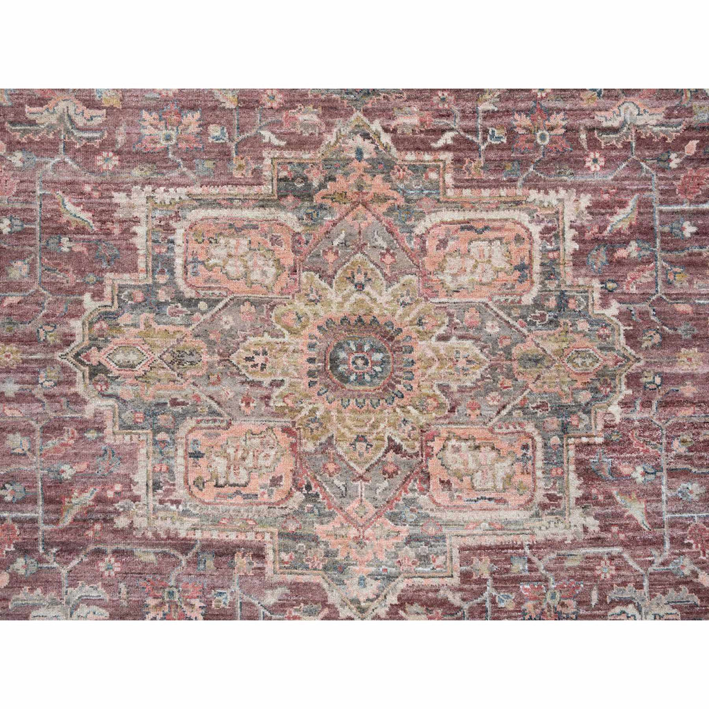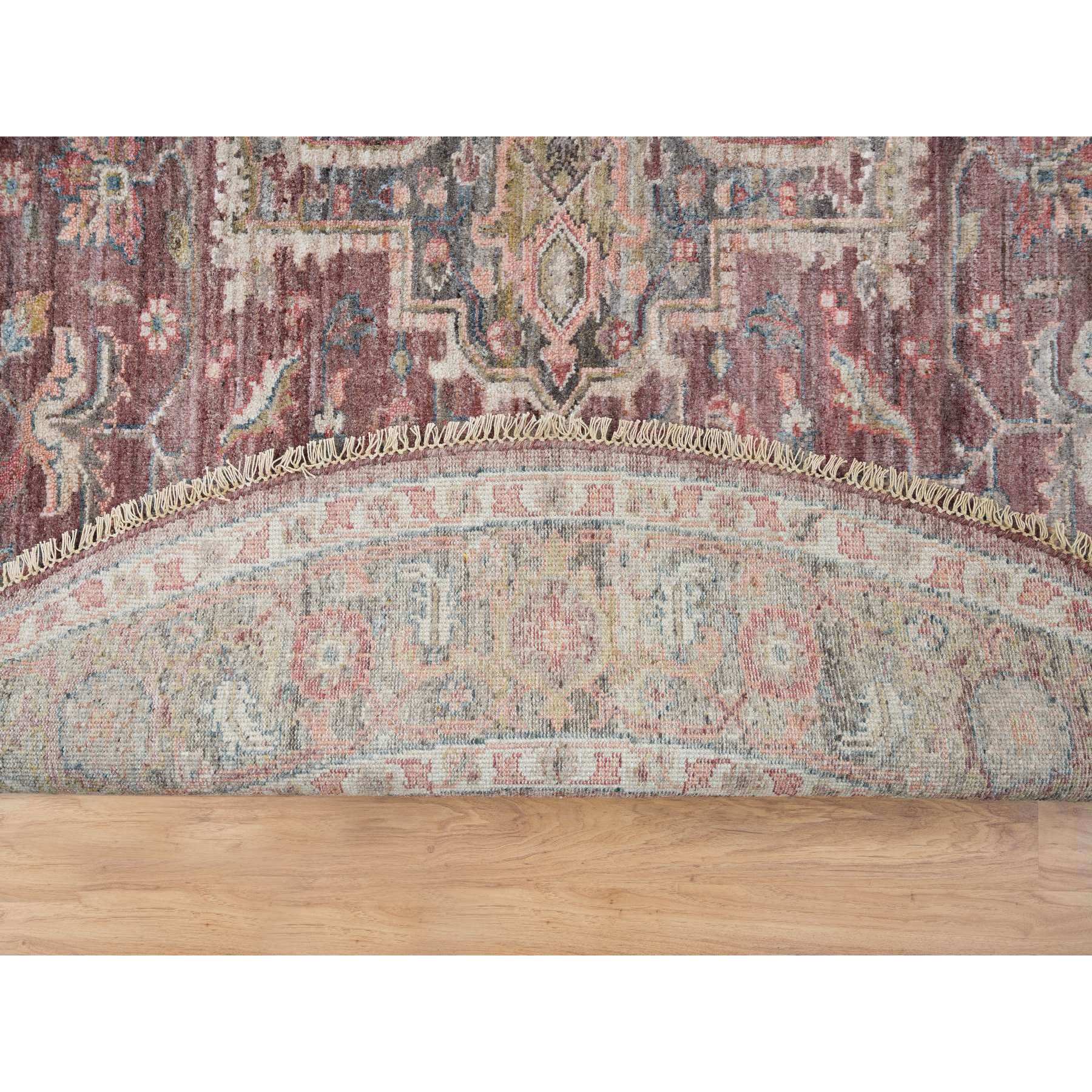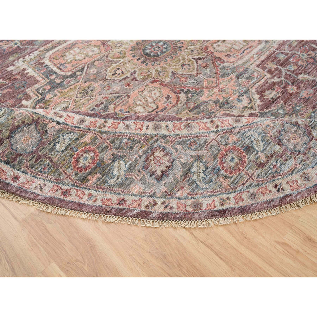 9'7"x9'7" Light Burgundy, Heriz Revival, Thick And Plush Soft Pile, Vegetable Dyes, Natural Wool, Hand Knotted, Round Oriental Rug FWR393798