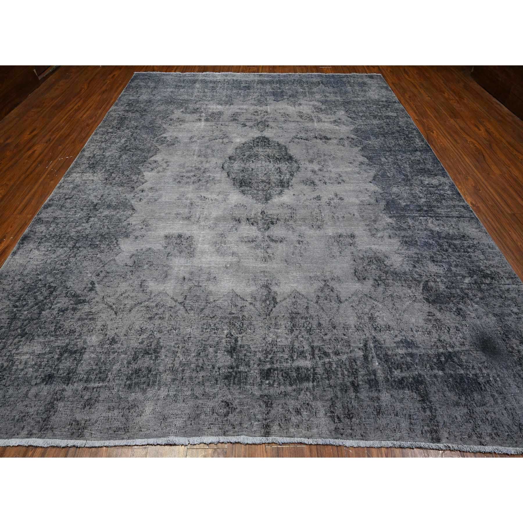 9'8"x12'6" Agreeable Gray, Distressed Look Worn Wool, Professionally Secured Ends, Hand Knotted, Vintage Persian Kerman, Clean And Soft, Cropped Thin, Oriental Rug FWR536712
