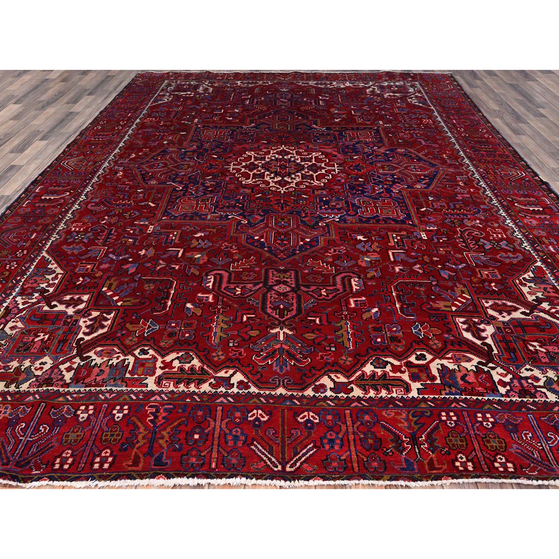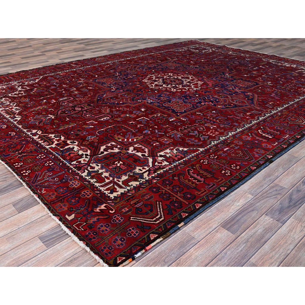 9'8"x12'7" Carmine Red, Sides And Ends Secured Professionally, Vintage Persian Heriz, Good Condition, Tribal Weave, All Natural Wool, Oriental Rug FWR1020