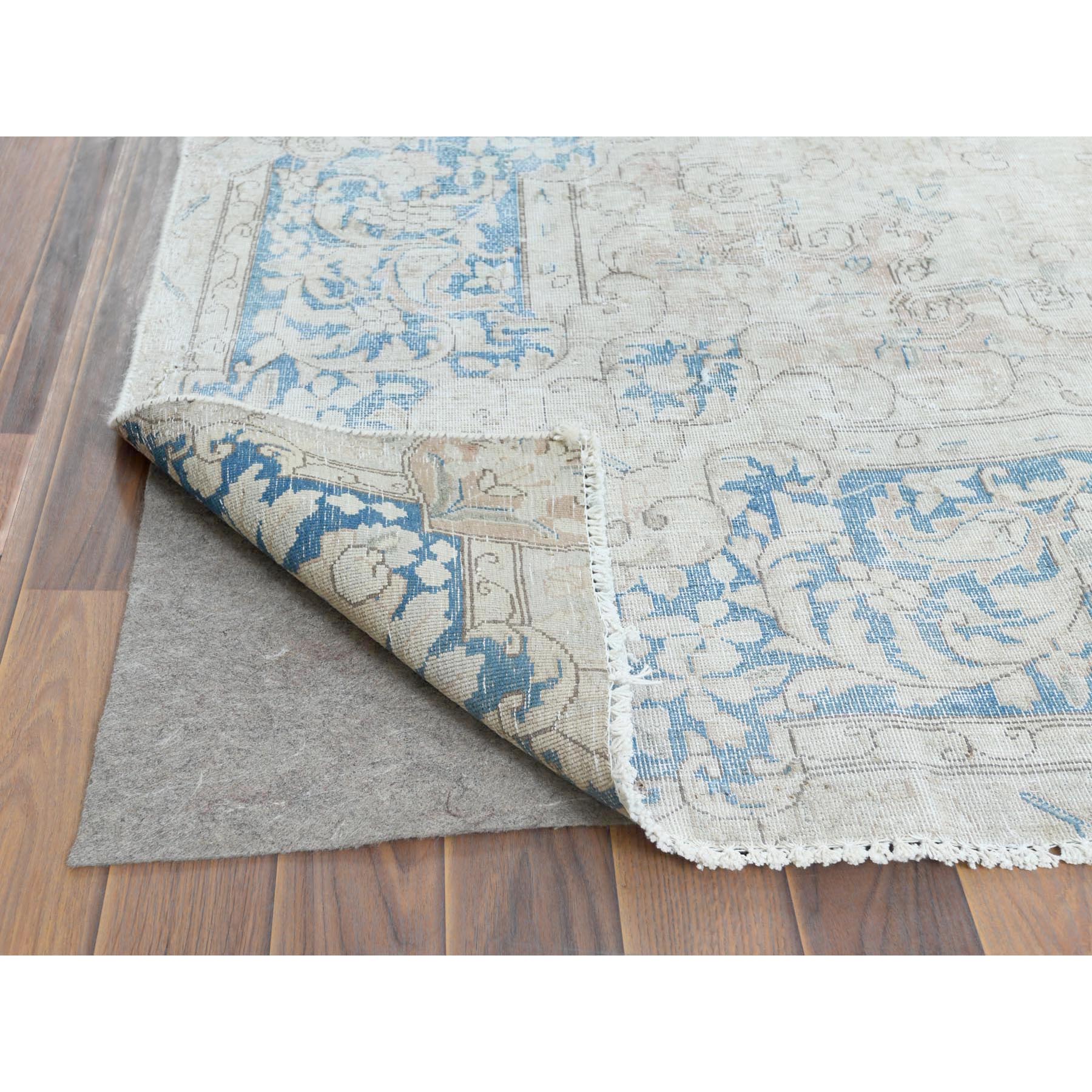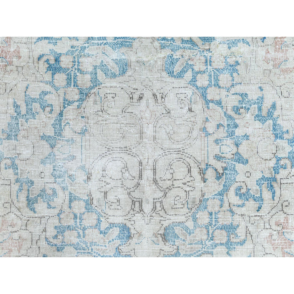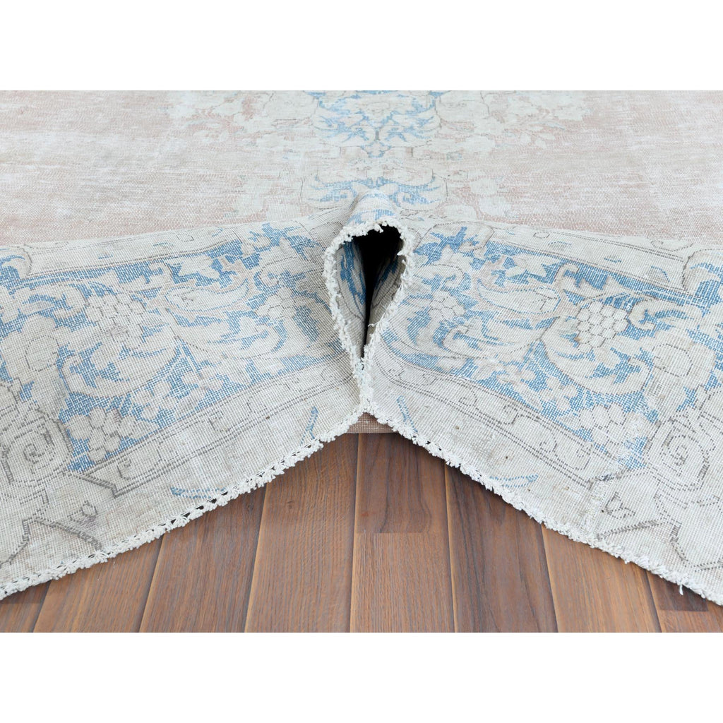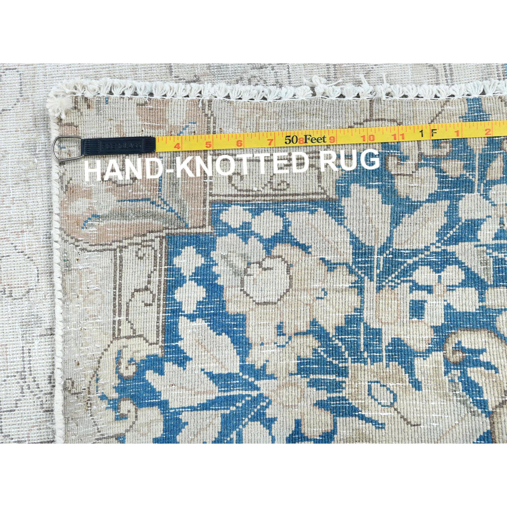 9'8"x12'9" Faded Champagne, Vintage Persian Kerman, Distressed Look, Worn Wool, Cropped Thin, Hand Knotted, Oriental Rug FWR370368
