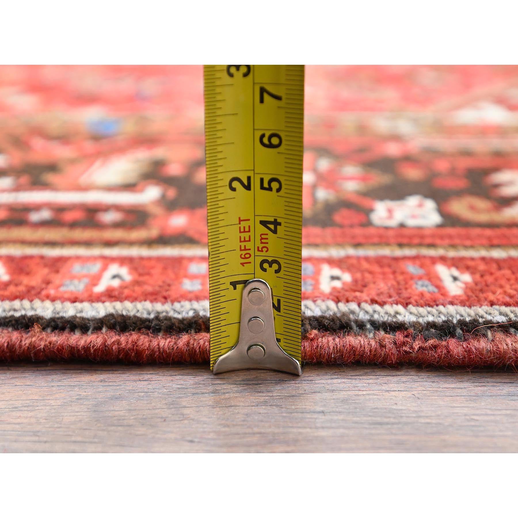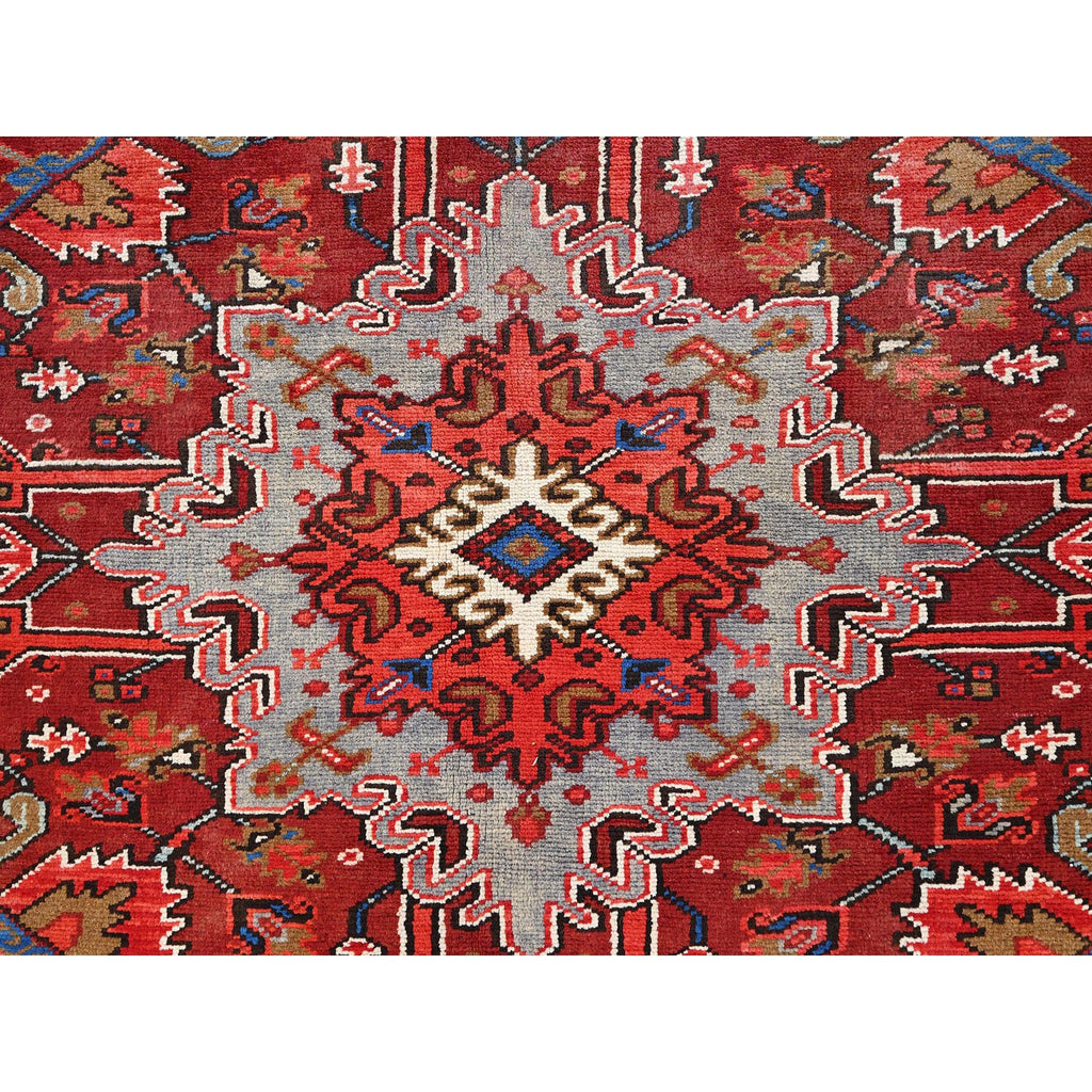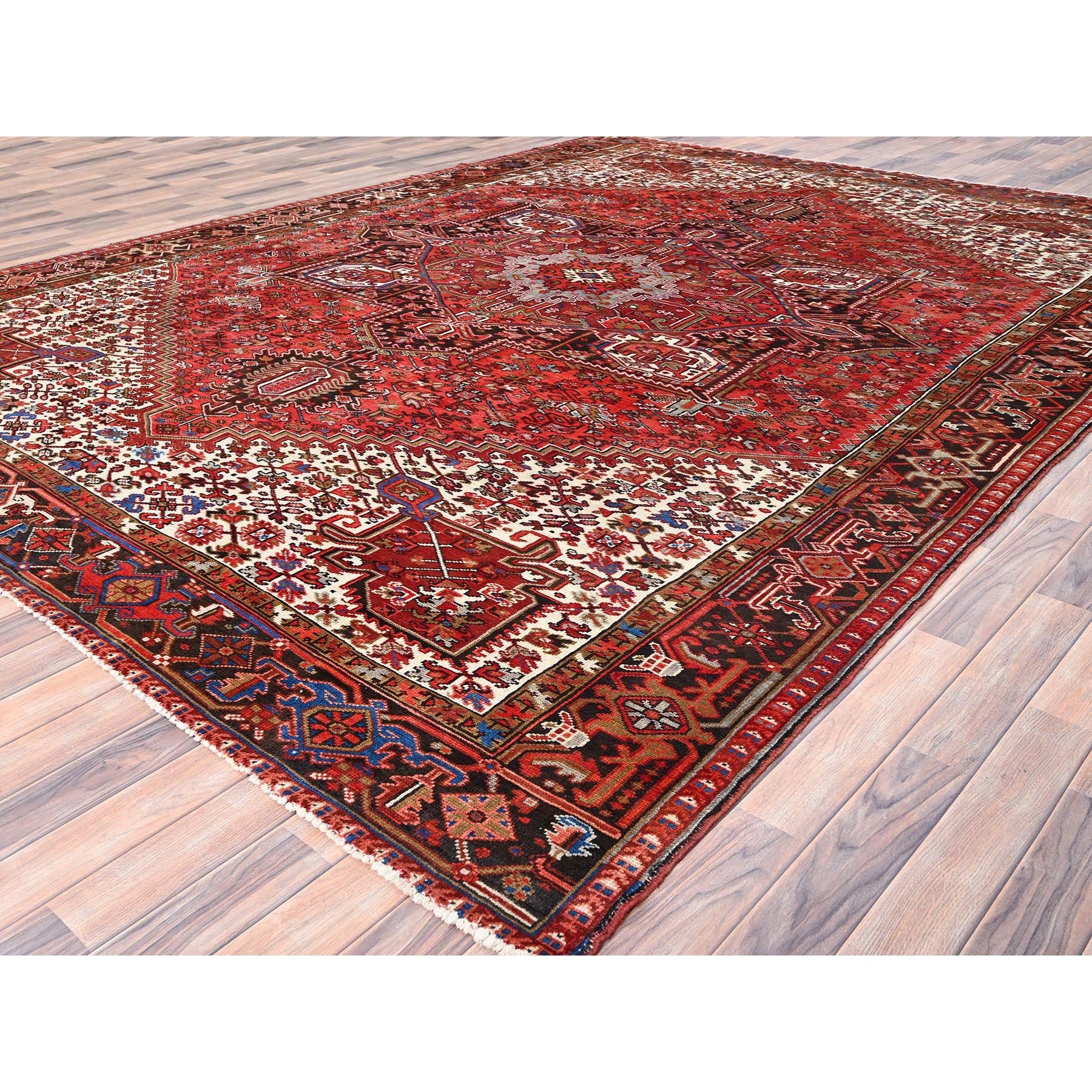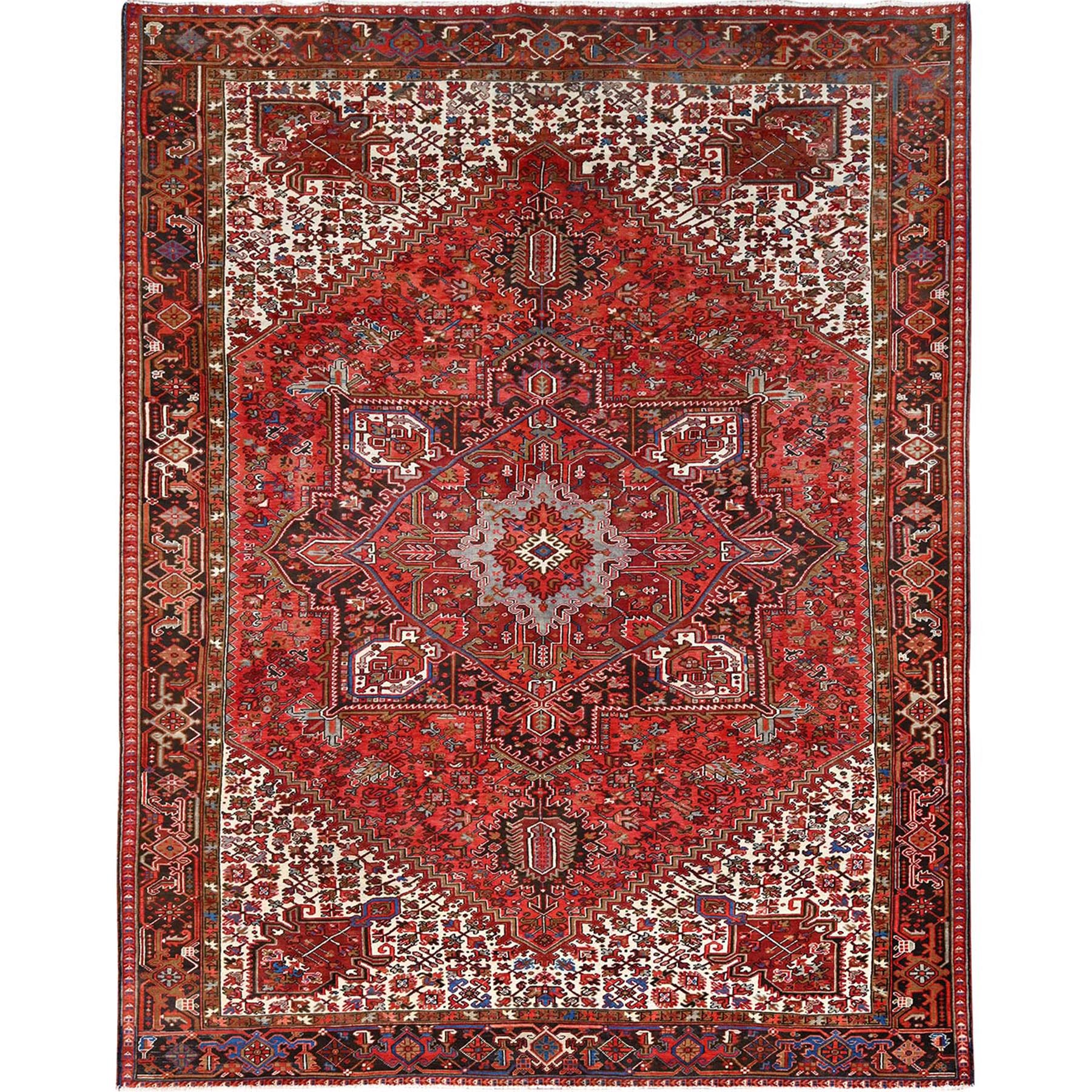 9'8"x12'9" Imperial Red With Ivory Corners, Pure Wool, Hand Knotted, Semi Antique Bohemian Persian Heriz, Good Condition, Rustic Feel, Sides And Ends Professionally Secured, Cleaned, Oriental Rug FWR512190