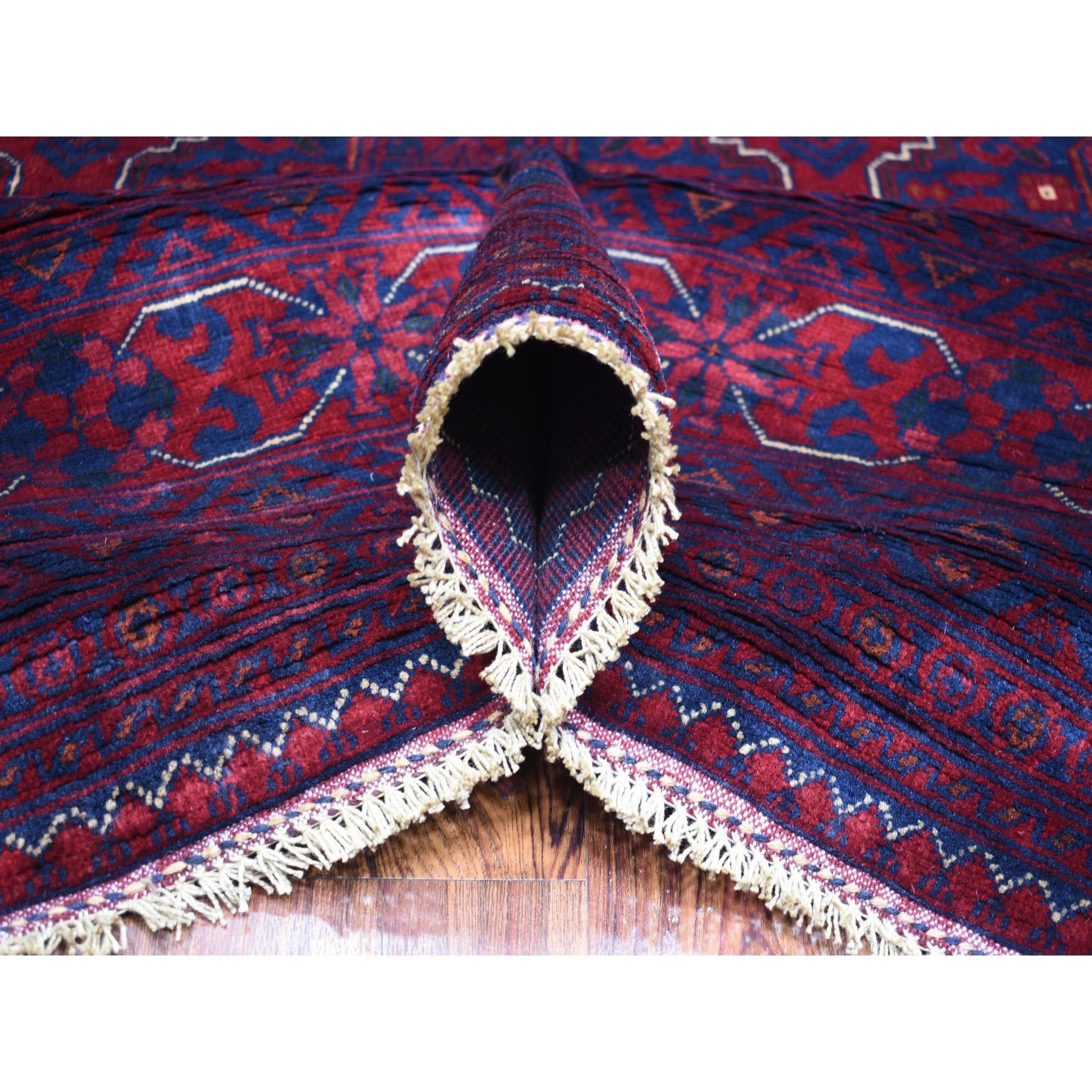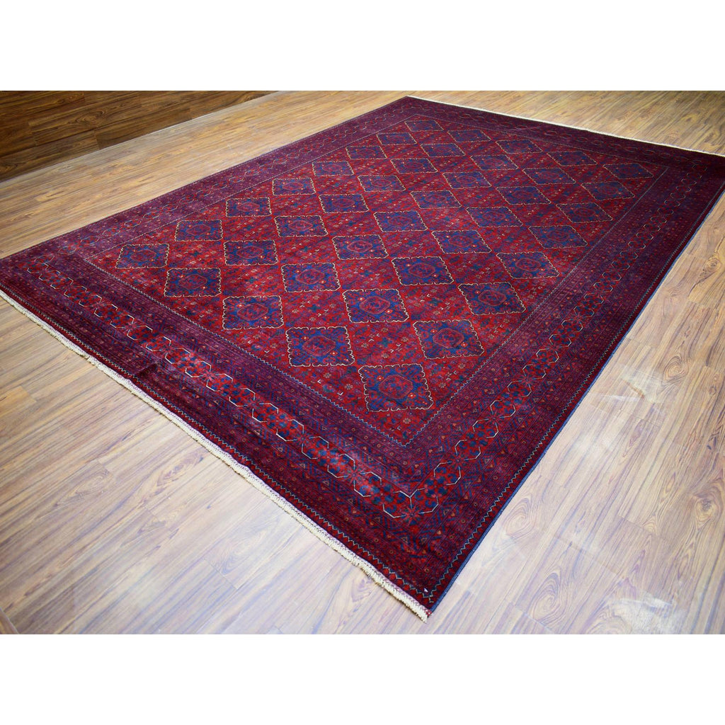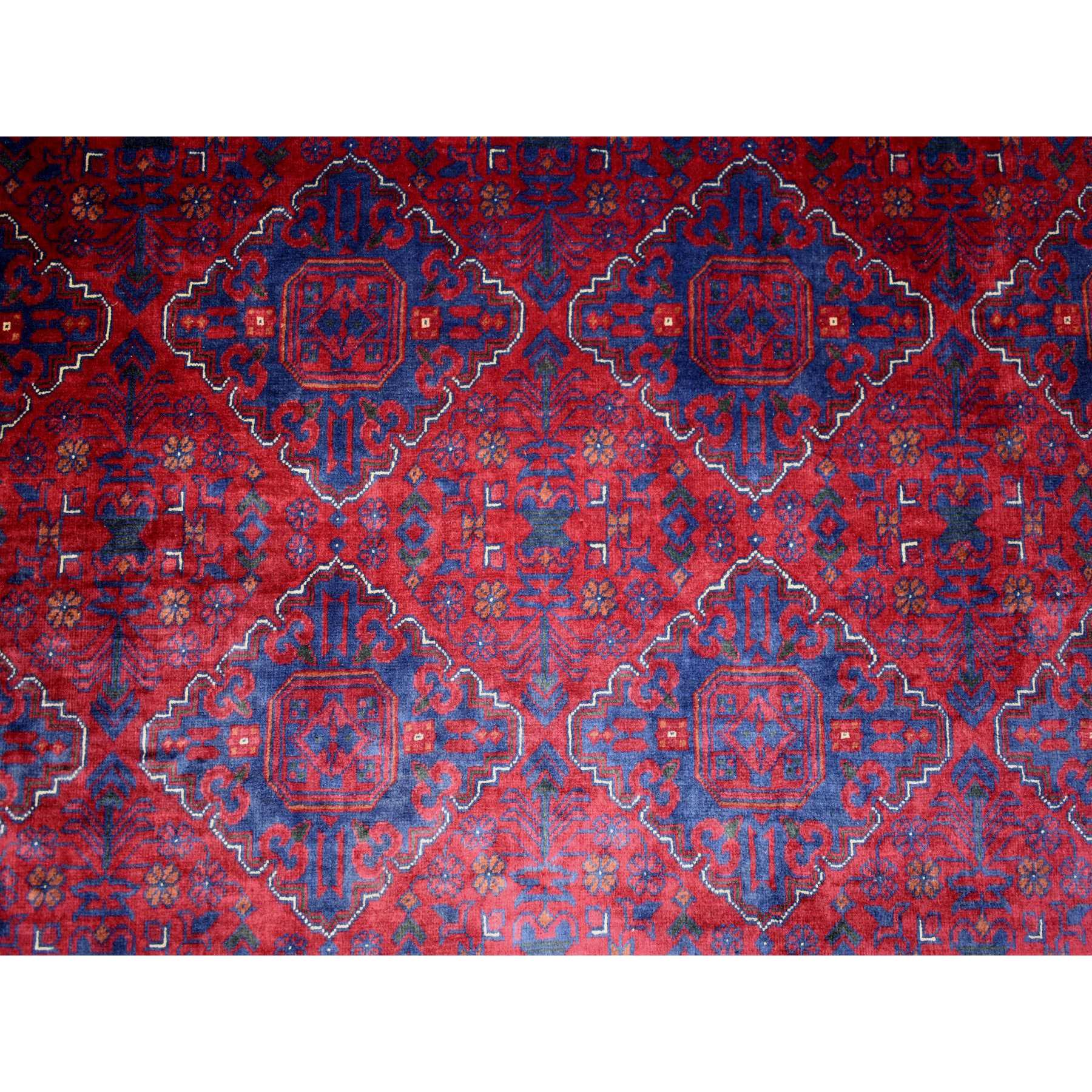 9'8"x13'1" Deep And Saturated Red, Hand Knotted Afghan Khamyab With Geometric Medallions Design, Velvety Wool, Oriental Rug FWR429228