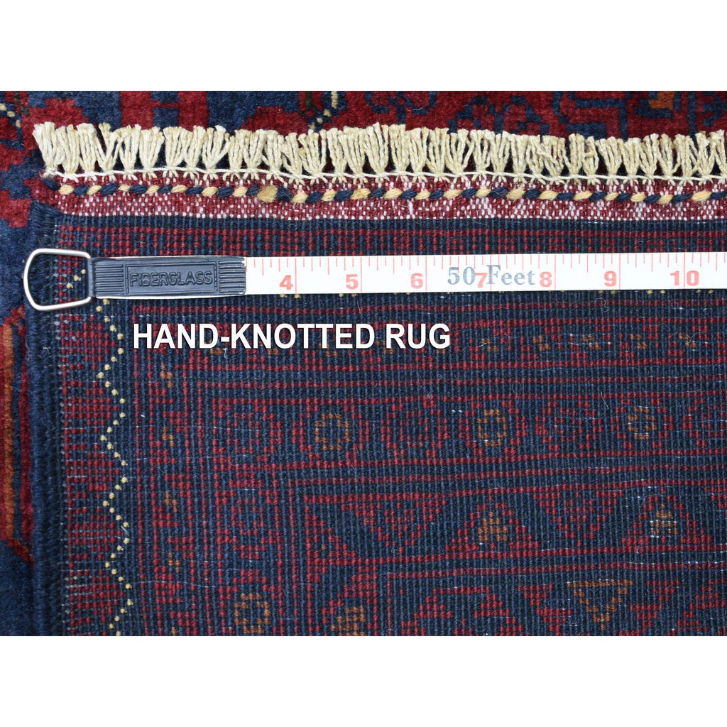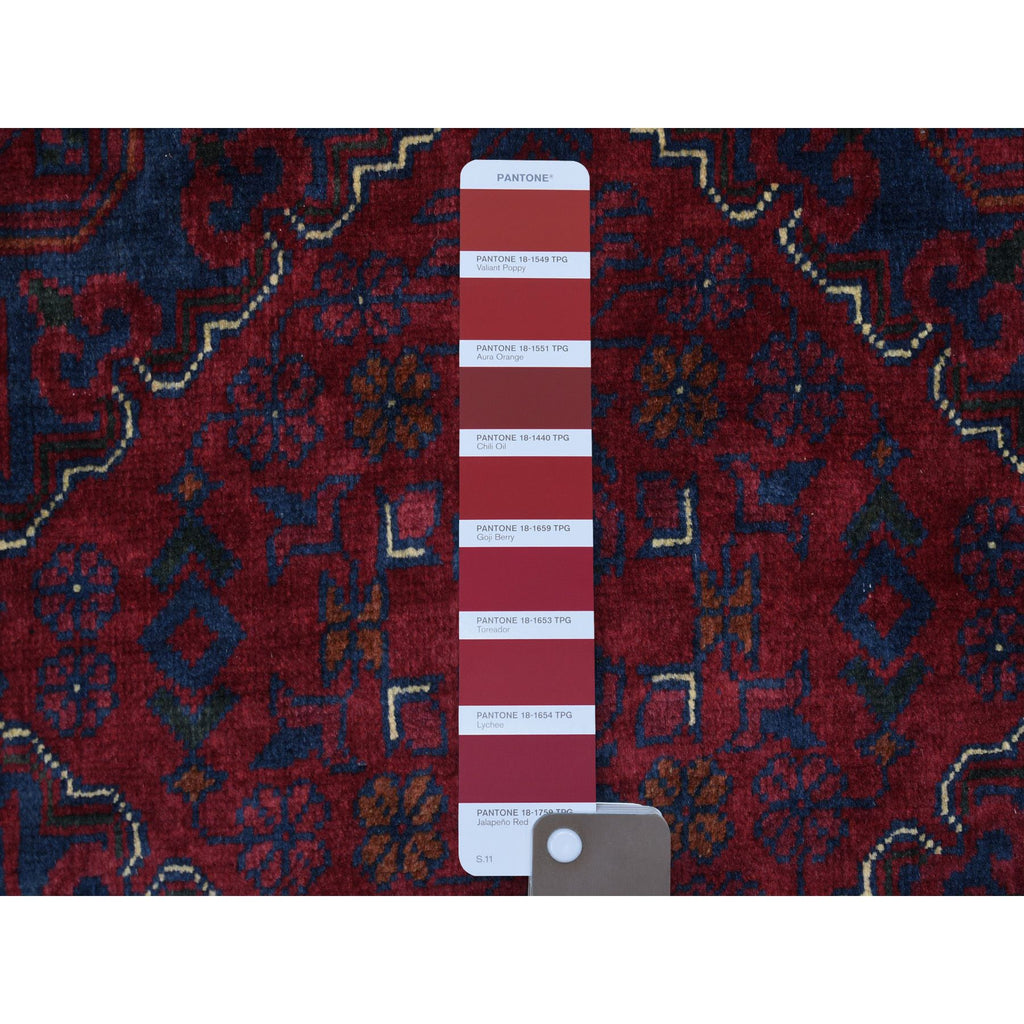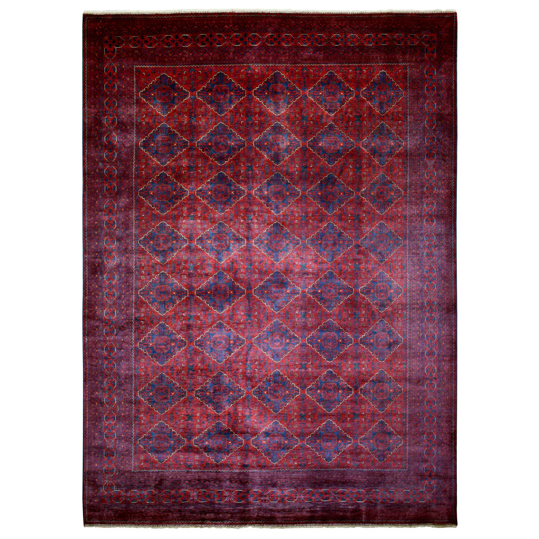 9'8"x13'1" Deep And Saturated Red, Hand Knotted Afghan Khamyab With Geometric Medallions Design, Velvety Wool, Oriental Rug FWR429228