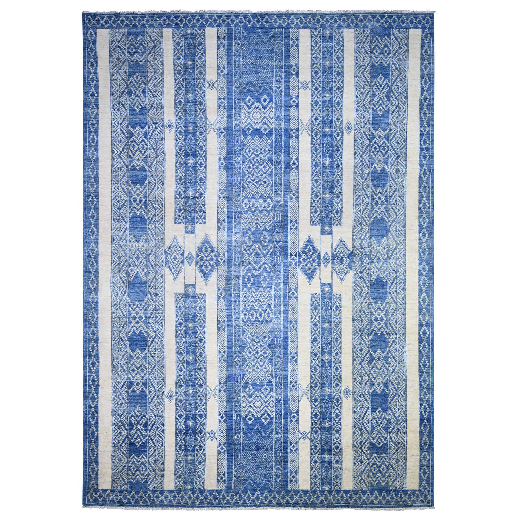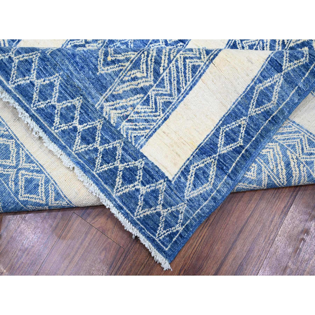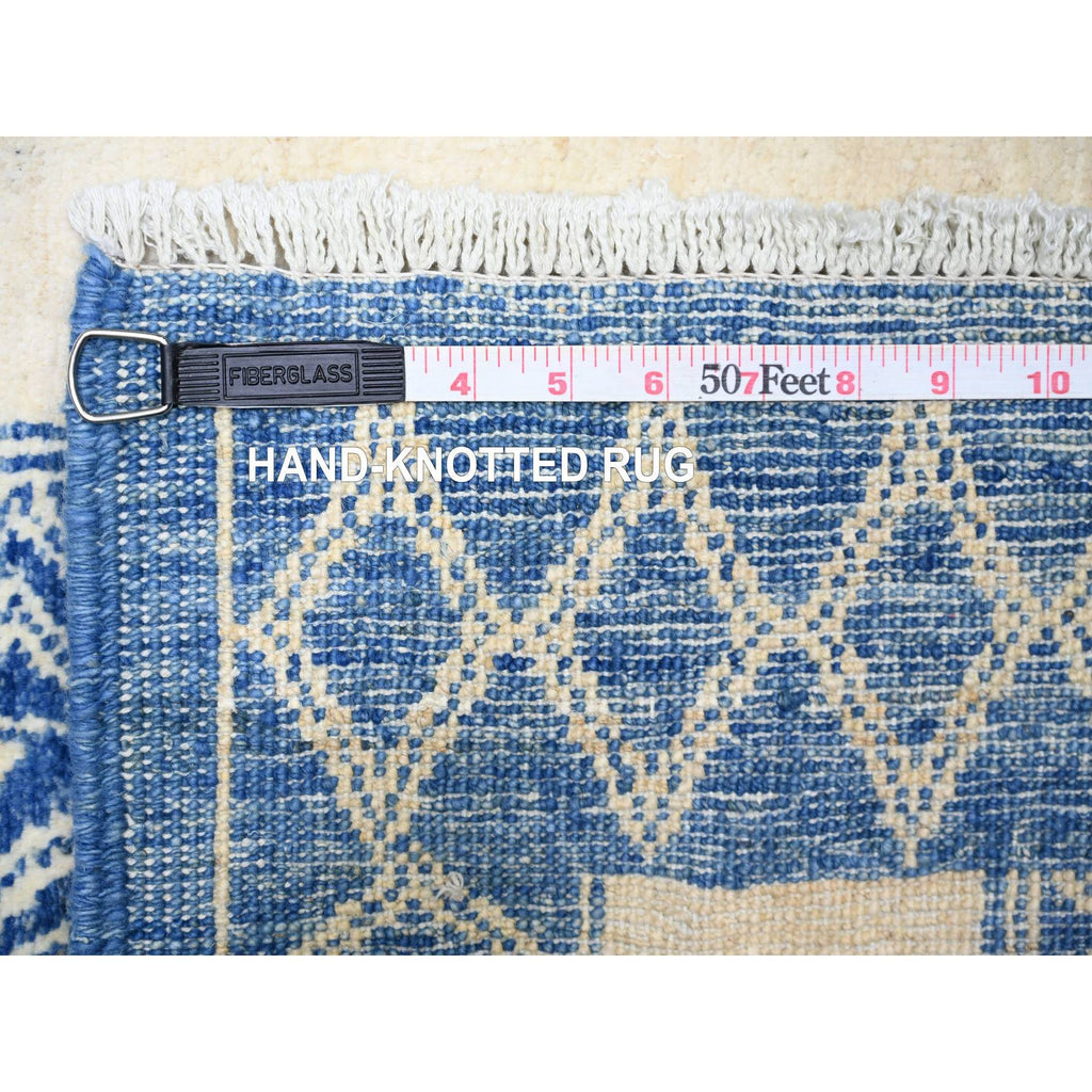 9'8"x13'5" Steel Blue, Pure Wool Hand Knotted, Natural Dyes Finer Peshawar With Intricate Geometric Motifs, Oriental Rug FWR445086