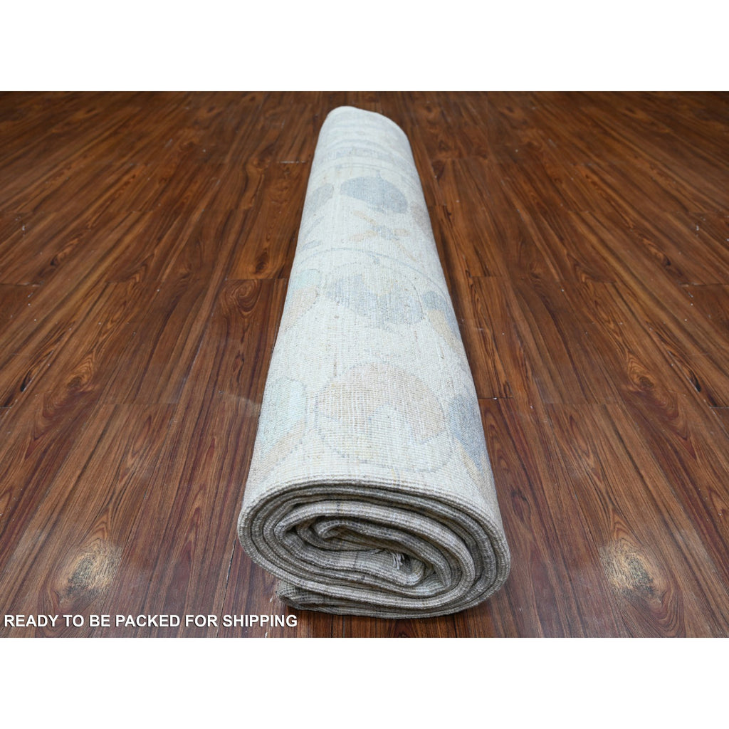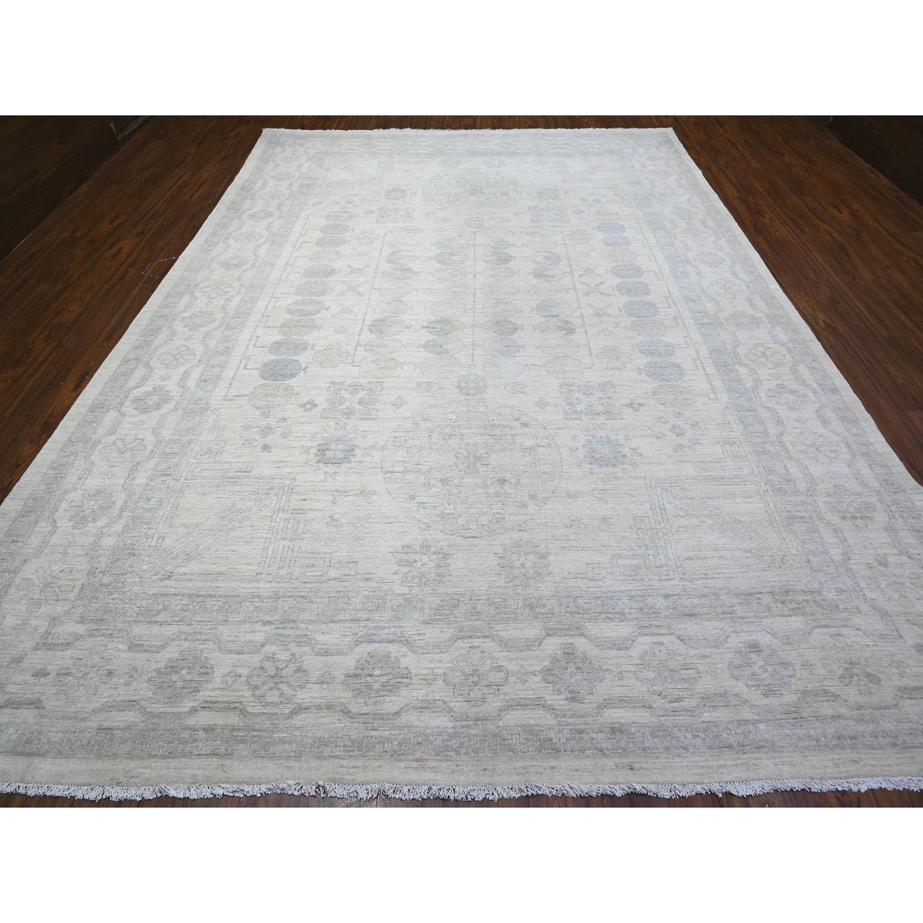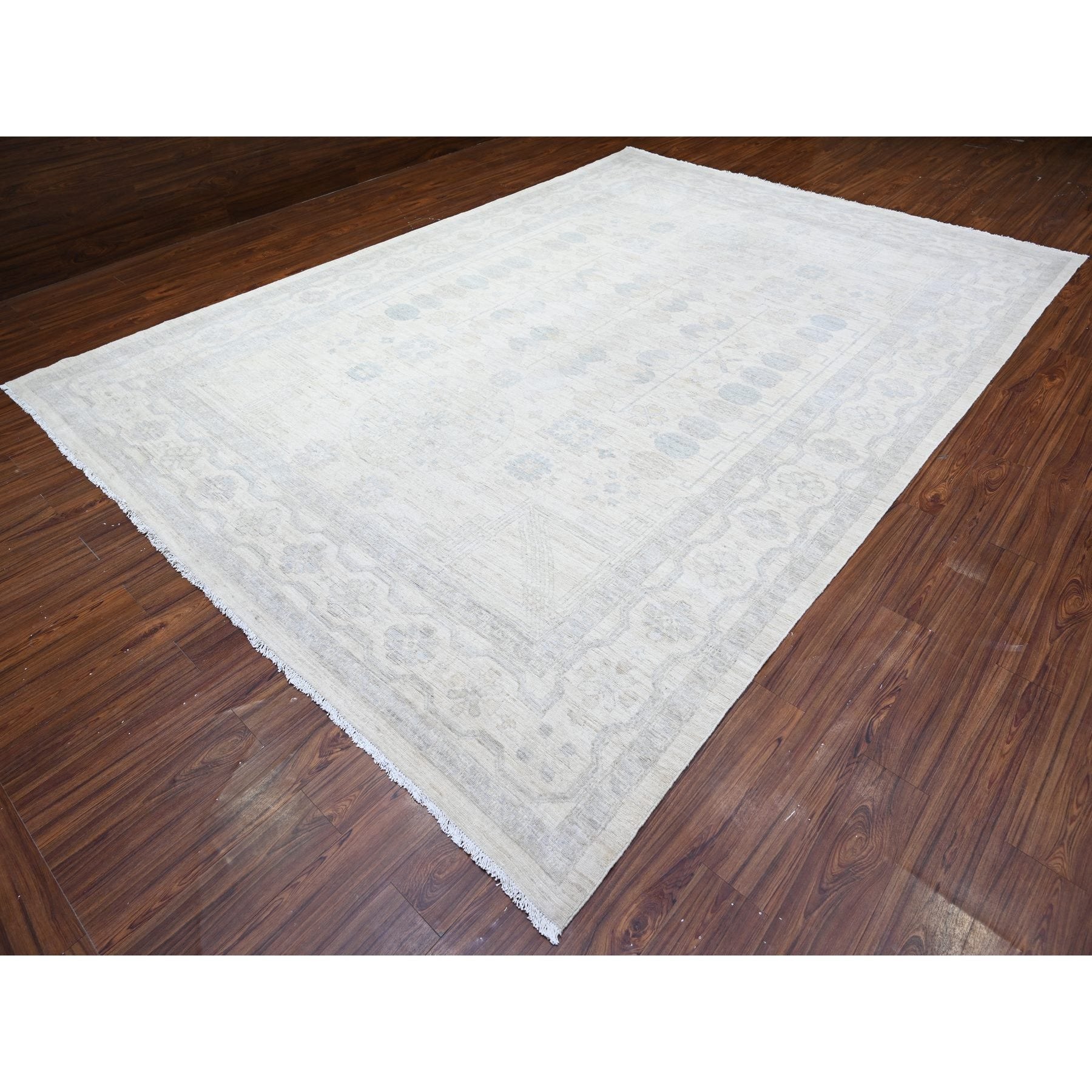 9'8"x13'6" Daisy White, Hand Knotted, Luxurious Wool, White Wash Peshawar, Pomegranate Design, Oriental Rug FWR531348