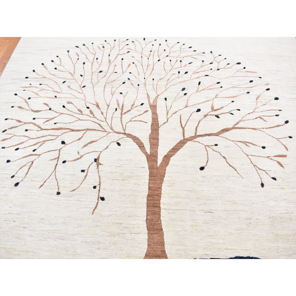9'8"x13'8" Ivory, Hand Knotted, Modern Folk Art Tree Design Gabbeh, Persian Wool, Oriental Rug FWR522504