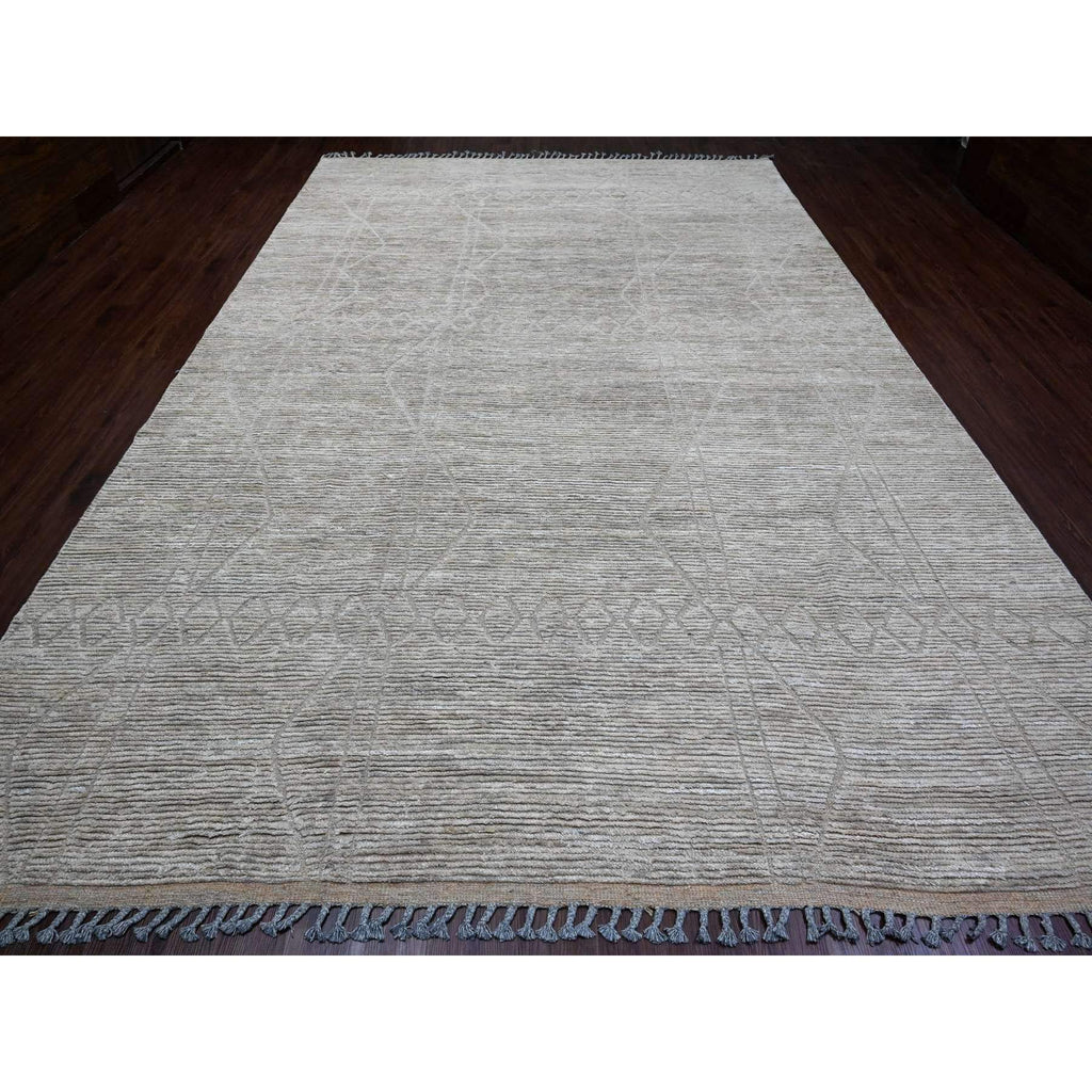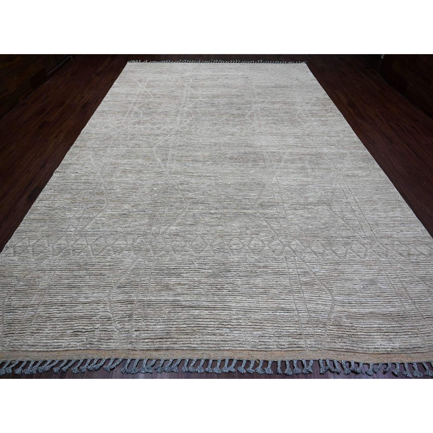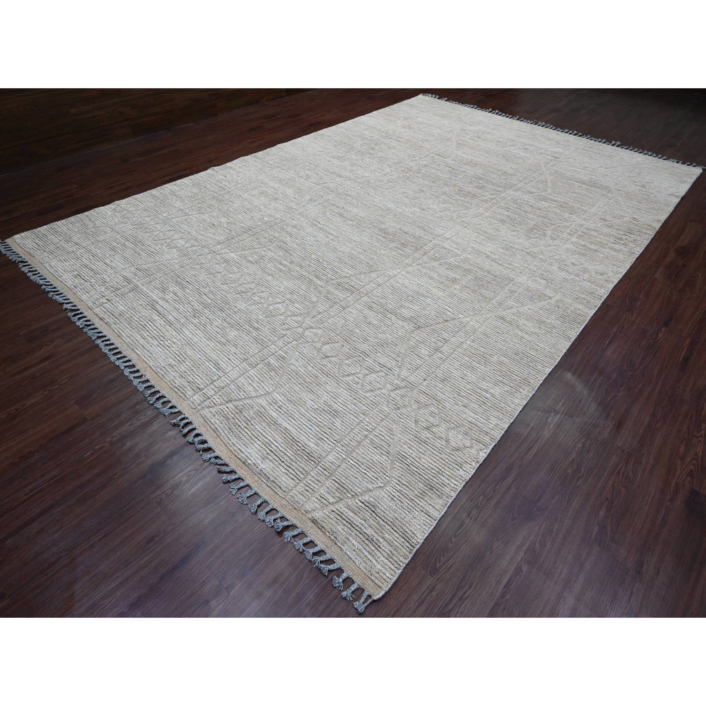 9'8"x14'7" Stone Gray, Moroccan Weave With Textured And Variegated Design, Hand Knotted, 100% Wool, Oriental Rug FWR120888