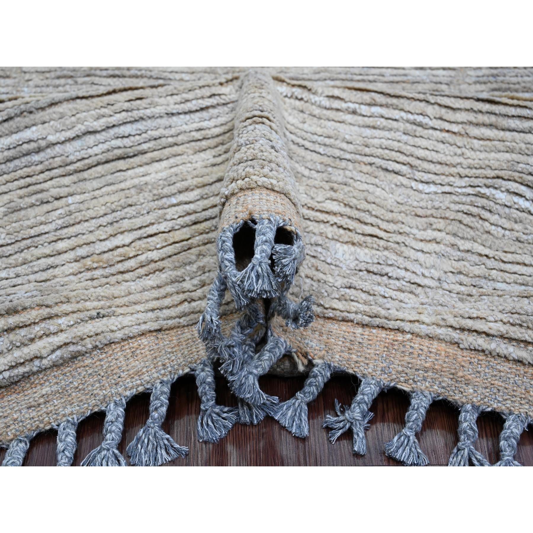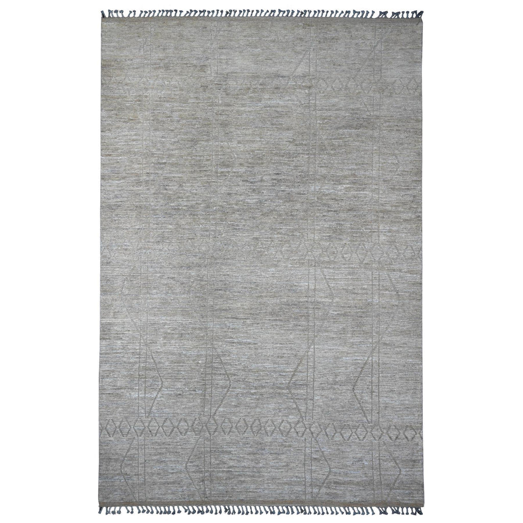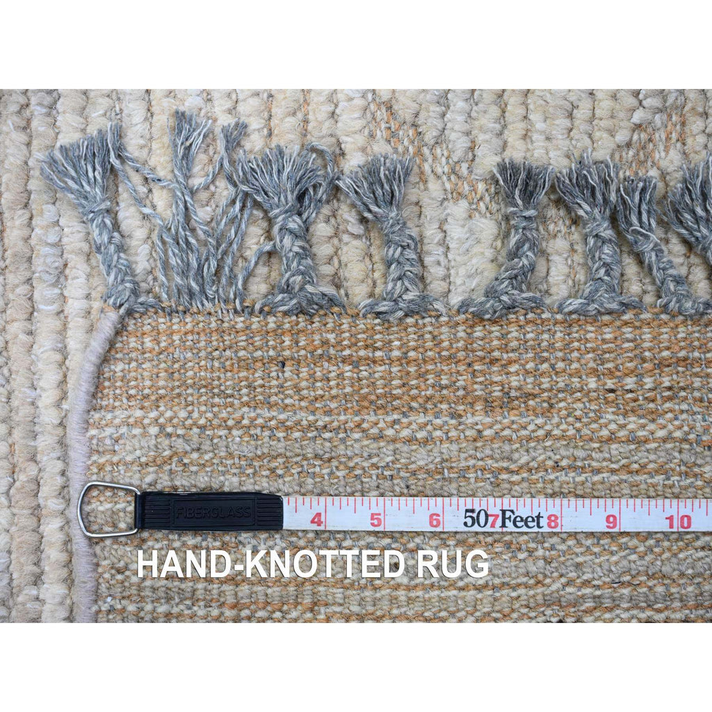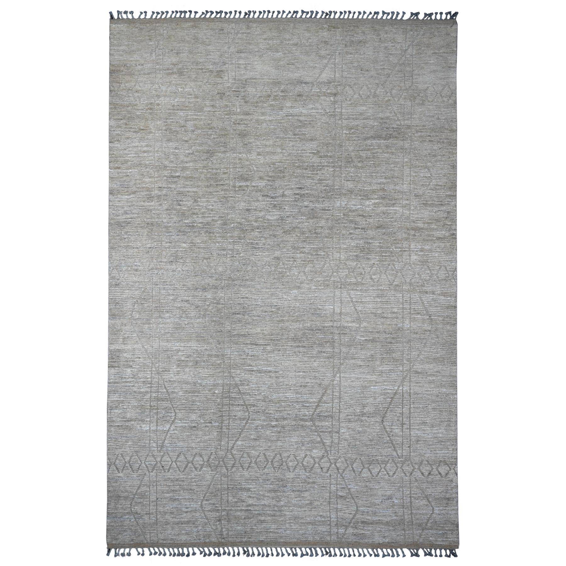 9'8"x14'7" Stone Gray, Moroccan Weave With Textured And Variegated Design, Hand Knotted, 100% Wool, Oriental Rug FWR120888