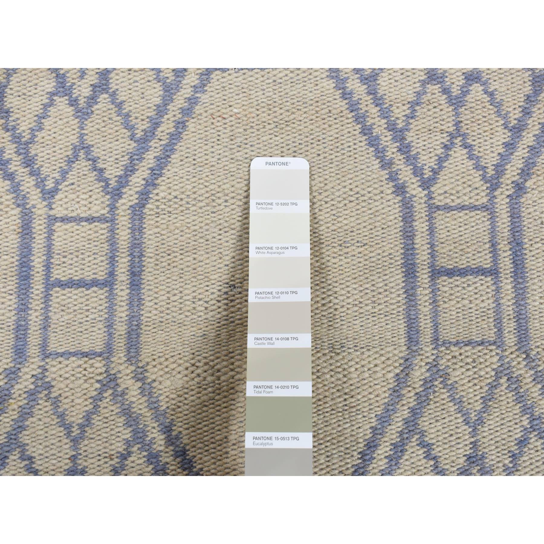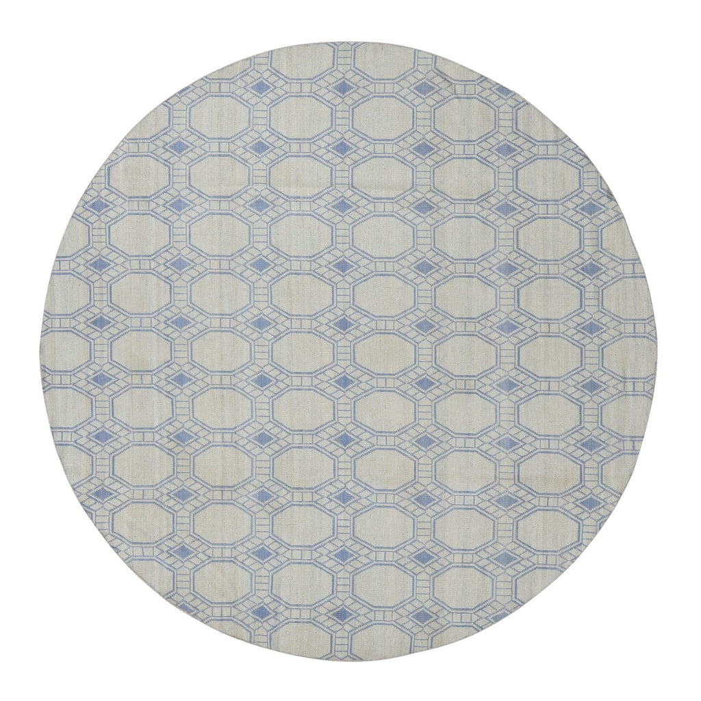 9'8"x9'8" Spring White, 100% Wool, Hand Woven, Flat Weave Durie Kilim, Geometric Design, Reversible, Round Oriental Rug FWR527172