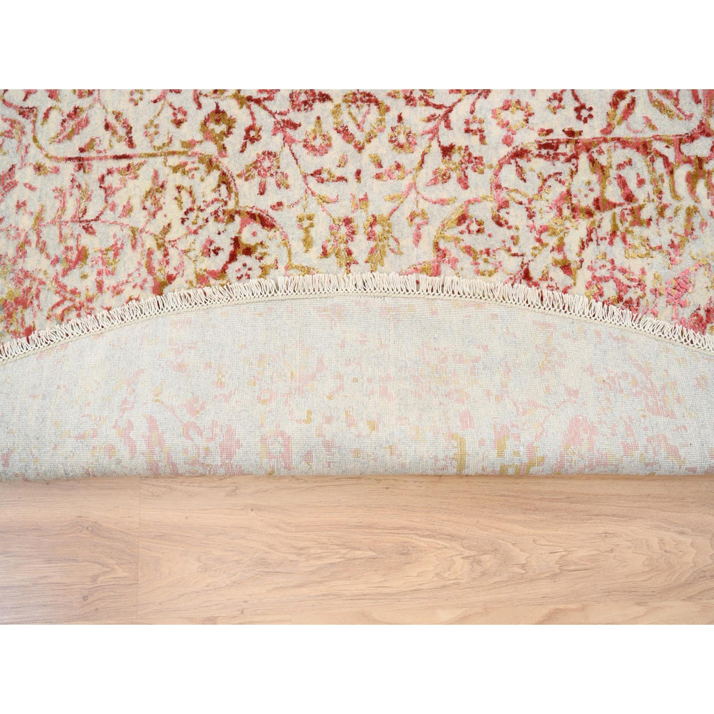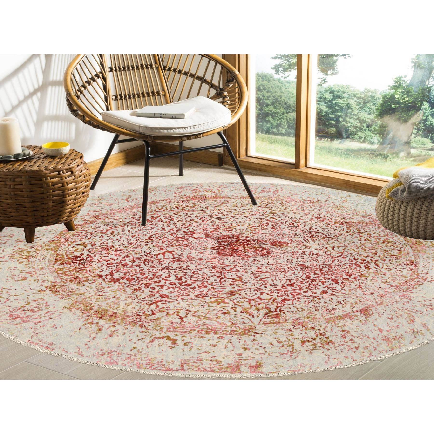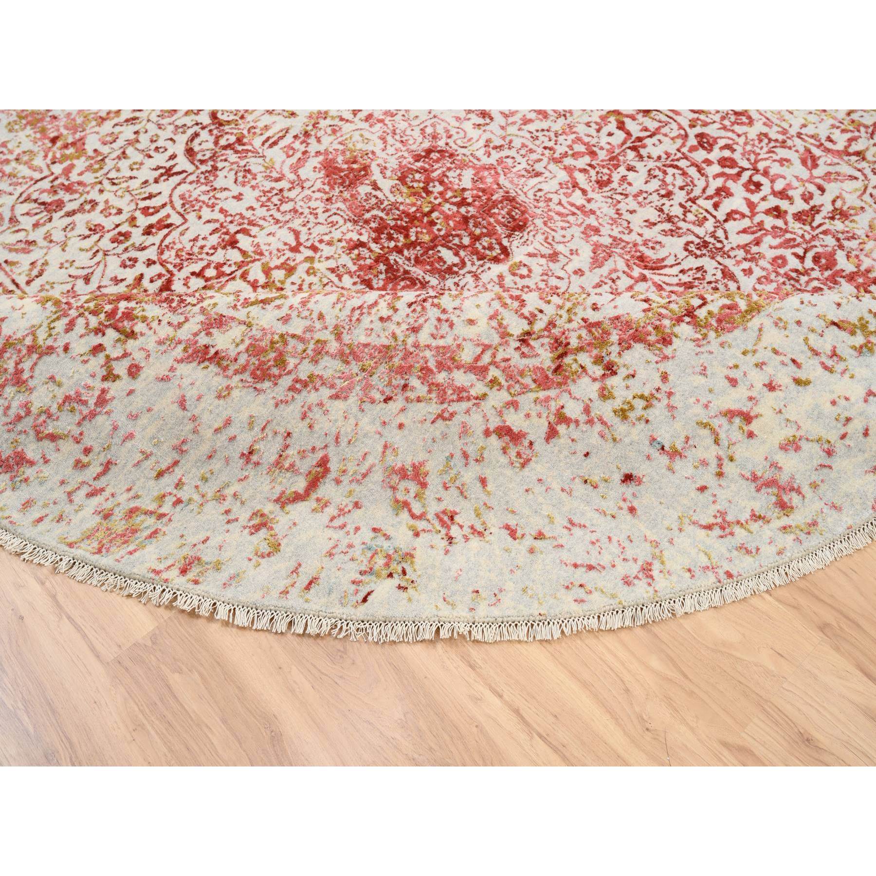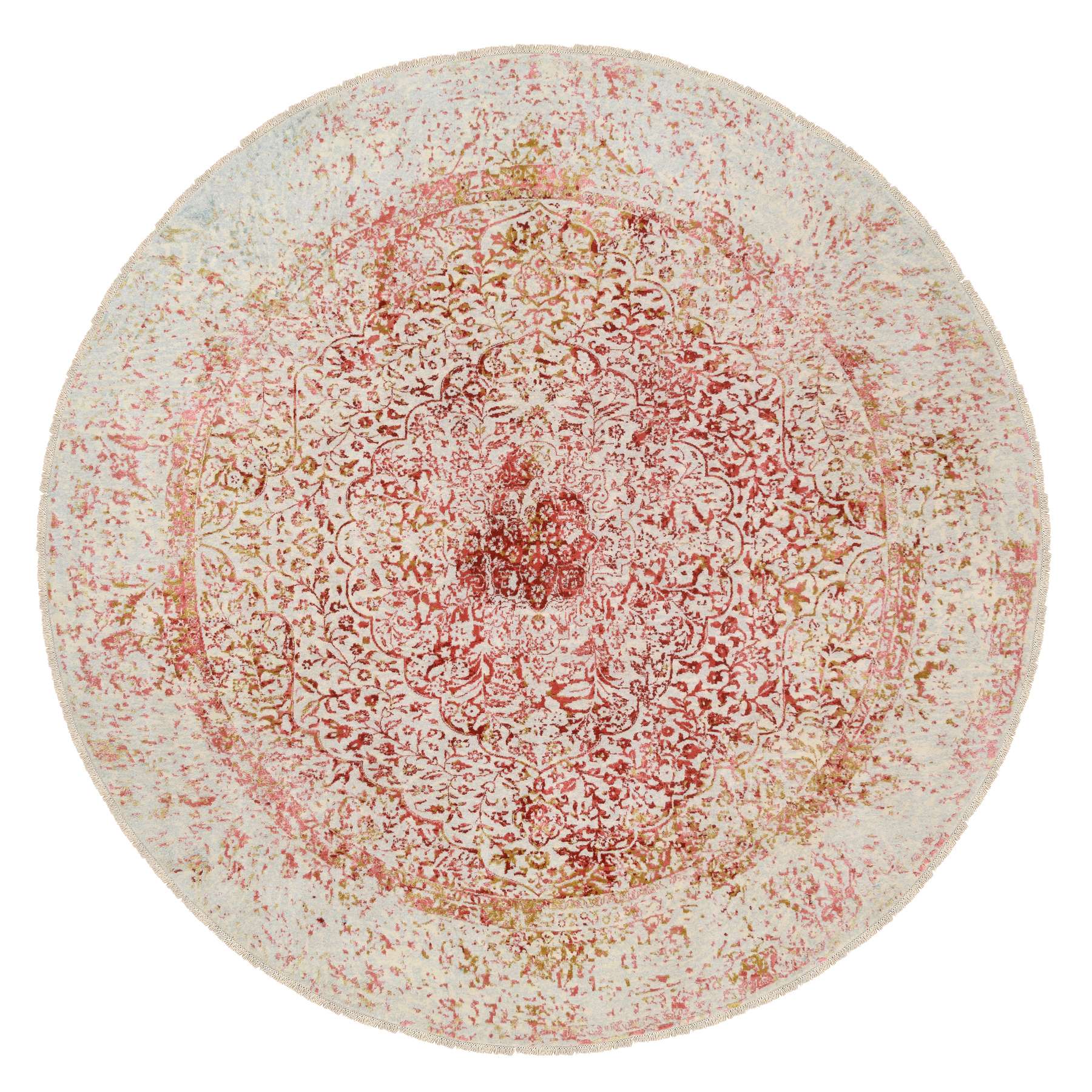 9'8"x9'8" Wool And Pure Silk Hand Knotted Pink Persian Erased Medallion Design Oriental Round Rug FWR380808