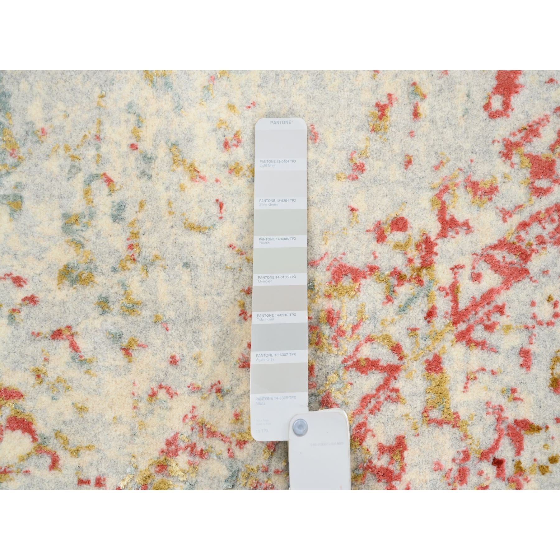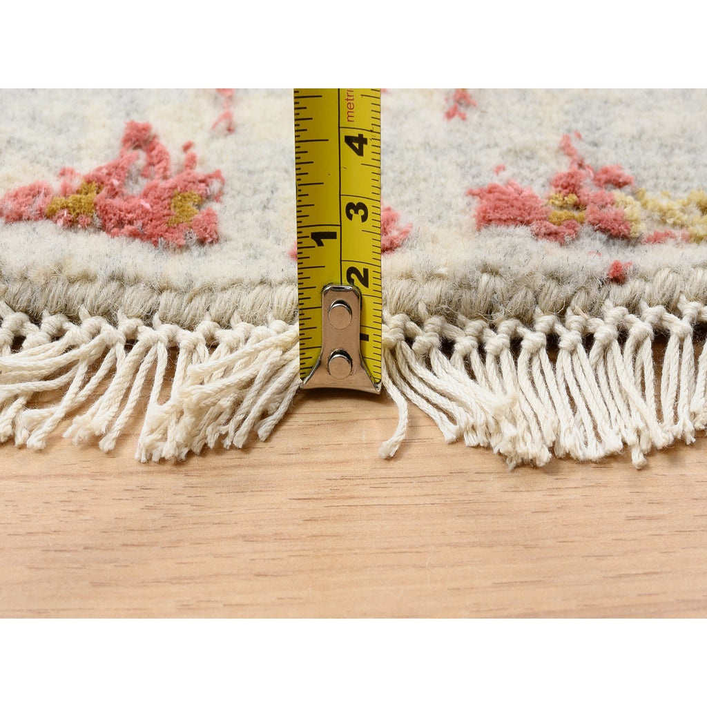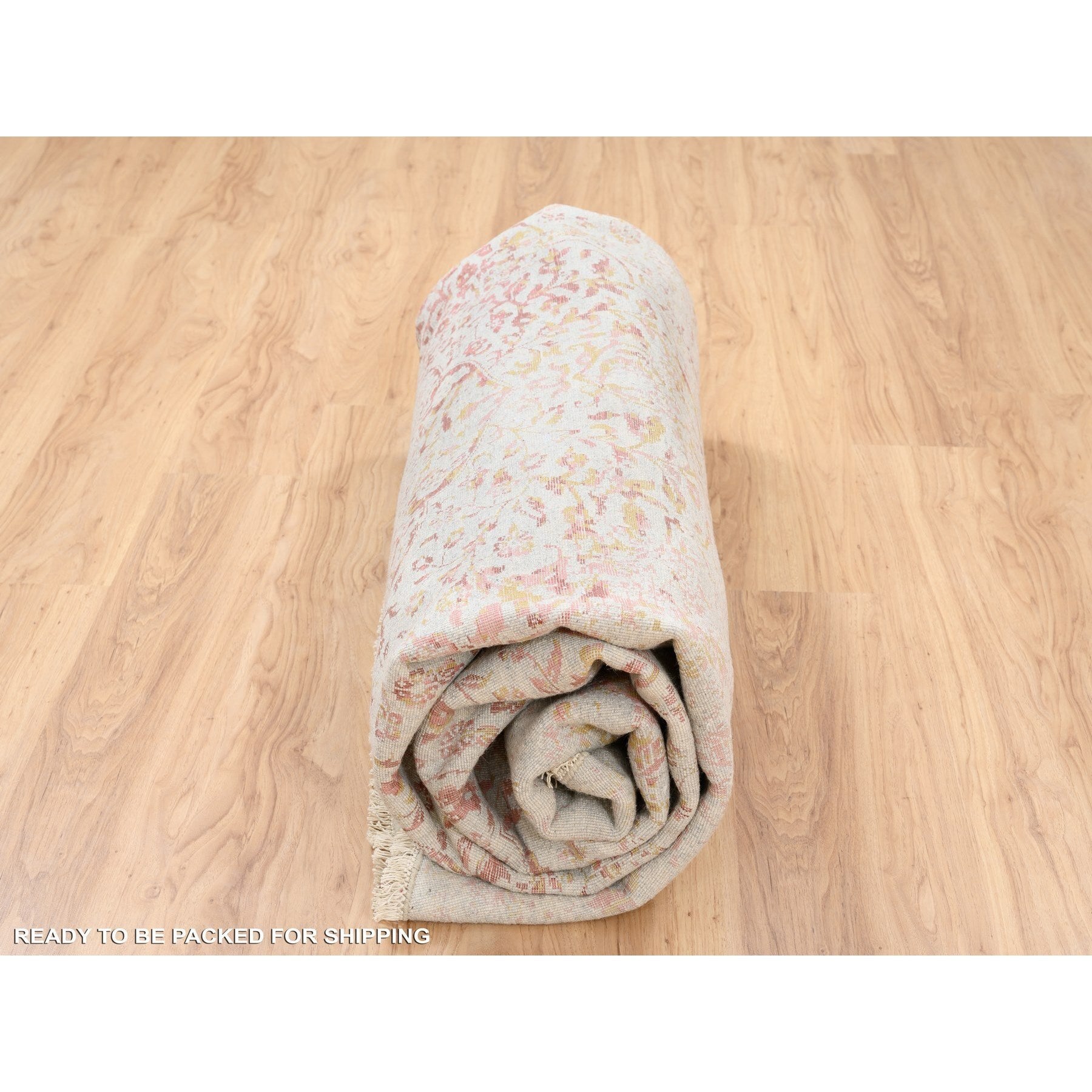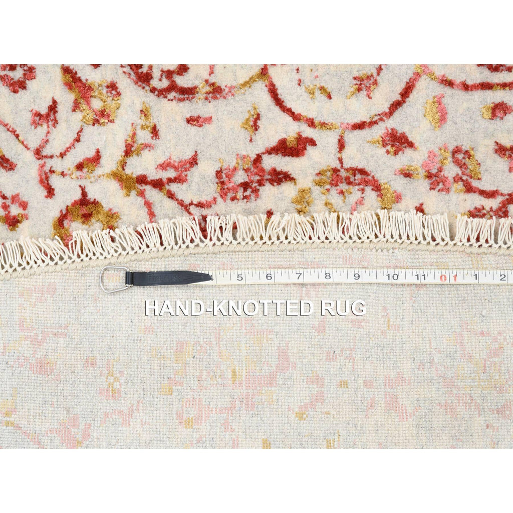 9'8"x9'8" Wool And Pure Silk Hand Knotted Pink Persian Erased Medallion Design Oriental Round Rug FWR380808
