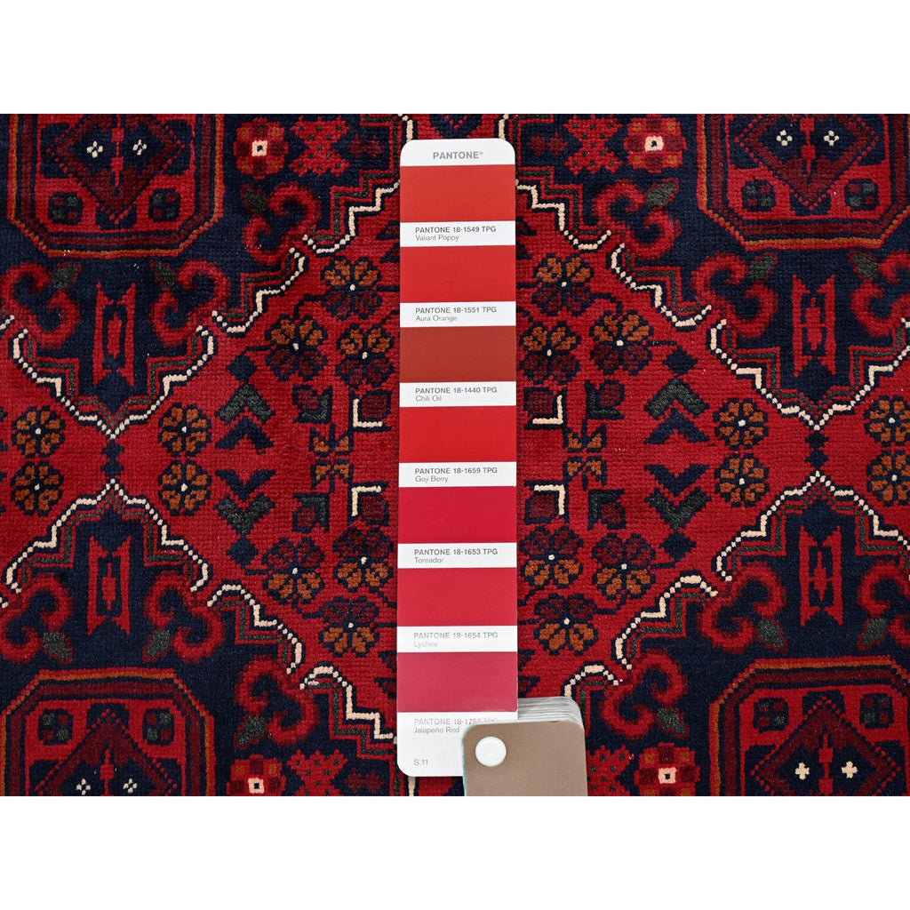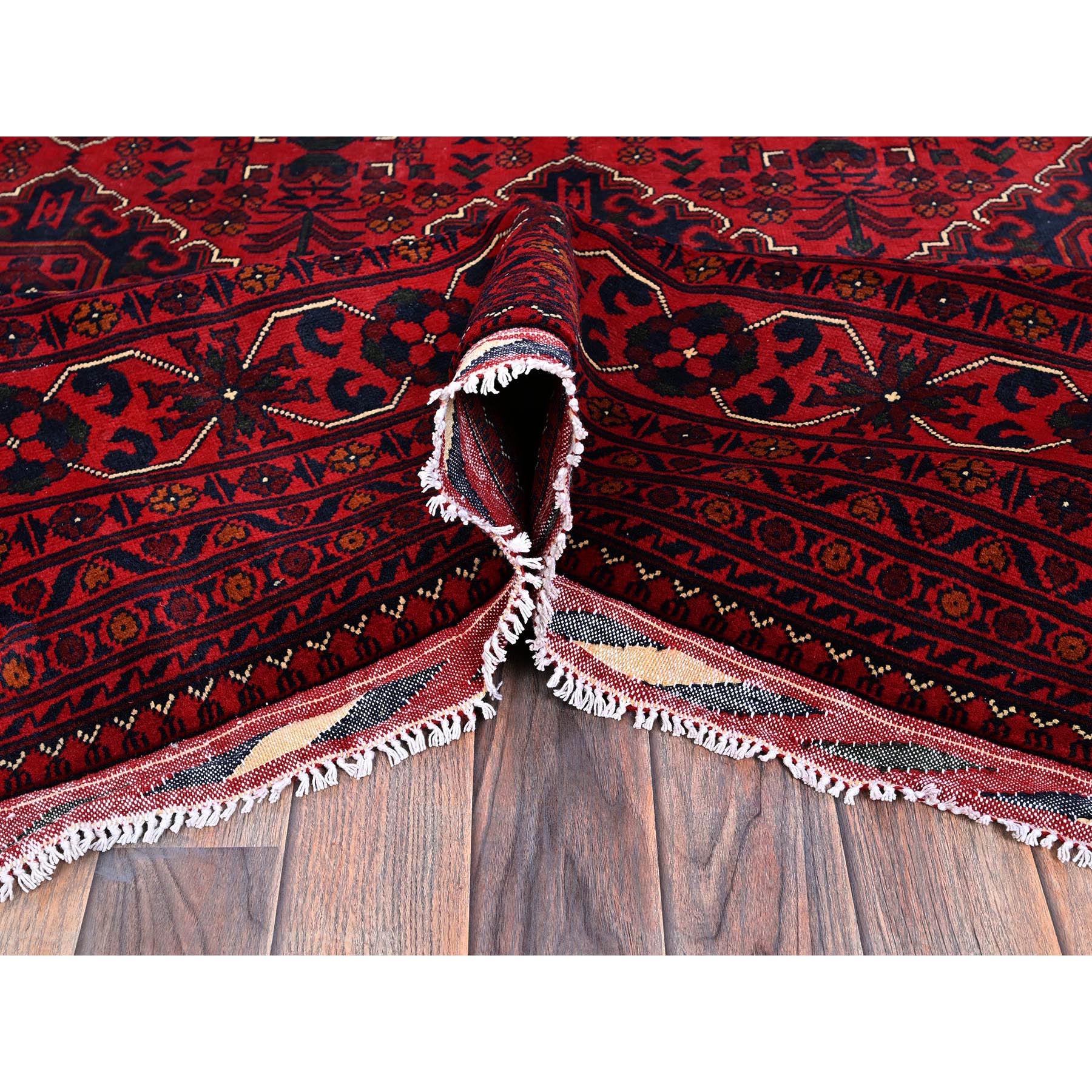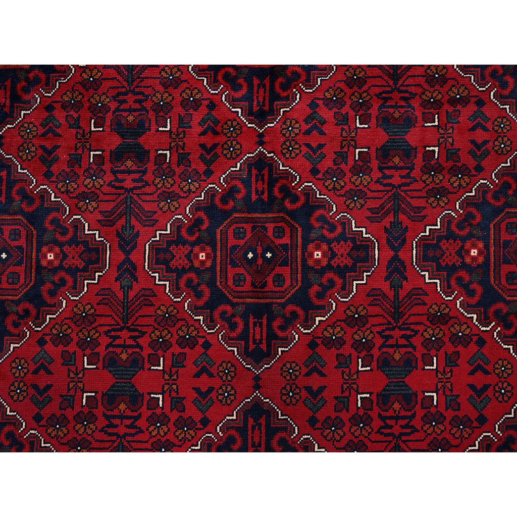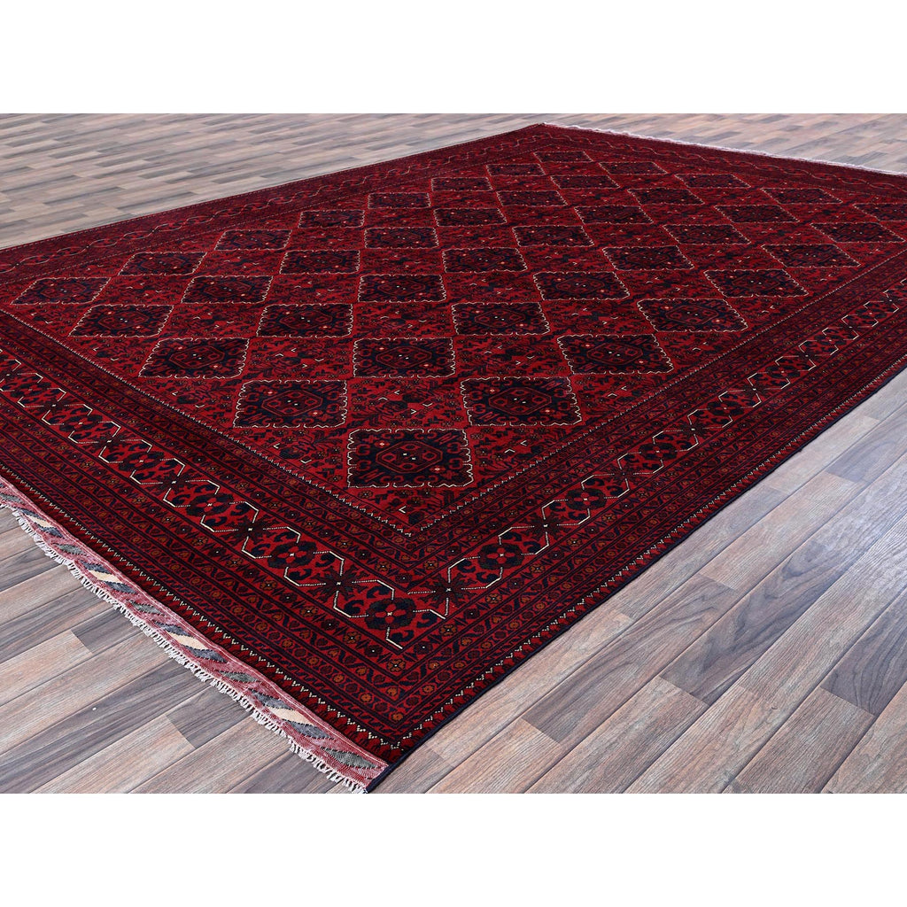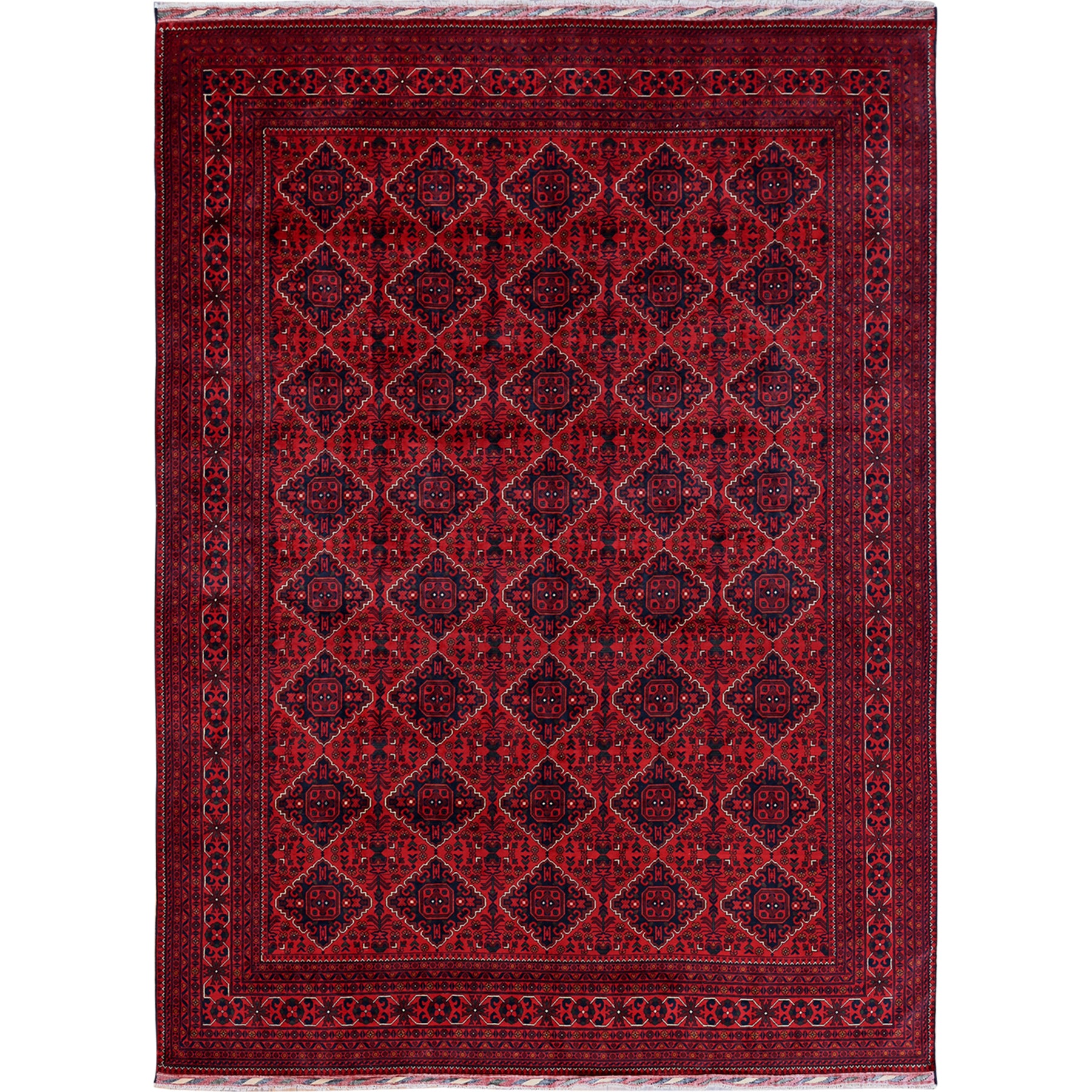 9'9"x13'1" Scarlet Red, Afghan Khamyab With Geometric Design, Soft And Shiny Wool, Hand Knotted, Vegetable Dyes, Oriental Rug FWR4650