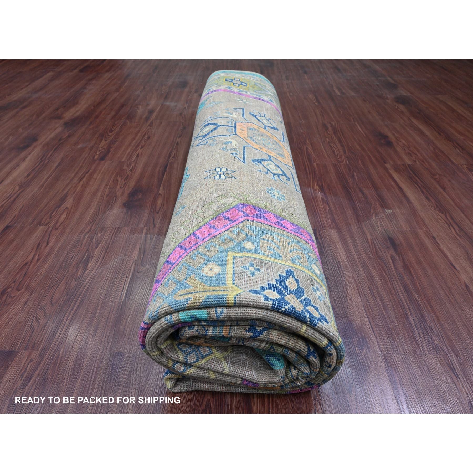 9'9"x13'2" Stone Gray, Colorful Fusion Kazak, Caucasian Medallions Design, Hand Knotted, Pure Wool, Oriental Rug FWR125838