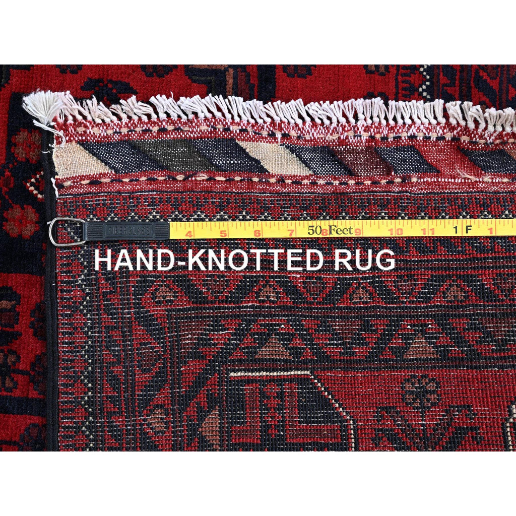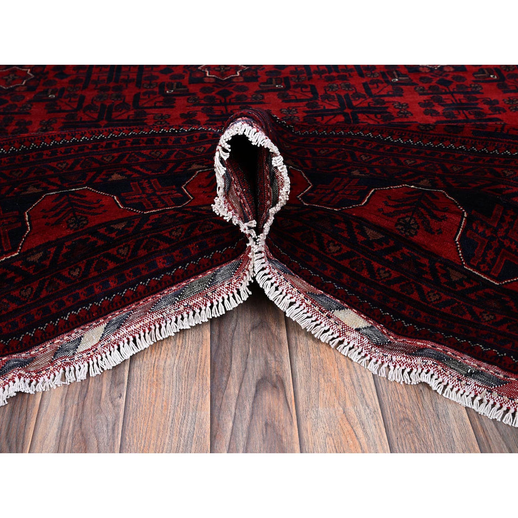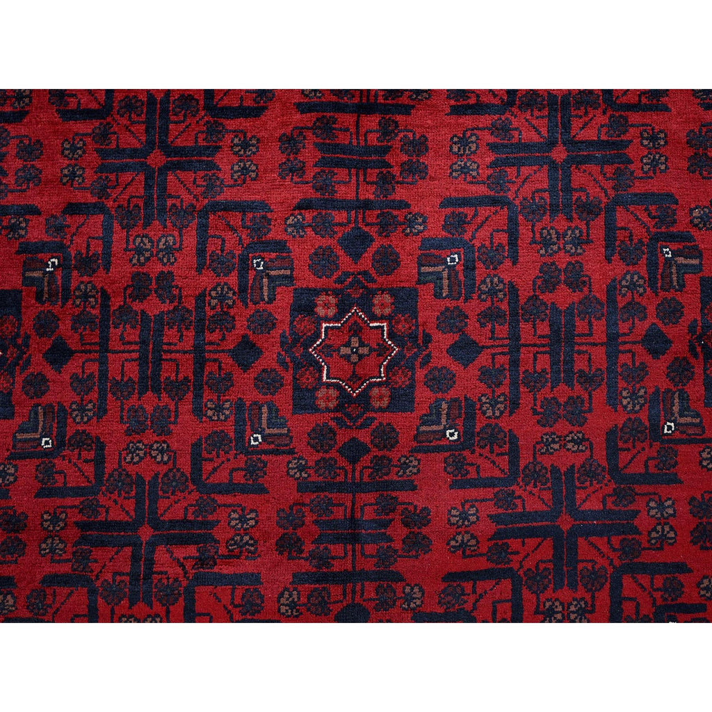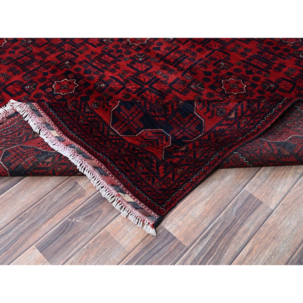 9'9"x13'3" Crimson Red, Afghan Khamyab With Tribal Motifs Pattern, Soft And Velvety Wool, Hand Knotted, Vegetable Dyes, Oriental Rug FWR4578