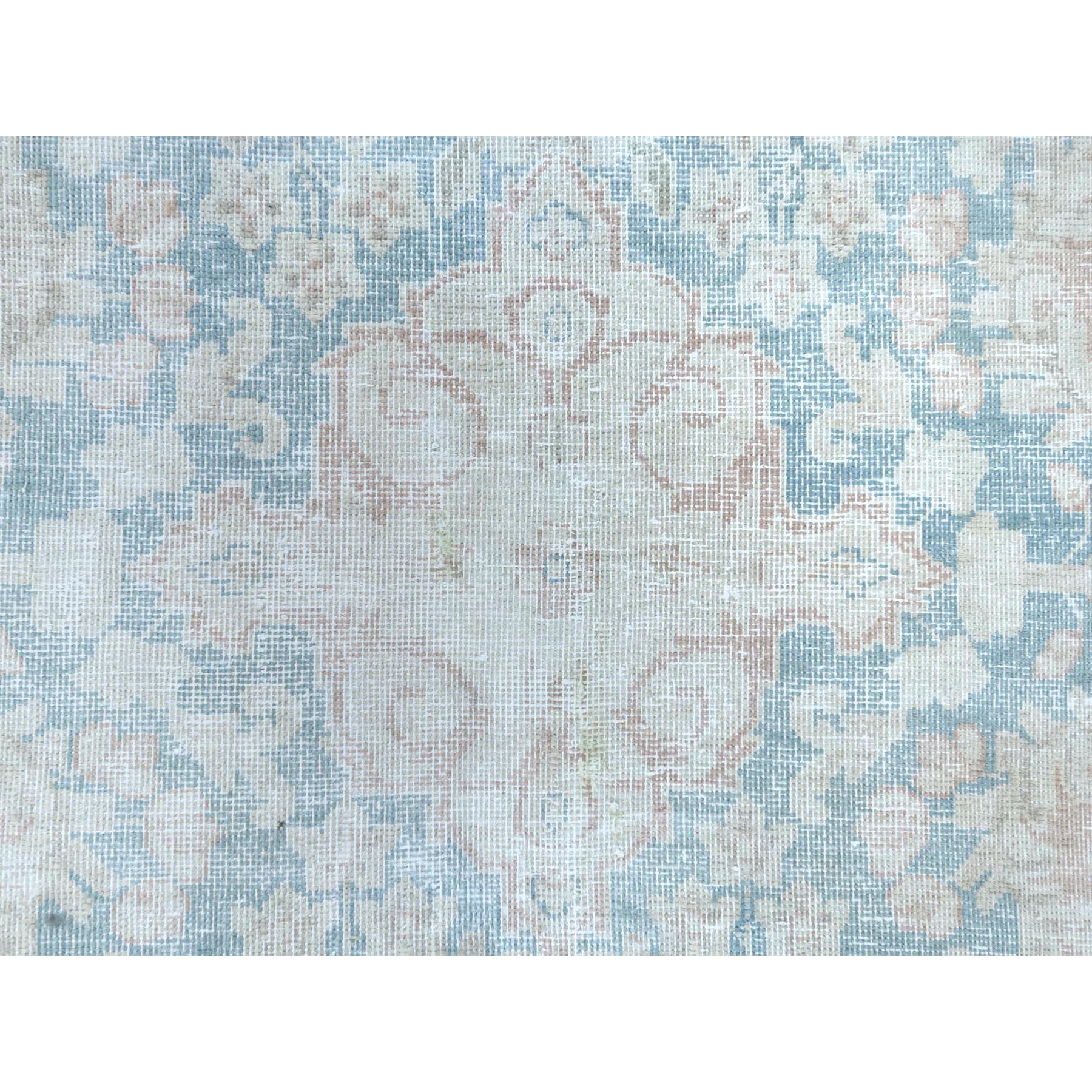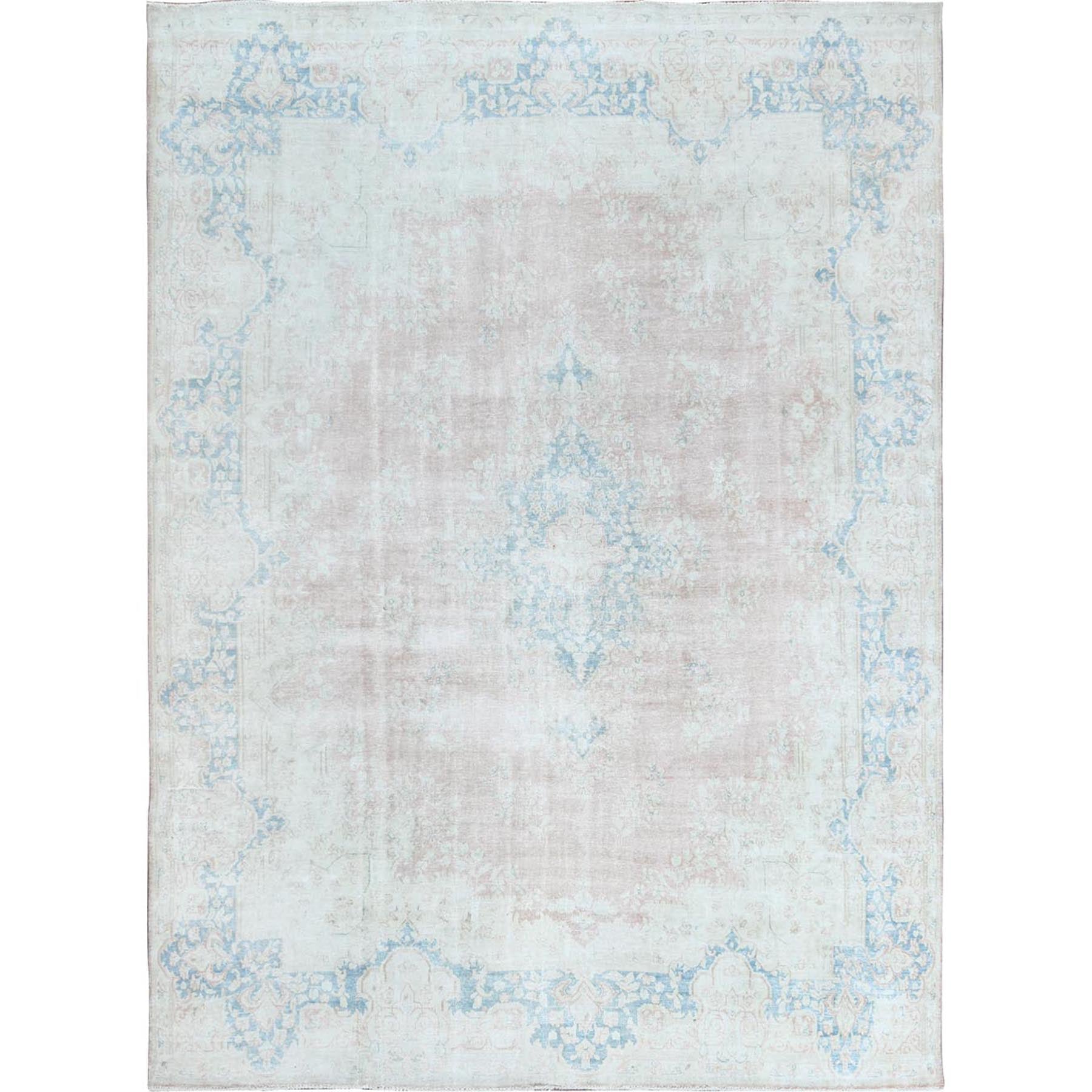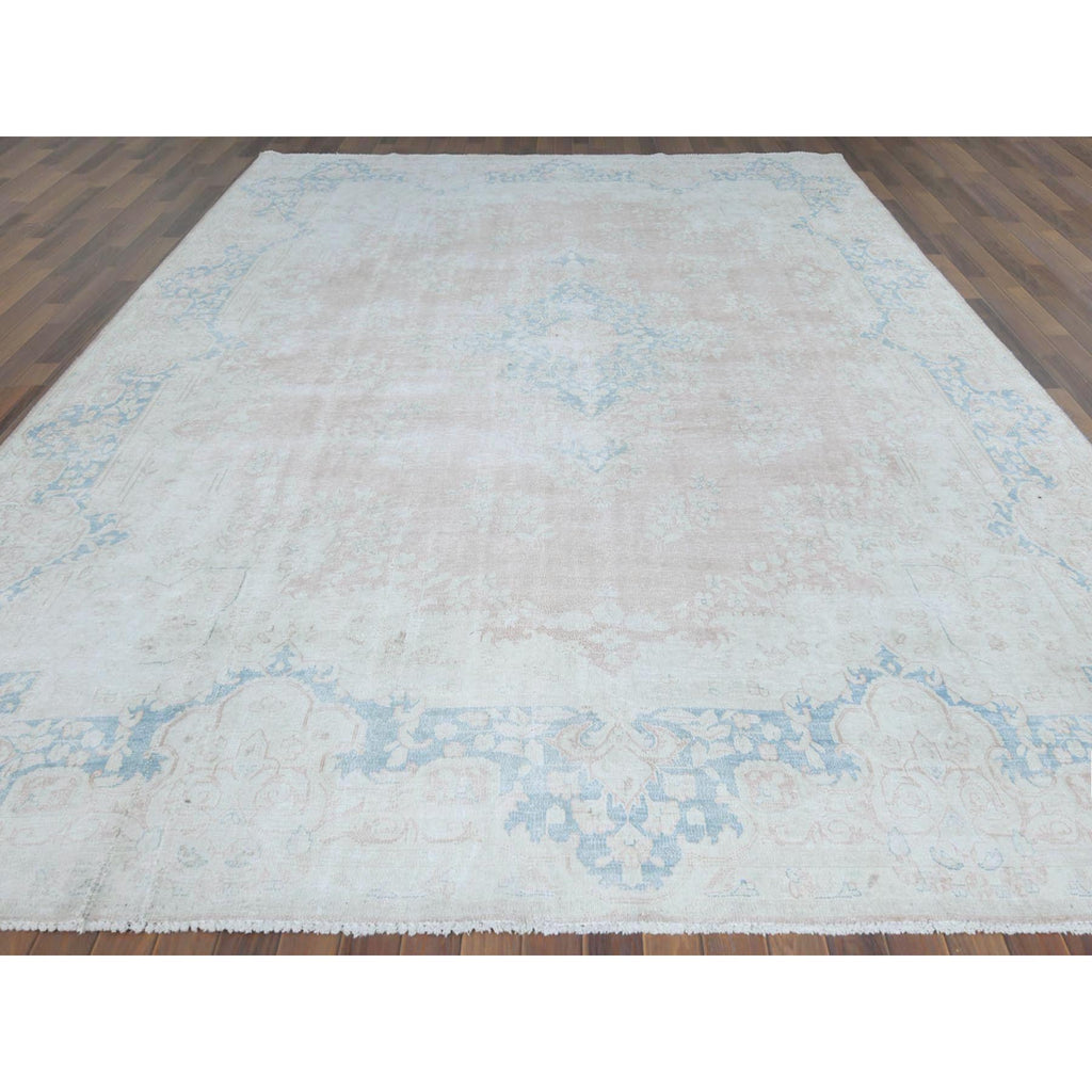 9'9"x13'3" Distressed Look, Worn Wool, Shaved Down, Hand Knotted, Soft Pink, Vintage Persian Kerman, Oriental Rug FWR370410