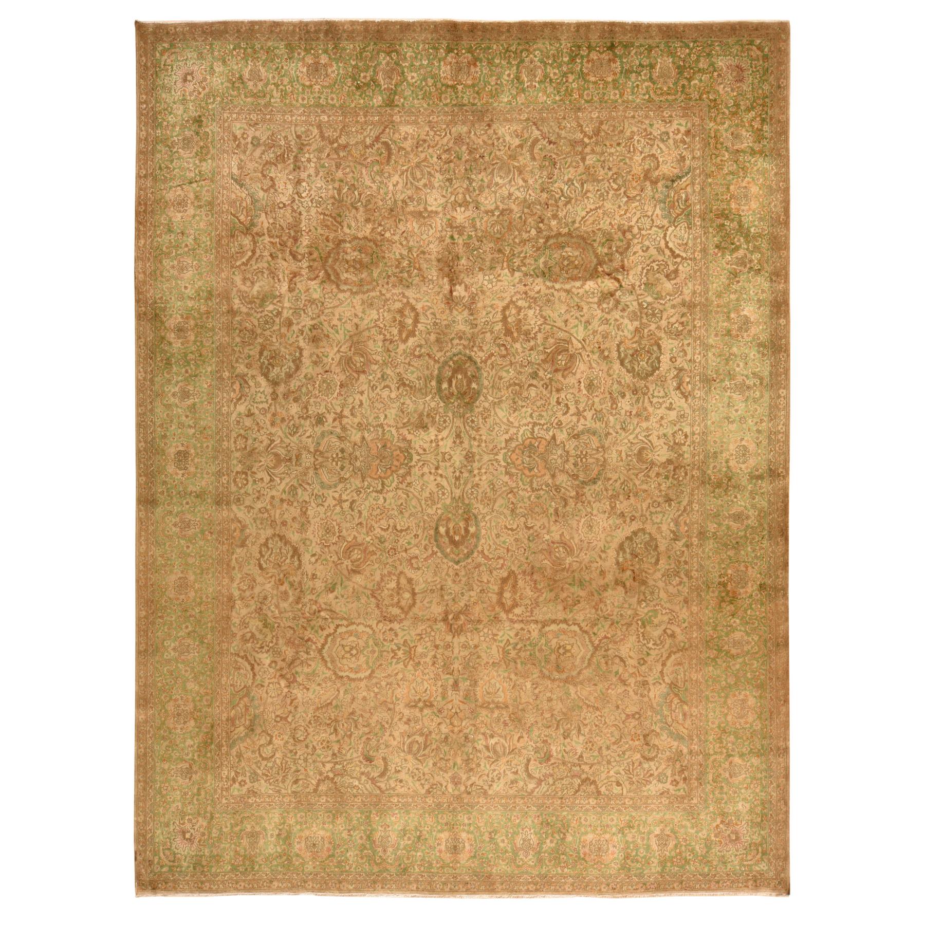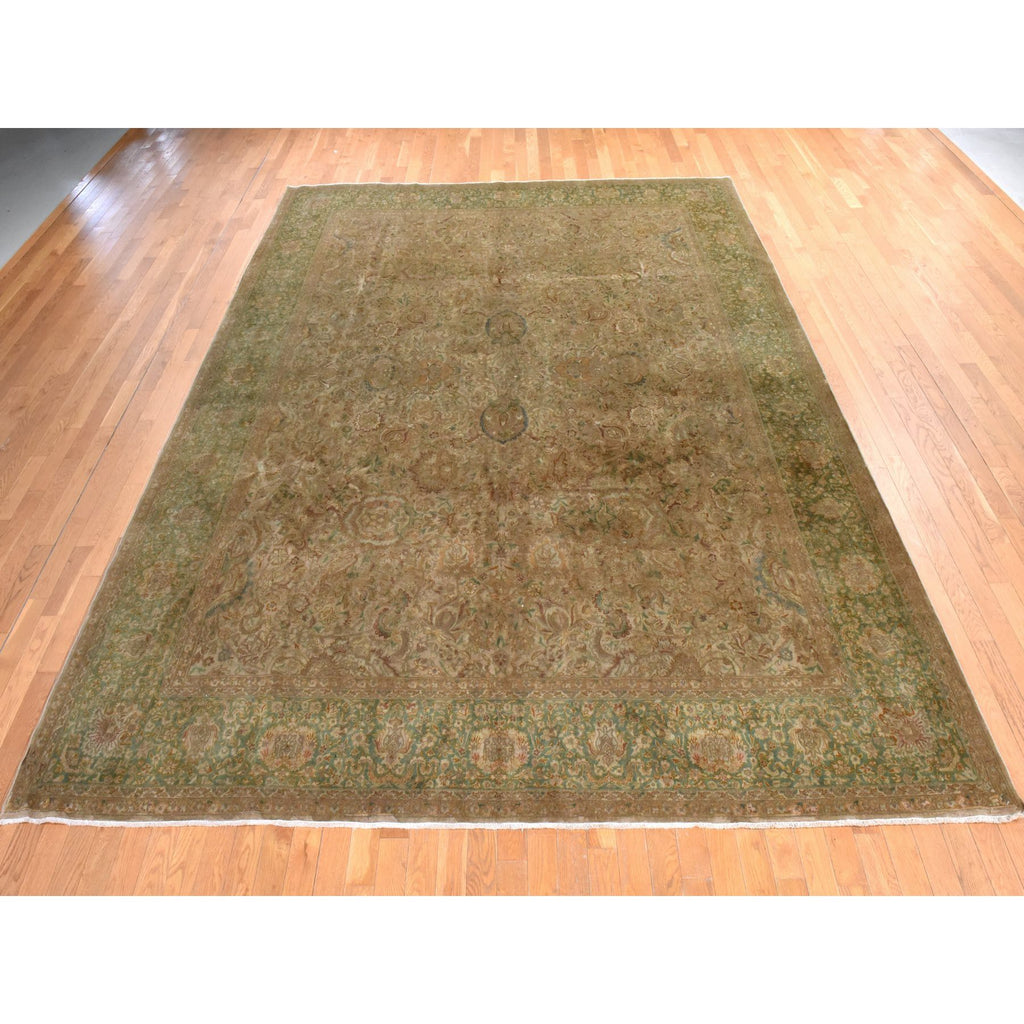 9'9"x13' Light Brown, Vintage Persian Tabriz, Good Condition And Clean, Full Pile And Soft, All Over Design, 100% Wool, Hand Knotted, Oriental Rug FWR470880