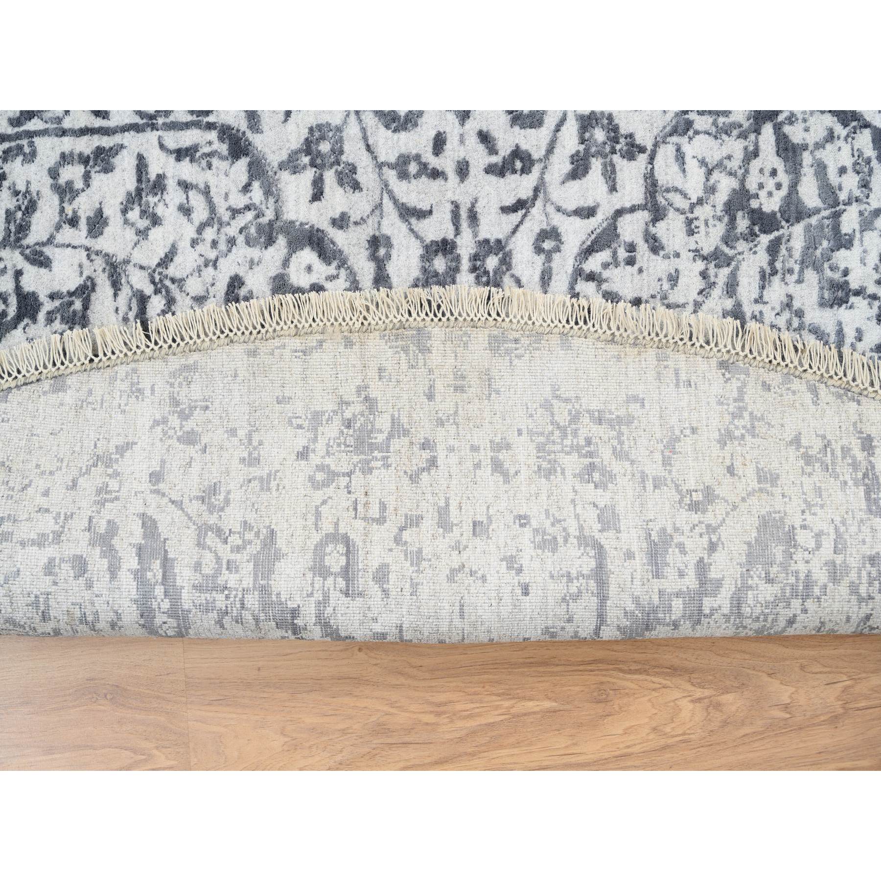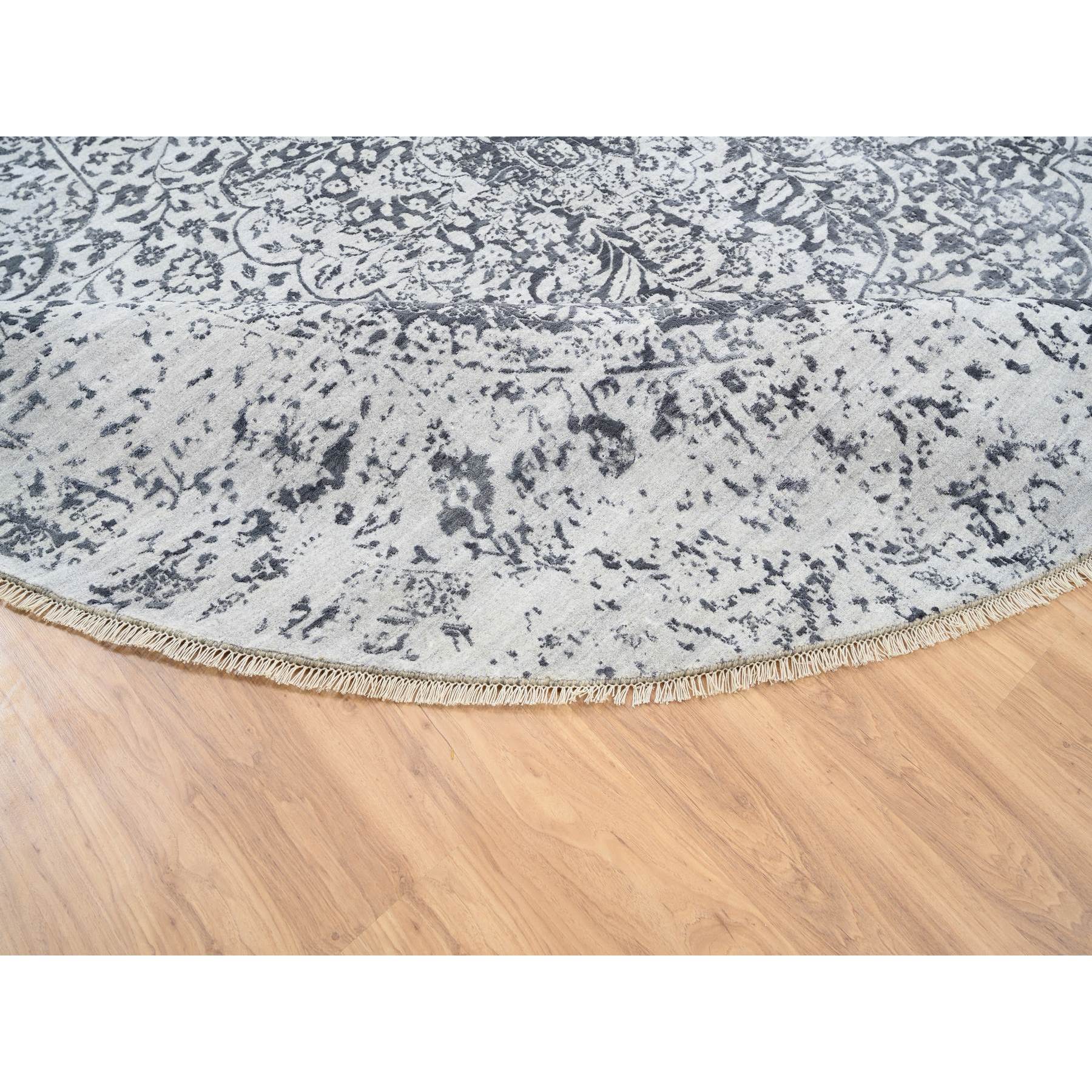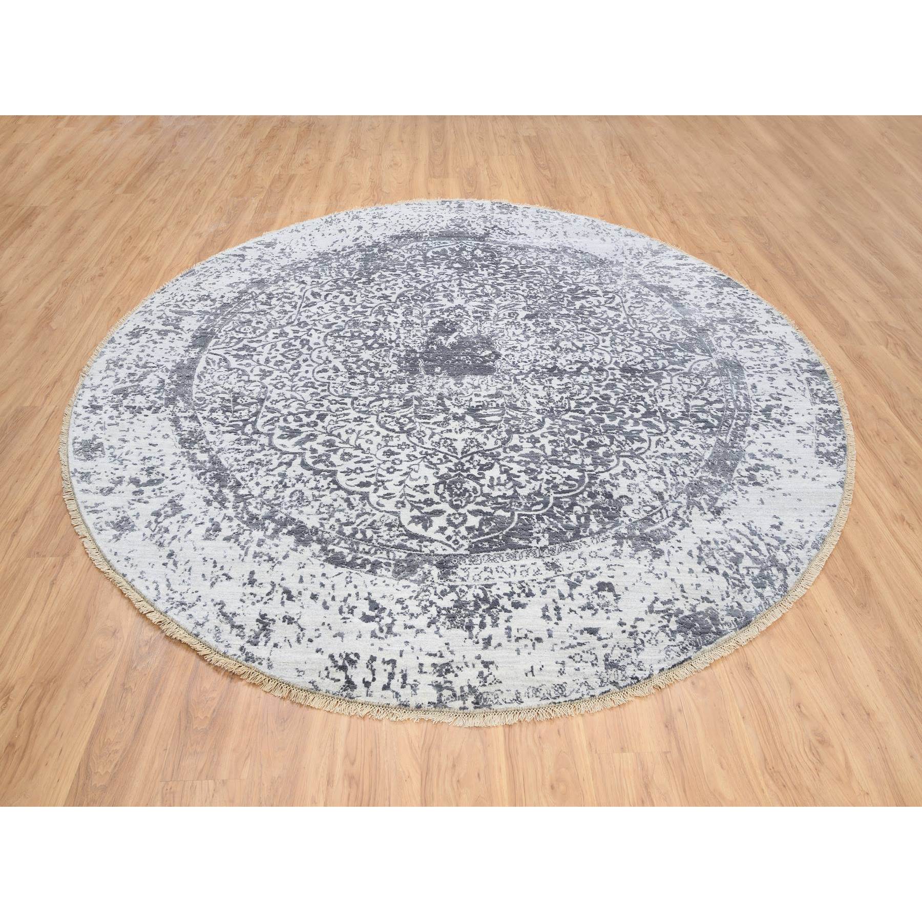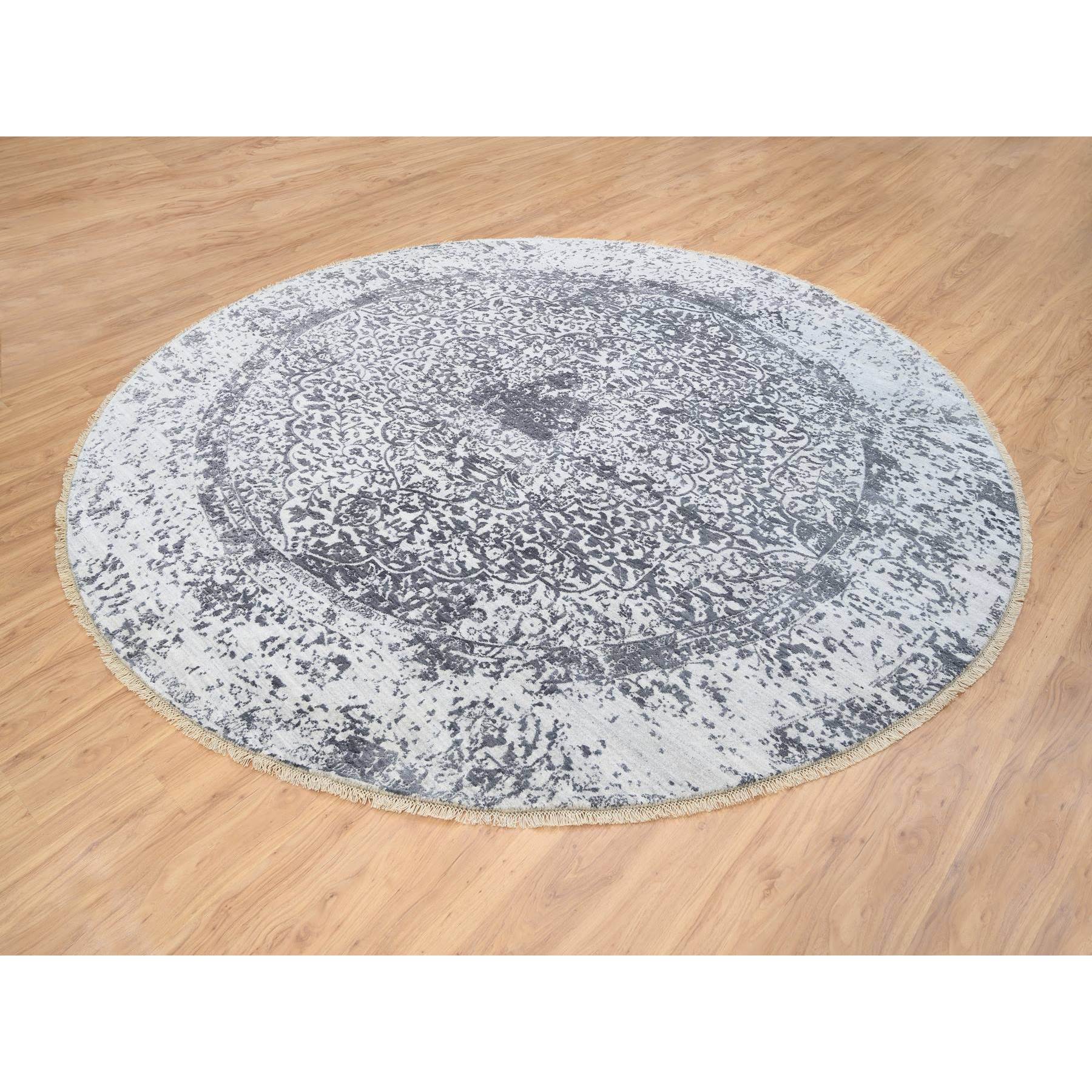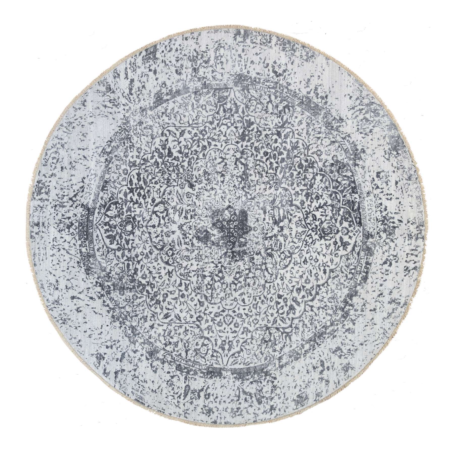 9'9"x9'9" Silver Gray, Erased Persian Design, Wool And Pure Silk Hand Knotted, Round Oriental Rug FWR384354