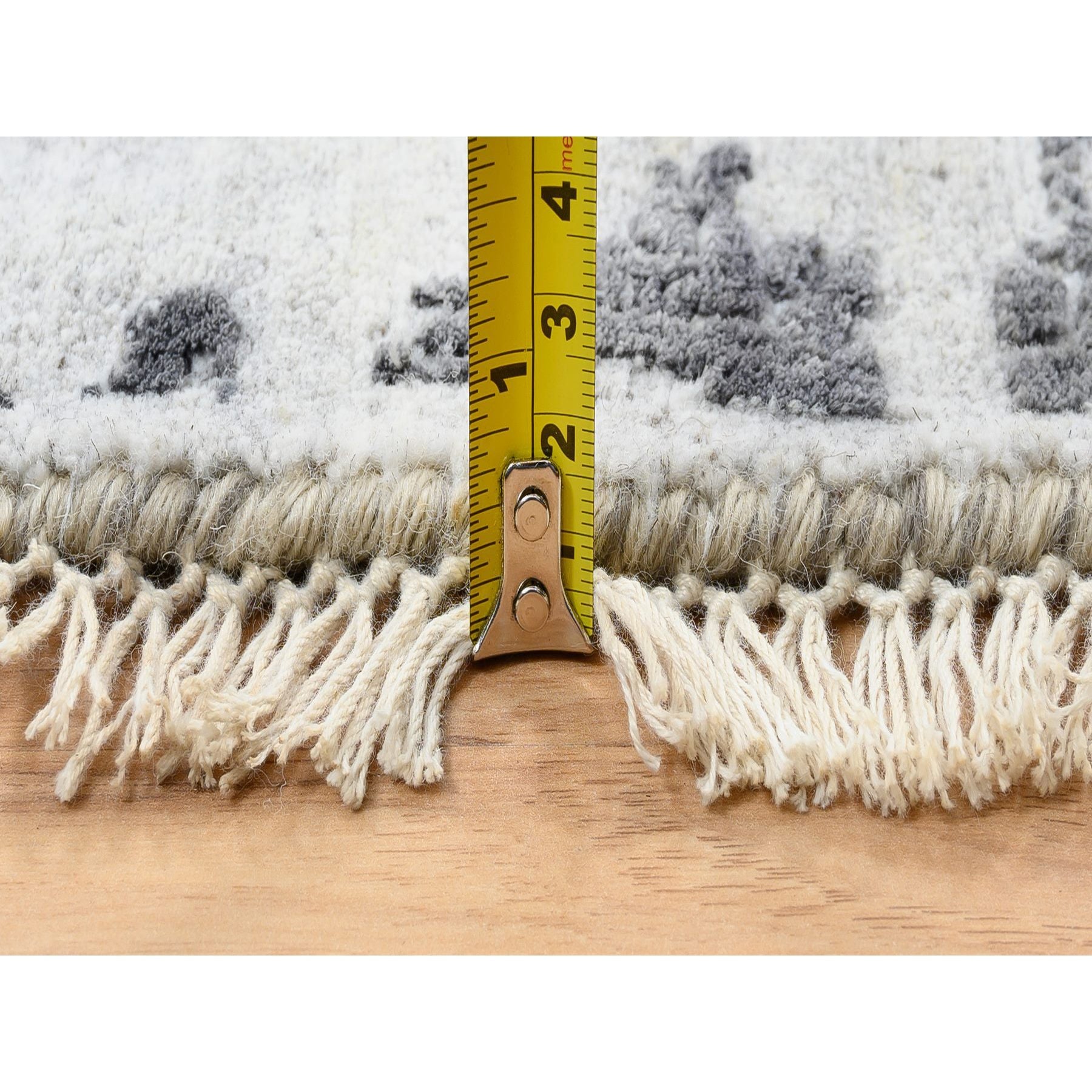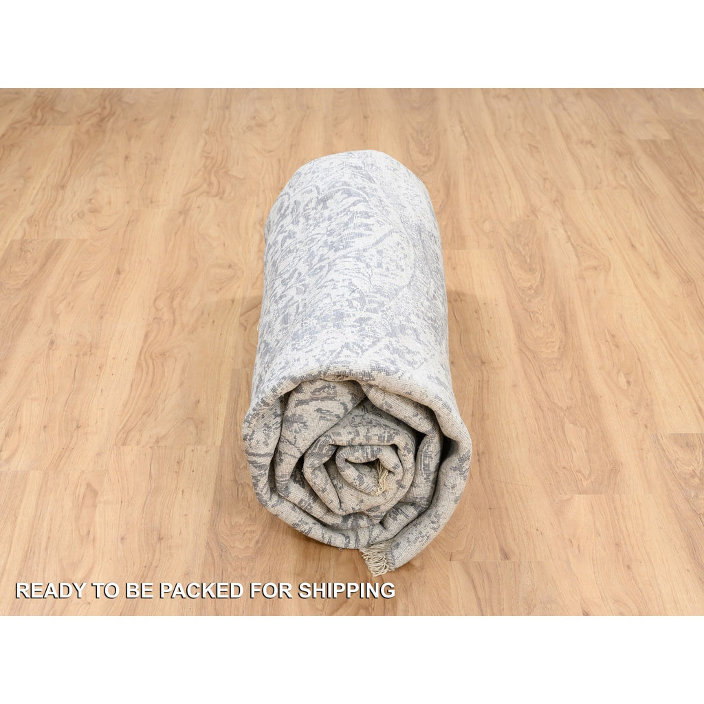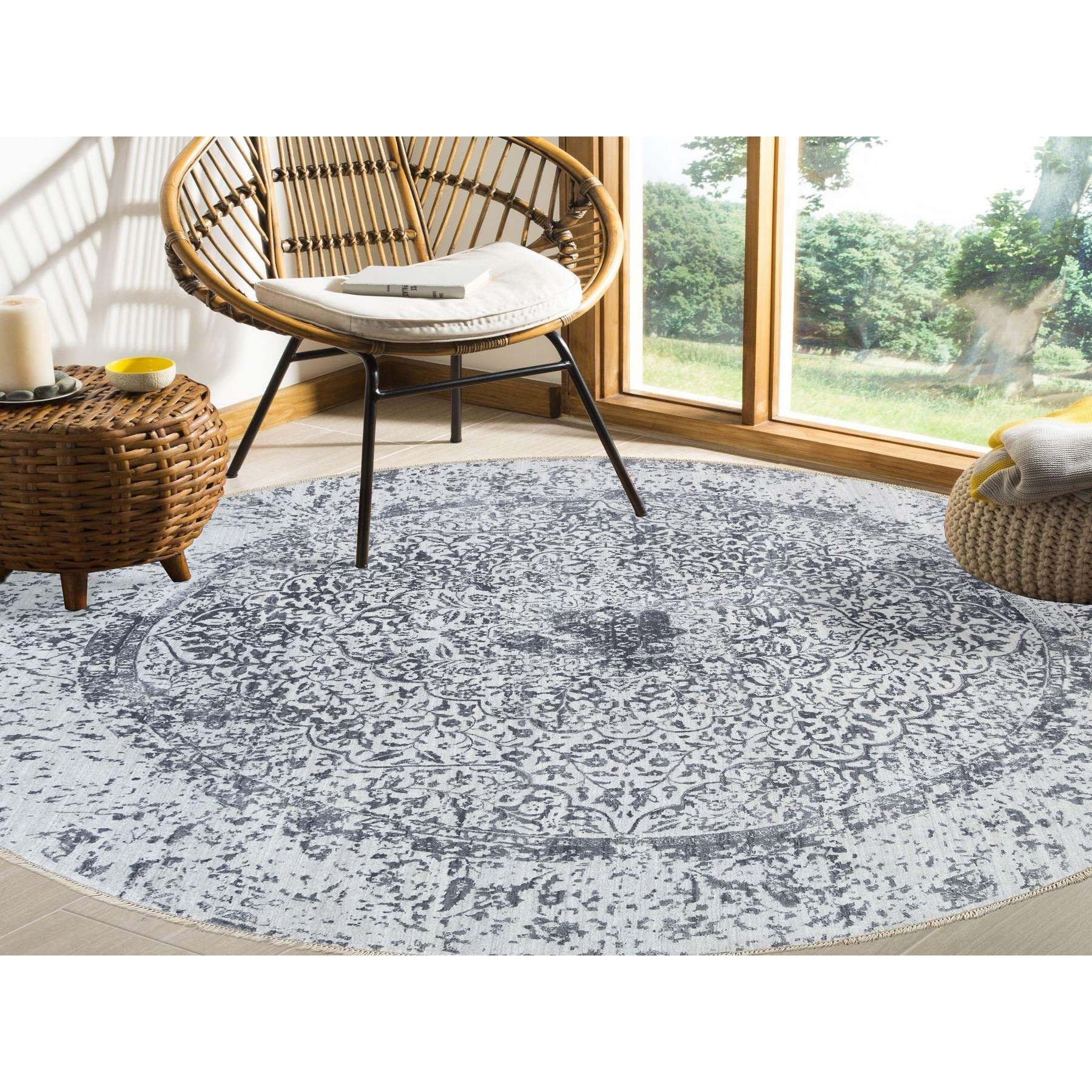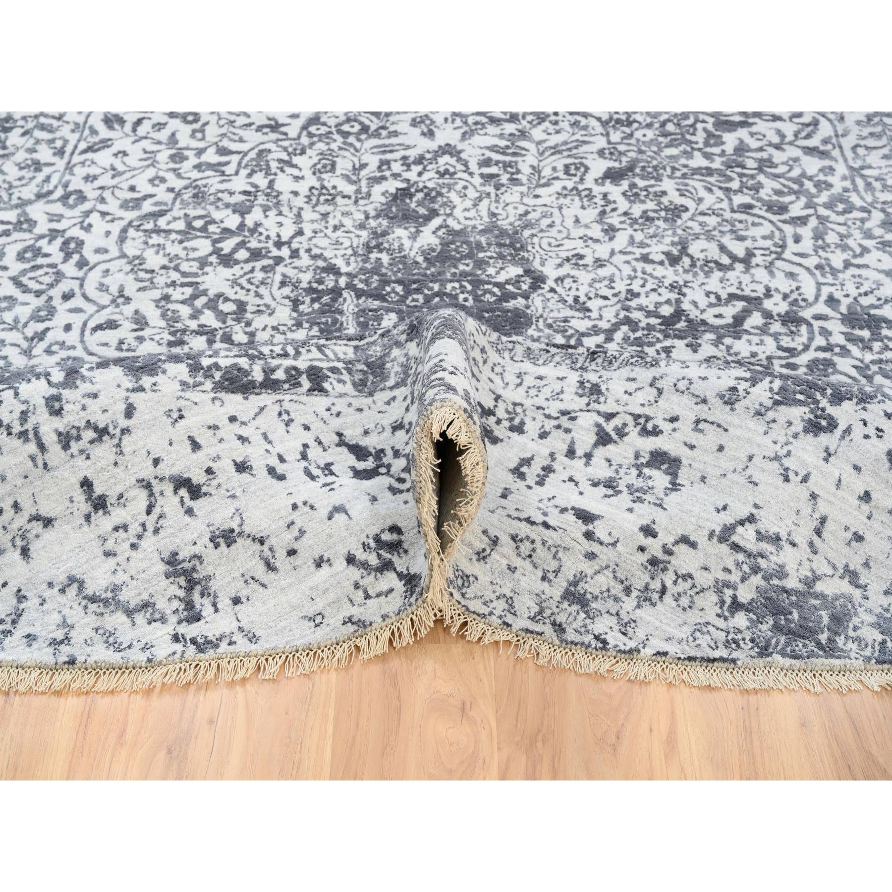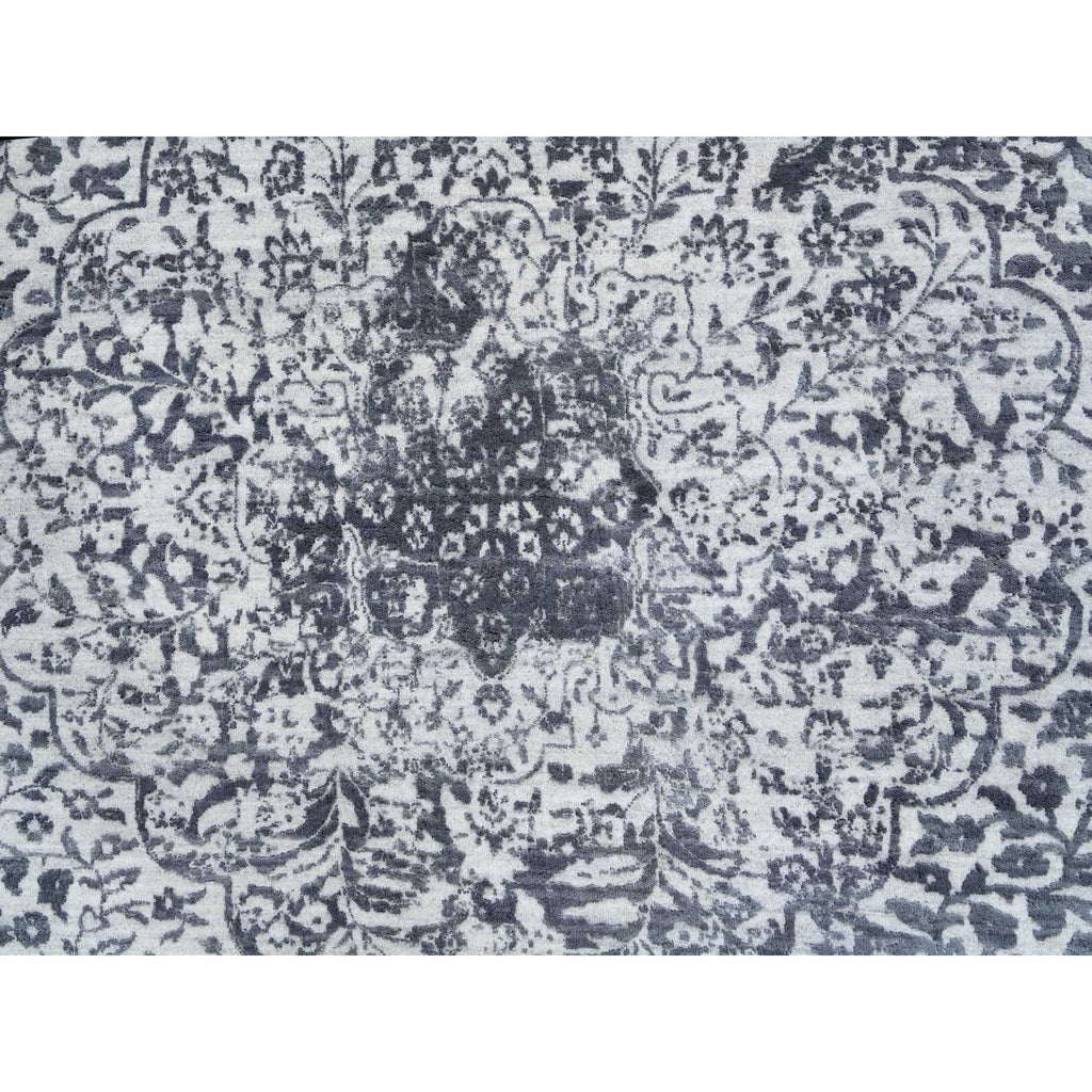 9'9"x9'9" Silver Gray, Erased Persian Design, Wool And Pure Silk Hand Knotted, Round Oriental Rug FWR384354