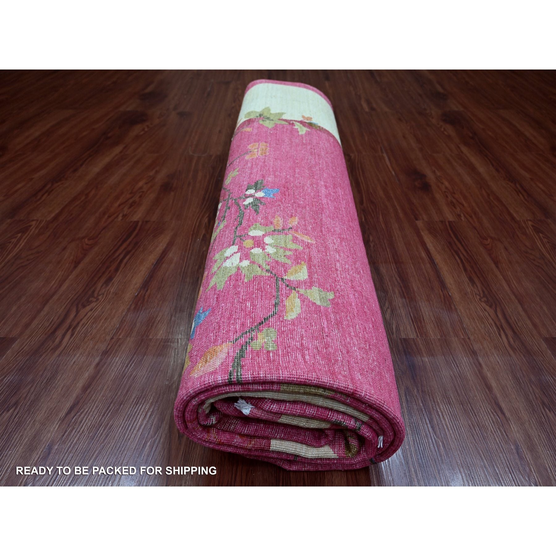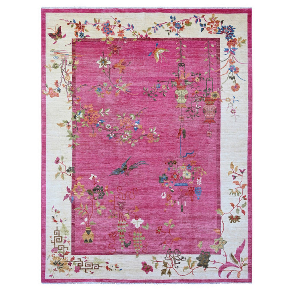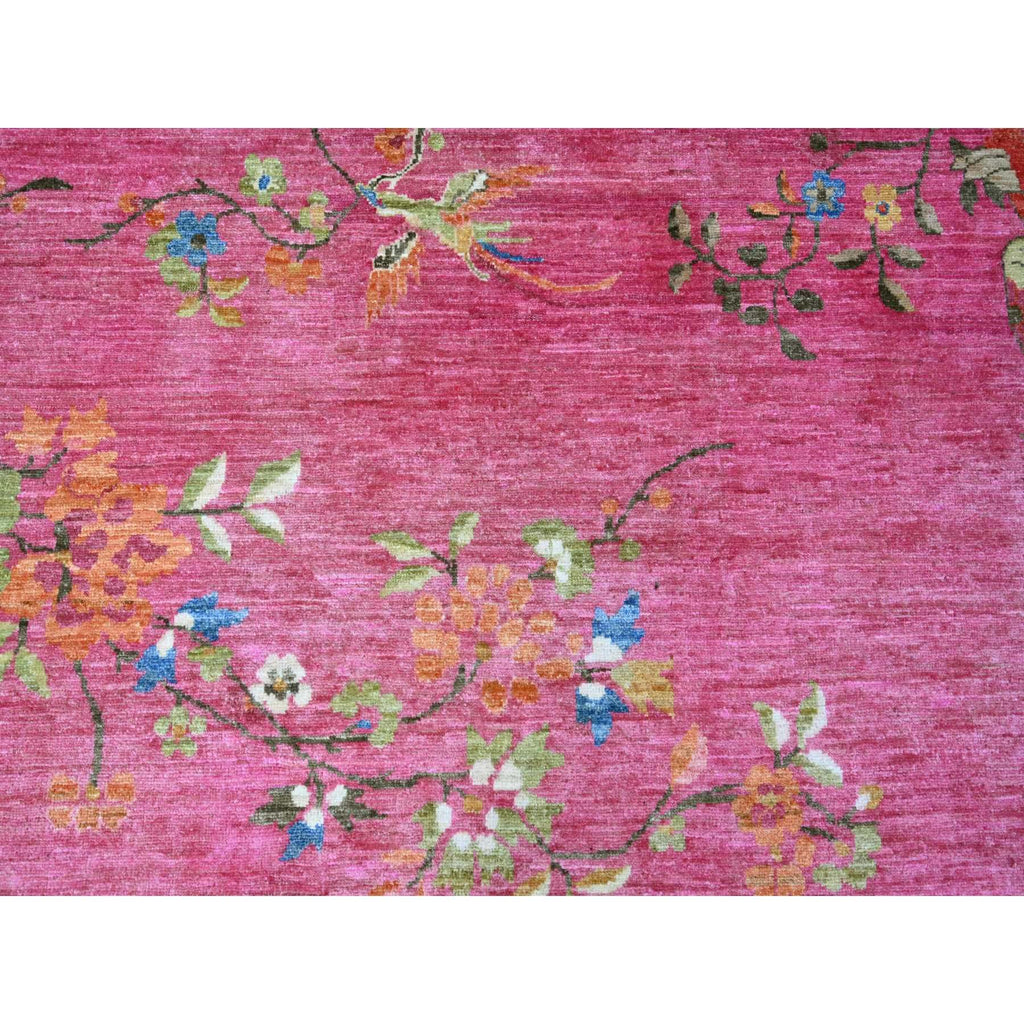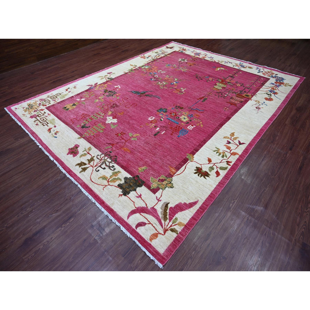9'x11'10" Hot Pink, Pure Wool, Chinese Art Deco Inspired Peshawar, Natural Dyes, Hand Knotted, Oriental Rug FWR126288
