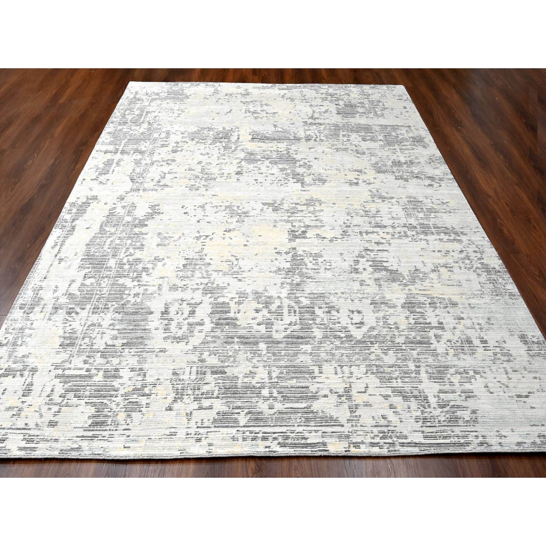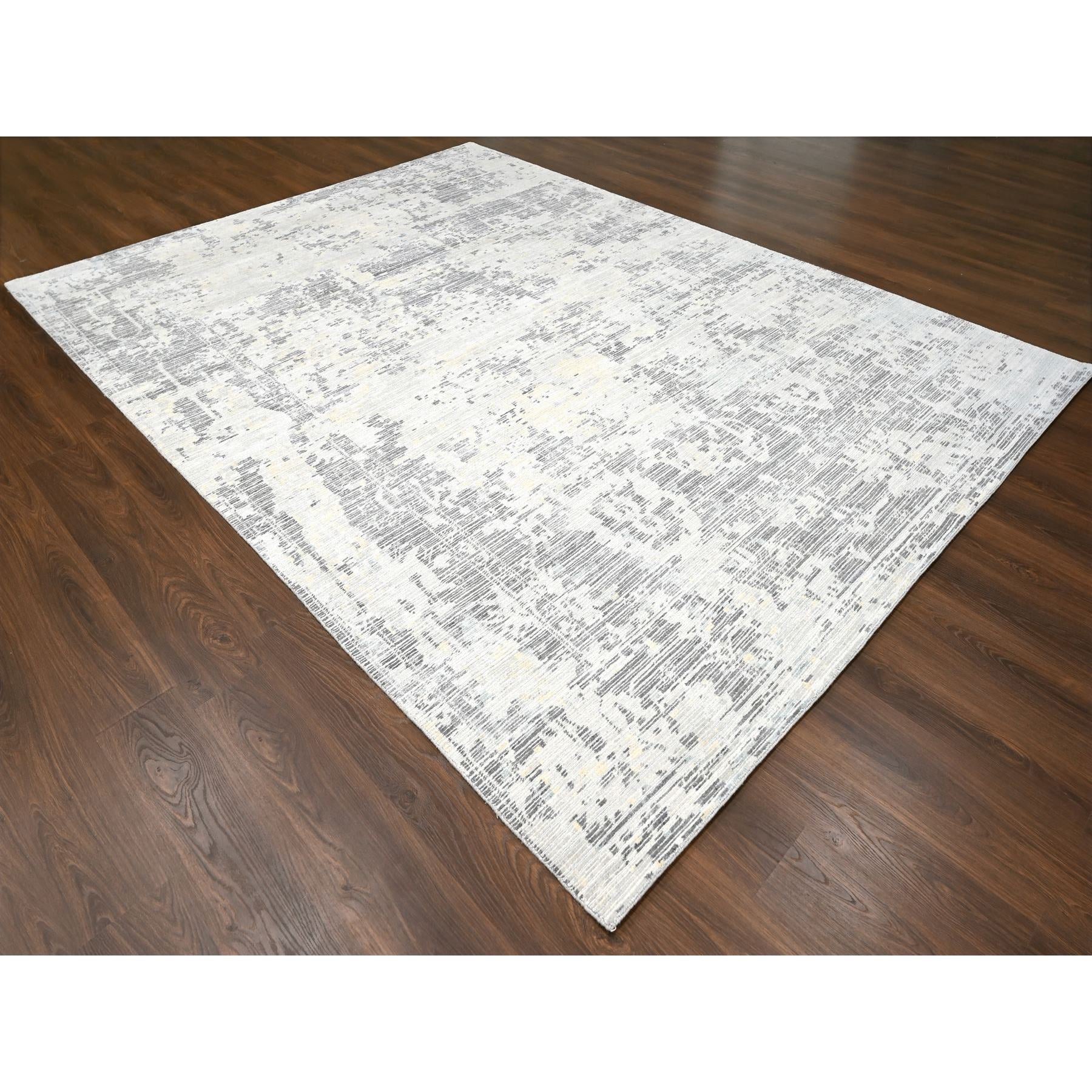 9'x11'10" Lexicon White With Touches Of Gold, Soft And Plush Pile, Hand Knotted, Cut And Loop Technique, Undyed Natural Wool, Nepali Oriental Rug FWR507474