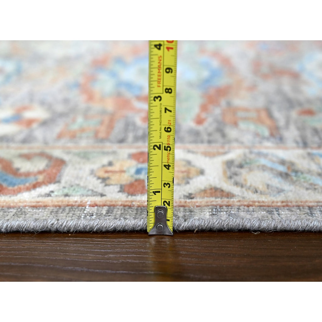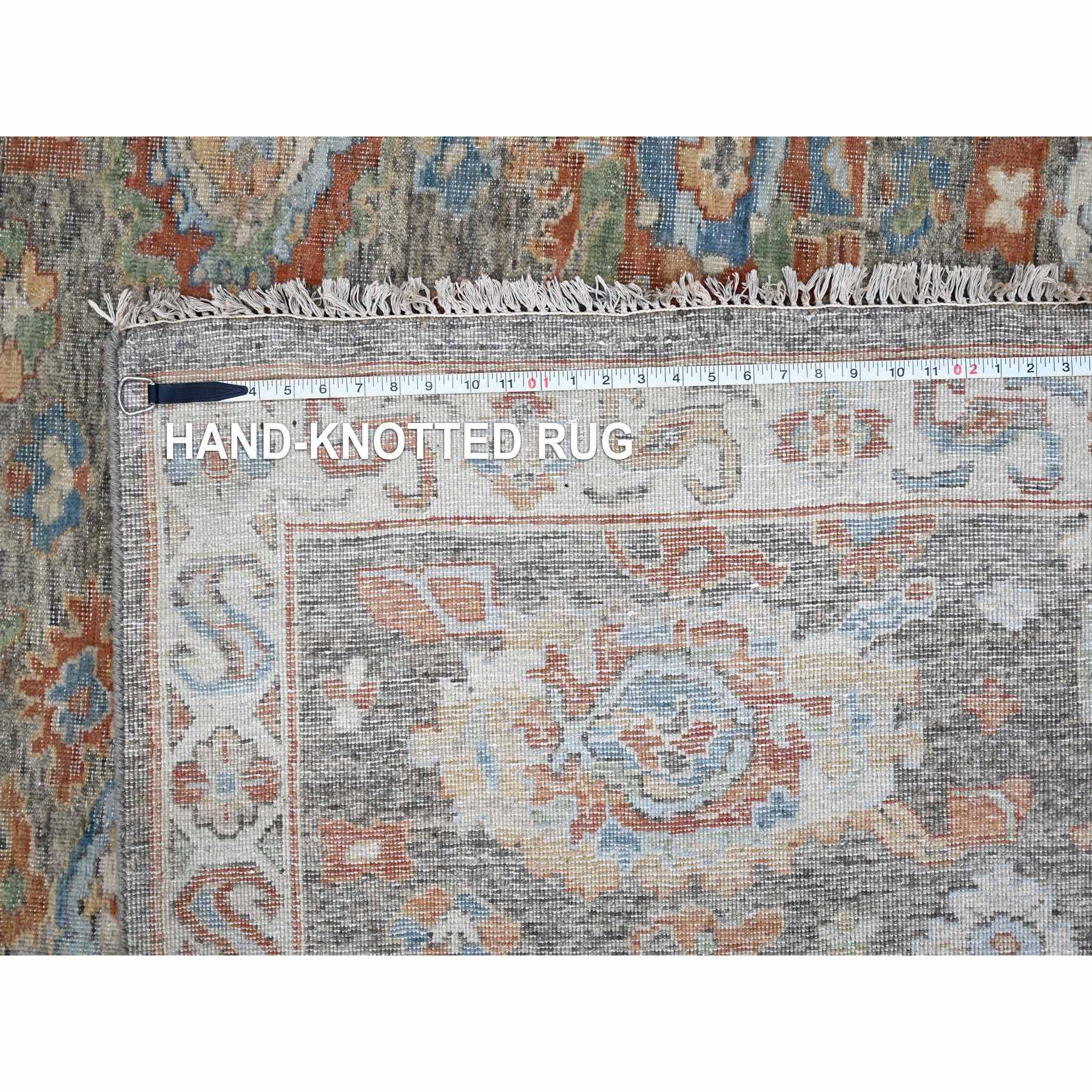 9'x11'10" Mocha Brown, Antiqued Persian With Ziegler Mahal Design, Oxidized, Zero Pile, Distressed, Shaved Low, 100% Wool, Hand Knotted, Oriental Rug FWR61308